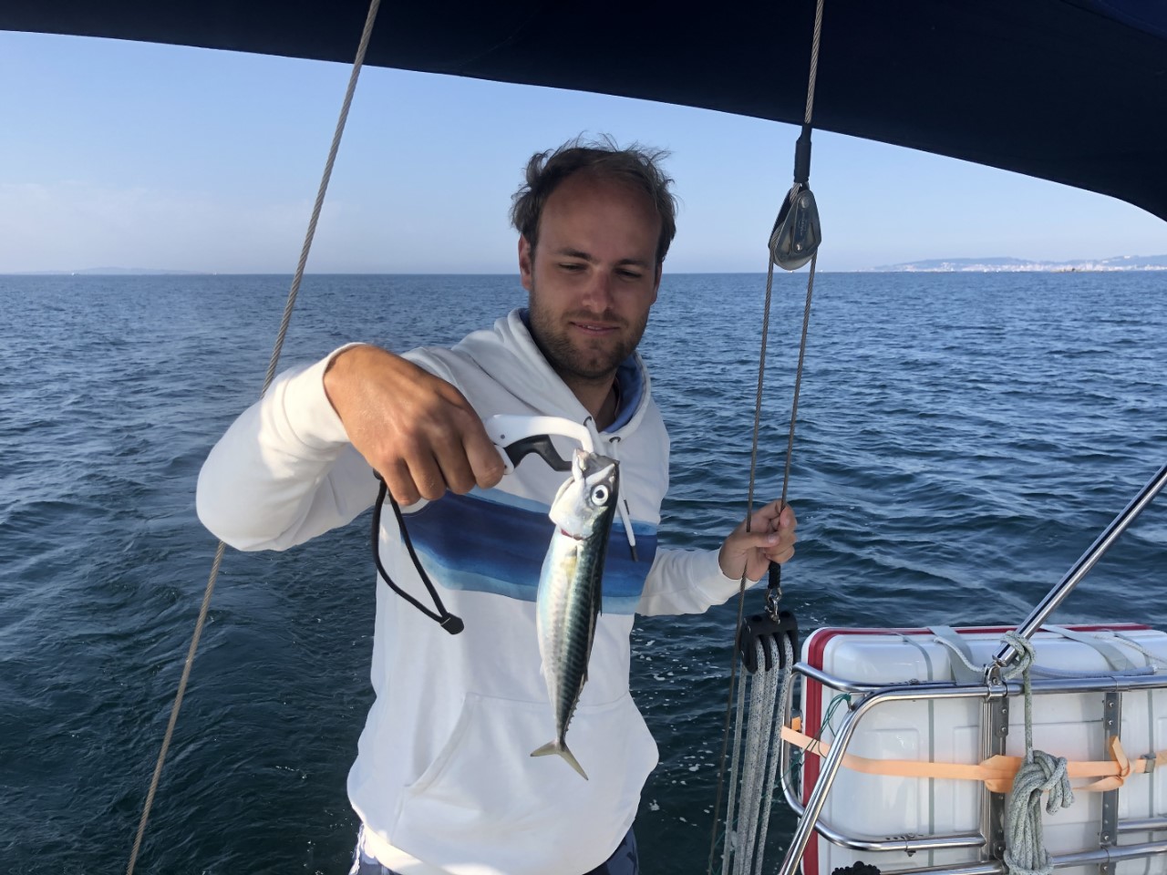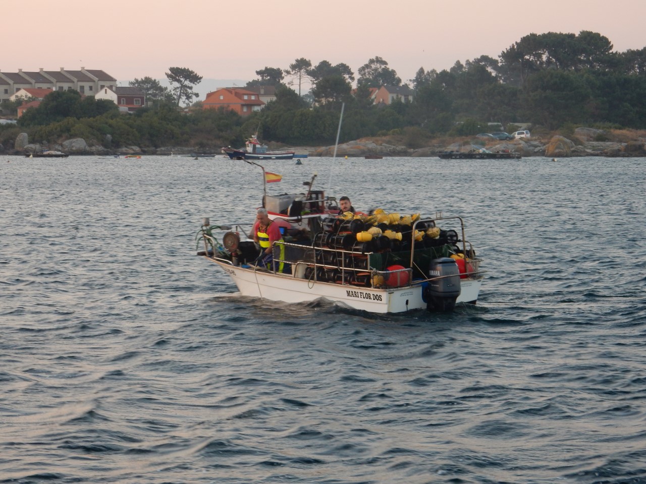 We waren blij dat we gisteravond nog de Just hebben verplaatst naar een iets beschutter plekje in de Baai van Con Retallado. Niet dat we daar heel rustig hebben geslapen, maar we denken veel rustiger dan als we bij het mooie eilandje waren gebleven. Het was een vrij kleine baai met veel oude mooring plaatsen met rondom bebouwing. In de vroege ochtend vaarden er veel vissersbootjes, die ook voor wat extra golfslag zorgden. Na het ontbijtje hebben we het anker gelicht en zijn door de vele mosselkwekerijen heel rustig gezeild naar een ander ankerplekje. Marianne was ondertussen de vele weersites aan het bestuderen, waar we het beste heen konden. We hadden eerst een strand bij de baai van Rianxo op het oog, maar we hadden een heel mooi bezeild koersje naar de ernaast gelegen Baai van Boiro. Zo tussen de mosselvelden haalde Daniel met zijn nieuwe paravaan weer een vis uit het water. Samen met de vis van gisteren is de lunch aanwezig. Voor het brede lange strand lagen nog twee zeilboten voor anker en wij kozen een plekje er tussenin. Overigens was er genoeg plaats. Wij zetten de bimini op en gingen in de relaxstand. De twee andere zeilboten haalden al snel het anker op. Het strand vulde zich langzaam met de eerste zonaanbidders en wij waagden ons tot een duik in het niet zo ijskoude water. Na een paar rondjes om de Just gingen ook wij languit voor een kleurtje. Daniel was met zijn werphengel aan de gang en spotte nog een kleine haai en wat later een rog. Op onze elektrische kookplaat hebben we pannenkoeken gebakken. Dat lukt prima met de zonnepanelen als je rond 18:00 uur gaat bakken, dan zijn ze tegen 20:00 uur weer volgeladen voor de nacht (onze koelbox voornamelijk). En daarna nog genieten van een mooie zonsondergang. We zitten laat in de avond nog in onze zwembroek. Dat is niet zo gek, want het hele strand ligt ook nog vol met badgasten en er wordt nog volop gezwommen. Om ons heen komt af en toe een speedboot langs of een jetski, maar het is niet heel druk daarmee. Morgen gaan we naar een paar bergmeren, dus dat wordt klimmen, maar dat gaat wel lukken na zo een luie dag.