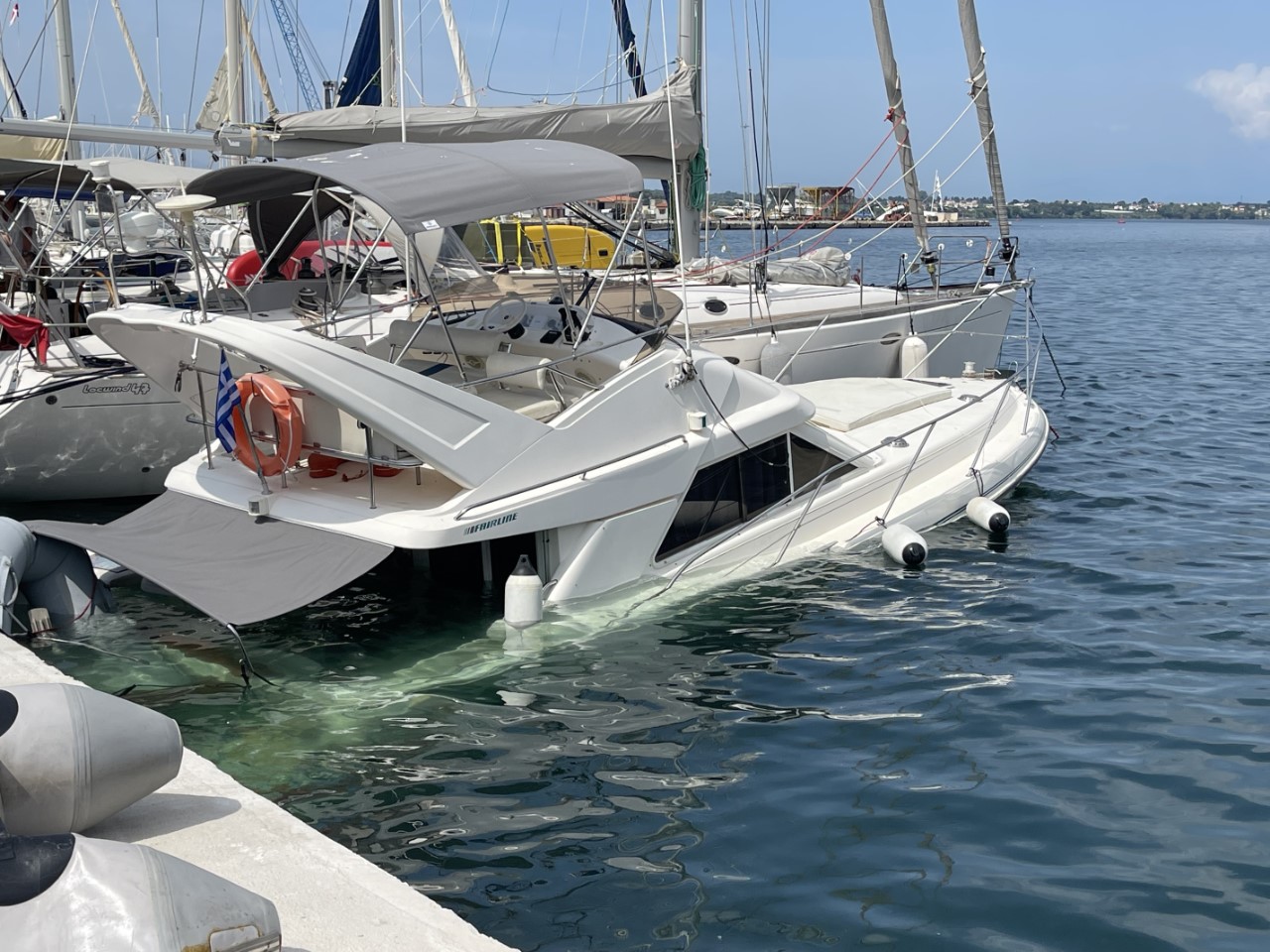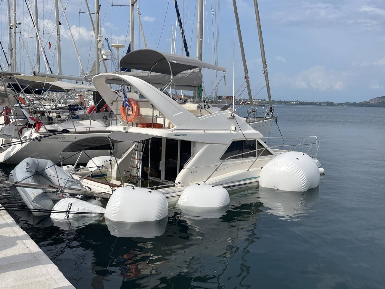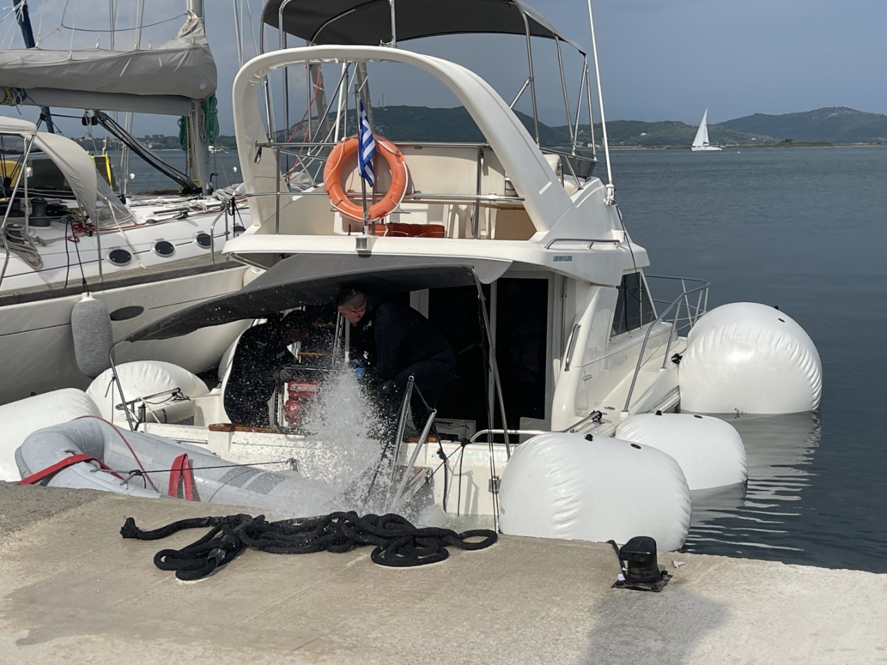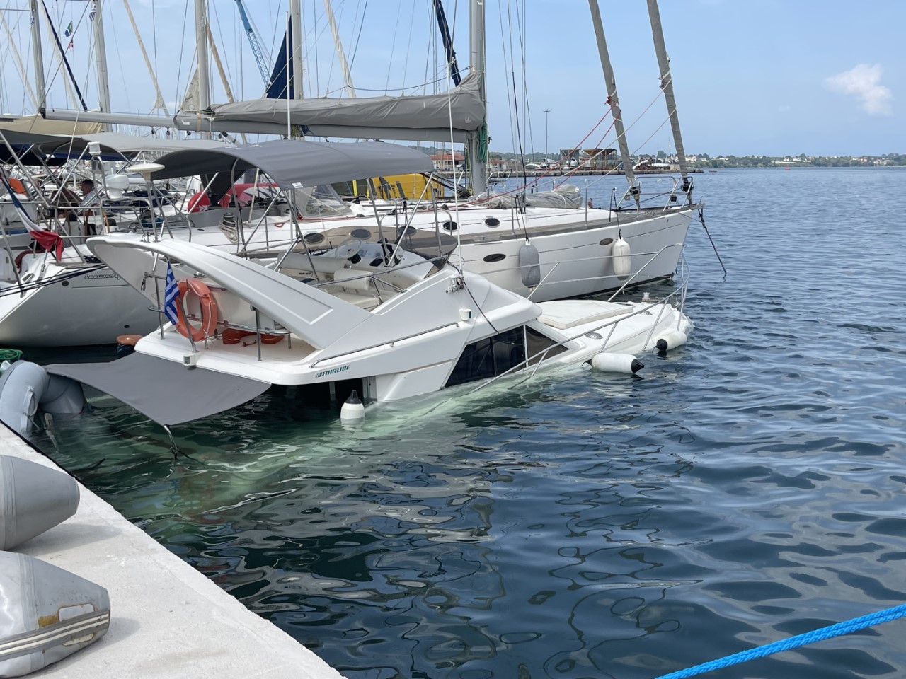 Iets na 14:00 uur is er een hoop tumult op de kade. Een grote groep mensen staan drie boten van ons vandaan te kijken naar het water. Wij denken een groep schildpadden. We hadden gisteren al 2x een grote schildpad van een halve meter gezien. Maar nee, het is een snel zinkende motorboot, die niet veel later tot ver onder de gangboorden is gezonken. Het duurt geruime tijd tot er enige hulp komt. Een tijdje later komen er duikers, die hele grote luchtzakken onder de boot bevestigen en oppompen. Wanneer de boot weer bovenwater drijft, pompen ze de kajuit leeg, ook weer opgelost.