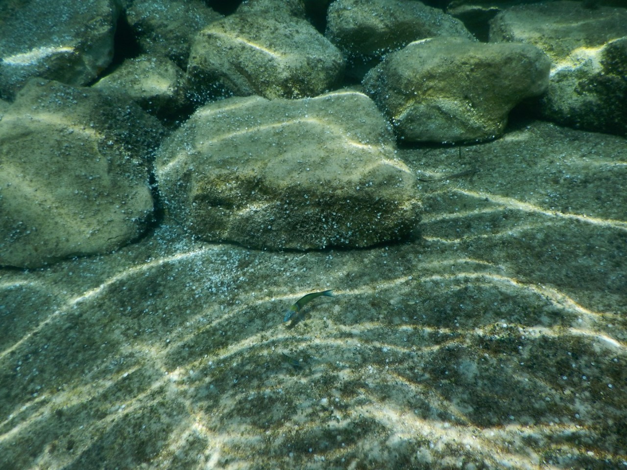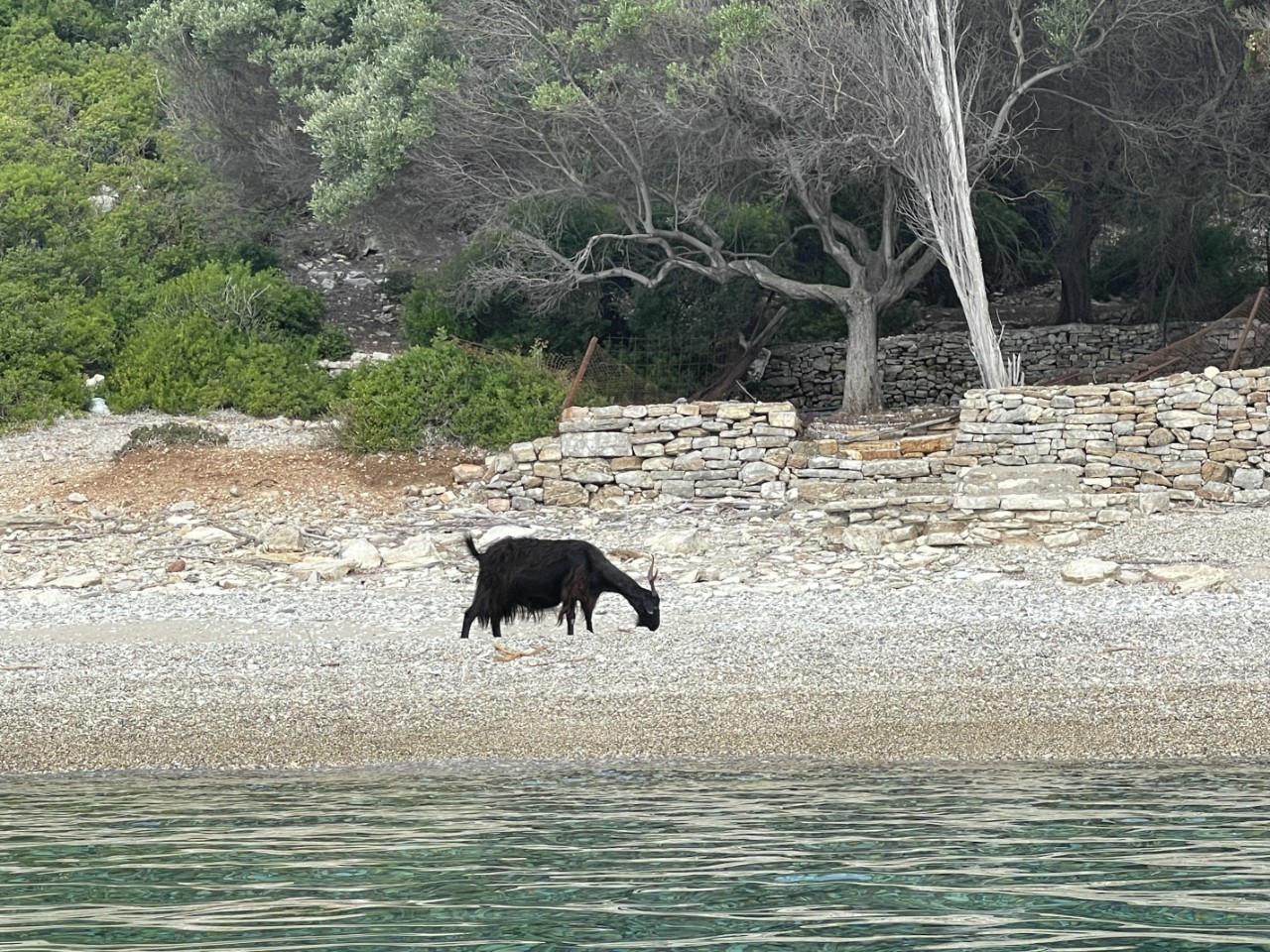 In de middag gaan we op snorkelexcursie langs de rotsen, waar veel visjes zich schuil houden in het zeegras. Het is tot nu toe wat rustiger met ankerende bootjes. Een stuk of vijf rechts naast ons voor een ander strandje en aan de linkerzijde één grote motorboot bij het strandje, waar vanmorgen de geitjes stonden. Wij liggen voor ons privéstrandje, dat we morgen jammer genoeg gaan verlaten. We gaan op zoek naar een ander leuk ankerplekje. Of dat op het eiland Kastos is of Ithaka zien we morgen wel.