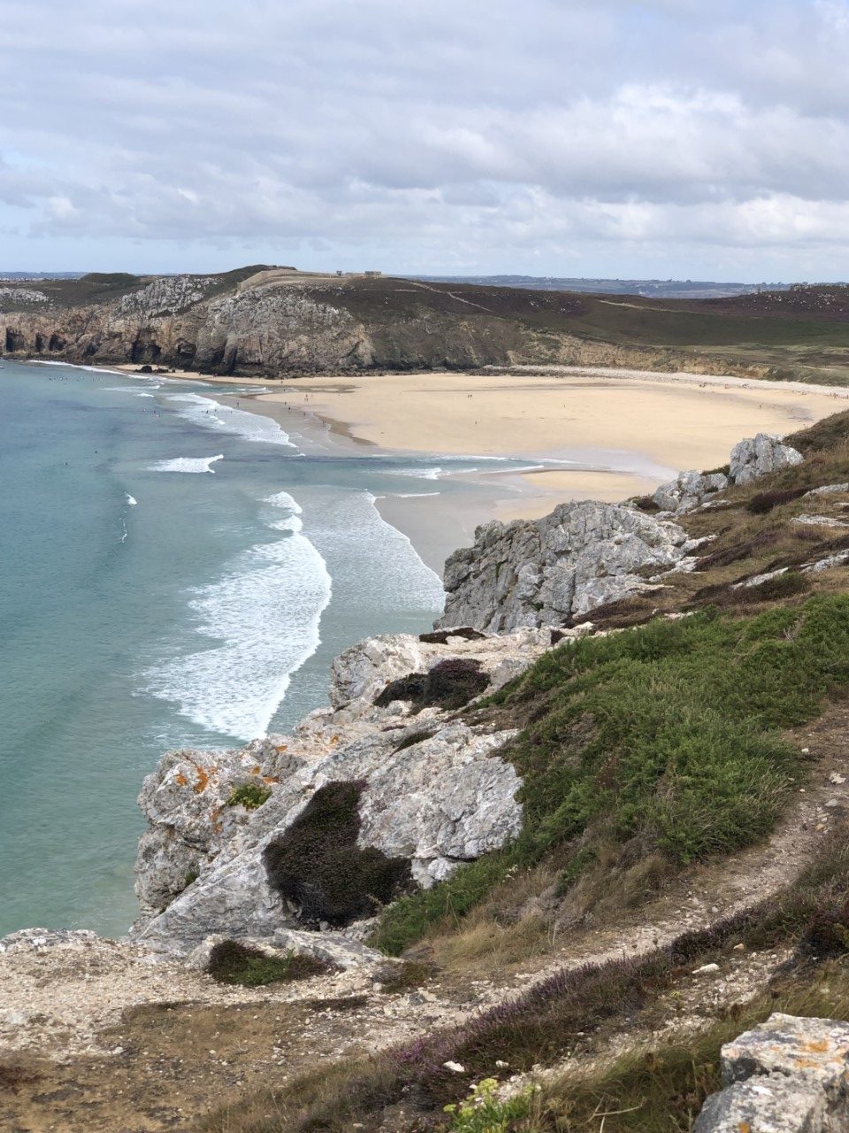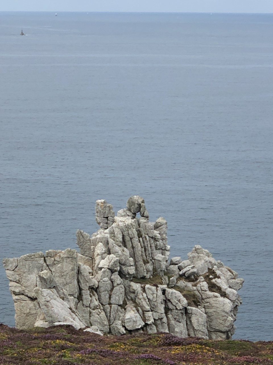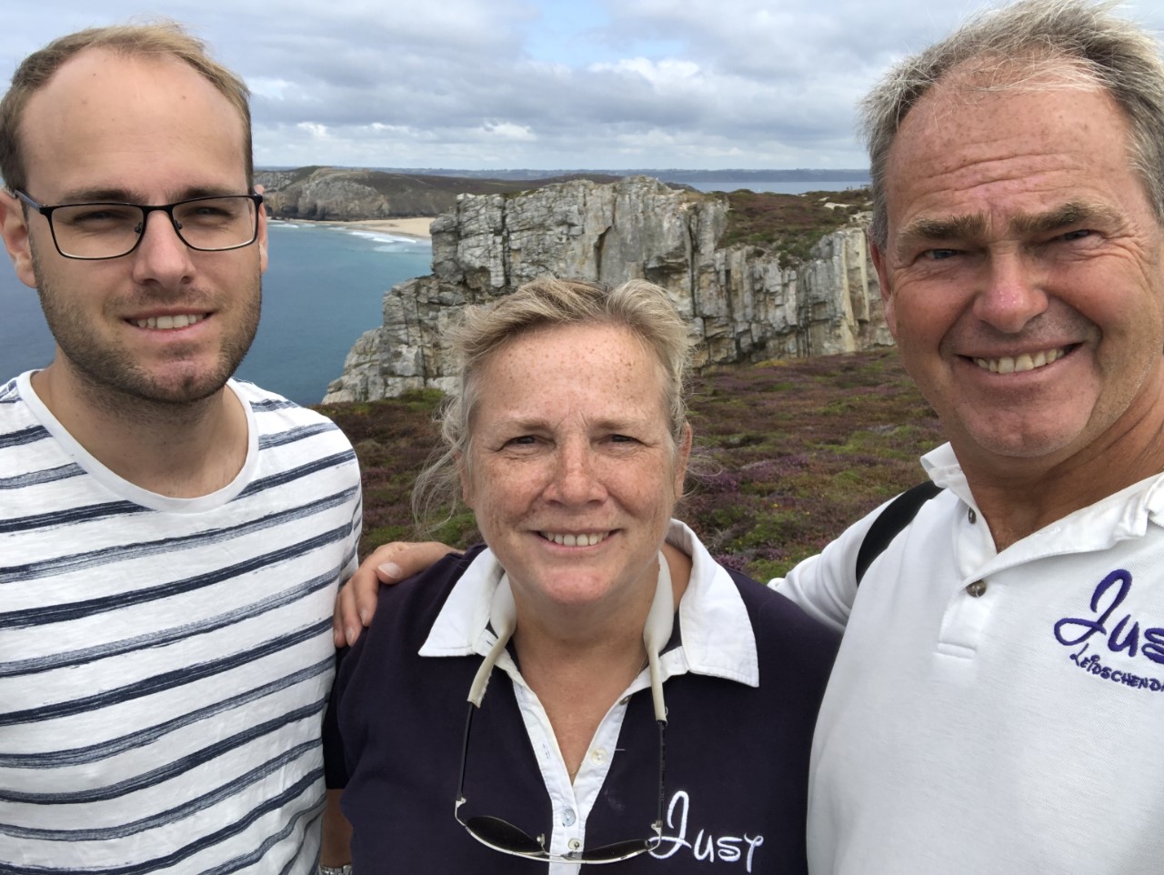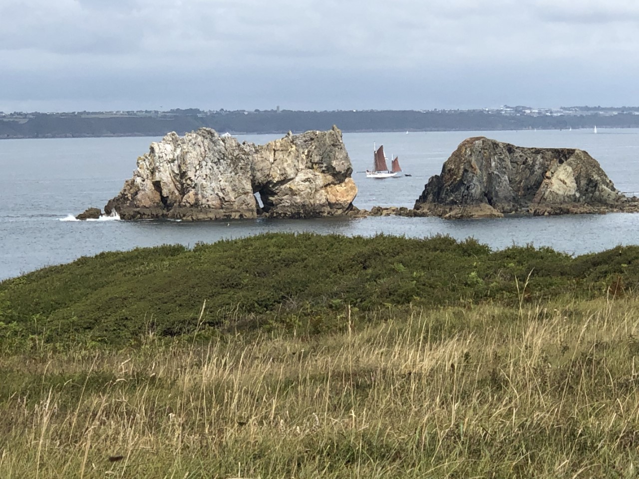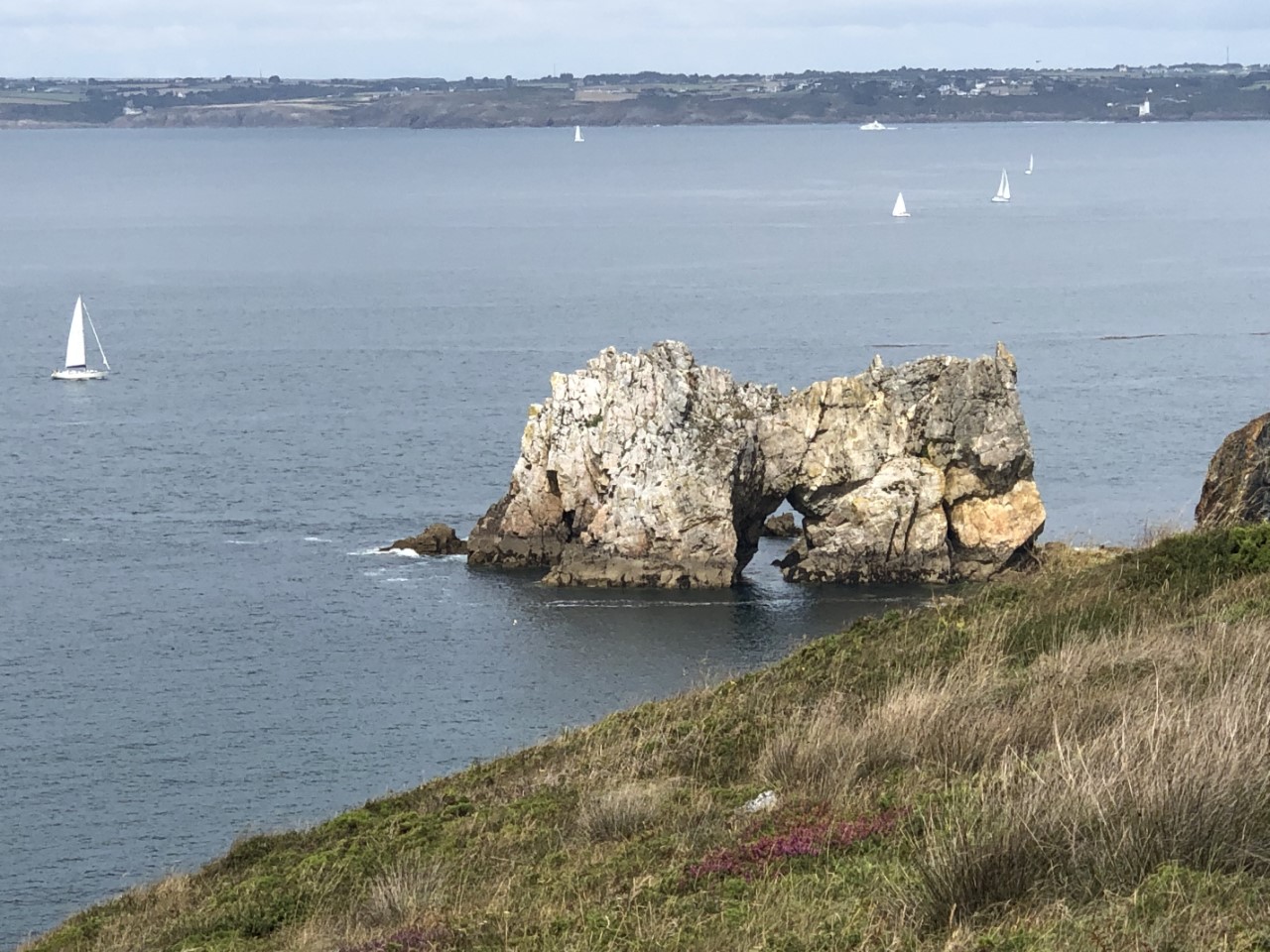 Vandaag heeft Marianne weer één van haar inmiddels beruchte wandelroutes op het programma staan. Nadat we eerst de bootvoorraad hadden aangevuld, gingen we op pad. Nou ja Marianne ging deels op de fiets. We kwamen al snel bij een kleine uitvoering van Stone Henge. Die keien hebben ze daar heel lang geleden heen gesleept, maar ze hadden geen zin meer om ze rechtop te zetten, dus hebben ze dat maar begin twintigste eeuw alsnog gedaan. We hebben de weg vervolgd naar Pointe De Pen Hir. Het pad ernaartoe lag vol met kleine scherpe keitjes, dus het was opletten waar je liep. Maar de vergezichten en de rotsformaties waren weer adembenemend mooi. Na Pointe De Pen Hir stapte Marianne op de fiets en ging terug naar de Just. Wij gingen nog langs Phare Du Toulinguet, waar we een route langs de kust liepen. Er waren heel veel grote bunkers en aan de vele bomkraters te zien heeft deze kust het zwaar te verduren gehad. Eindelijk kwamen we op het grote brede strand van Camaret-sur-Mer aan. Nog een paar laatste meters door stoffelen en toen konden wij ook onze beentjes rust bieden. Daniel nam gelijk een duik en Marianne kon niet achterblijven. Ik ben niet zo een held en bleef lekker aan boord. We hebben ook naar de planning voor morgen gekeken. Gaan we naar Douarnenez of naar Audierne. De laatste kreeg de voorkeur, omdat we dan gelijk door de Raz De Sein zijn en we maken de helft minder mijlen. Voor de Raz De Sein hebben we extra goed naar de stroming gekeken, omdat je daar wederom ernstig voor wordt gewaarschuwd. De vertrektijd is weer vroeg, maar dit heeft als voordeel, dat we heel de middag in Audierne zijn. Dus vanavond maken we het niet te laat.