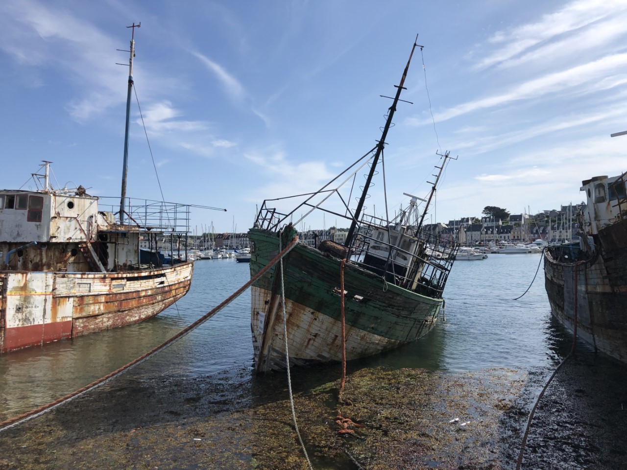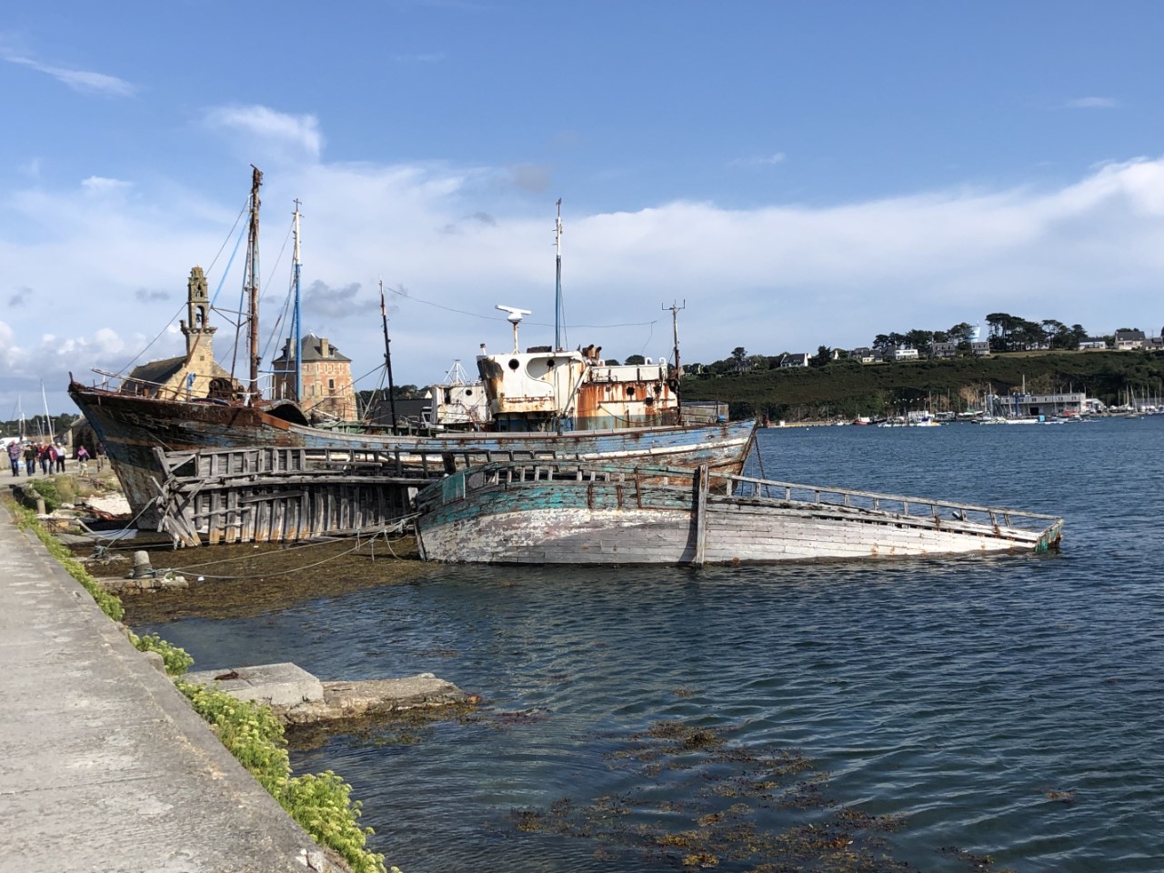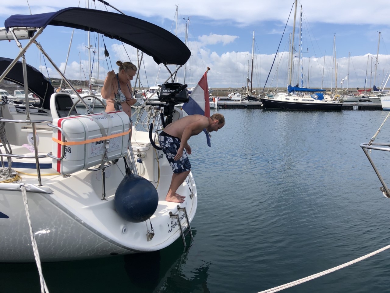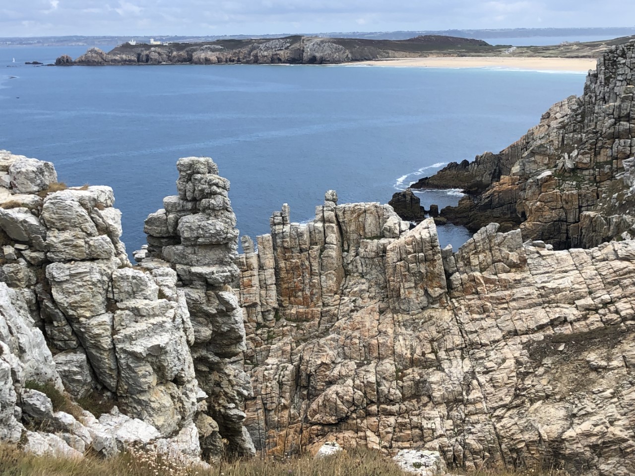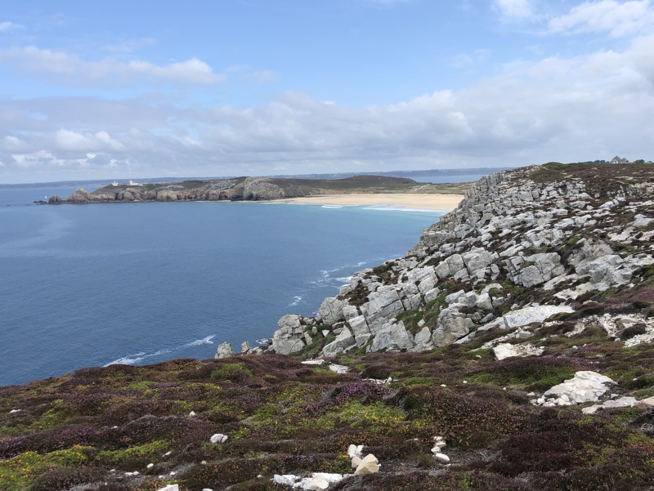 Vandaag heeft Marianne weer één van haar inmiddels beruchte wandelroutes op het programma staan. Nadat we eerst de bootvoorraad hadden aangevuld, gingen we op pad. Nou ja Marianne ging deels op de fiets. We kwamen al snel bij een kleine uitvoering van Stone Henge. Die keien hebben ze daar heel lang geleden heen gesleept, maar ze hadden geen zin meer om ze rechtop te zetten, dus hebben ze dat maar begin twintigste eeuw alsnog gedaan. We hebben de weg vervolgd naar Pointe De Pen Hir. Het pad ernaartoe lag vol met kleine scherpe keitjes, dus het was opletten waar je liep. Maar de vergezichten en de rotsformaties waren weer adembenemend mooi. Na Pointe De Pen Hir stapte Marianne op de fiets en ging terug naar de Just. Wij gingen nog langs Phare Du Toulinguet, waar we een route langs de kust liepen. Er waren heel veel grote bunkers en aan de vele bomkraters te zien heeft deze kust het zwaar te verduren gehad. Eindelijk kwamen we op het grote brede strand van Camaret-sur-Mer aan. Nog een paar laatste meters door stoffelen en toen konden wij ook onze beentjes rust bieden. Daniel nam gelijk een duik en Marianne kon niet achterblijven. Ik ben niet zo een held en bleef lekker aan boord. We hebben ook naar de planning voor morgen gekeken. Gaan we naar Douarnenez of naar Audierne. De laatste kreeg de voorkeur, omdat we dan gelijk door de Raz De Sein zijn en we maken de helft minder mijlen. Voor de Raz De Sein hebben we extra goed naar de stroming gekeken, omdat je daar wederom ernstig voor wordt gewaarschuwd. De vertrektijd is weer vroeg, maar dit heeft als voordeel, dat we heel de middag in Audierne zijn. Dus vanavond maken we het niet te laat.