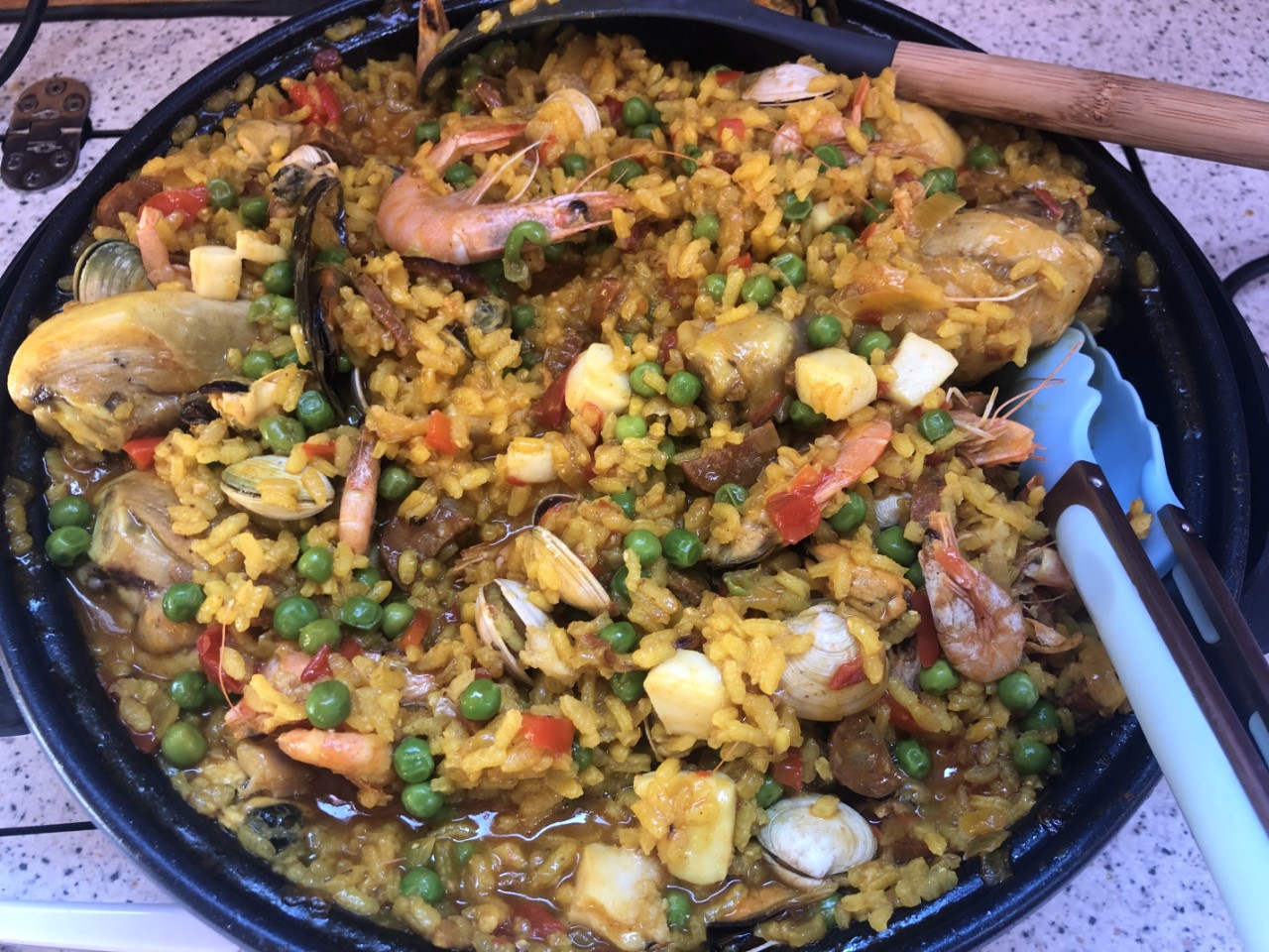 Wij gaan maar samen naar de plaatselijke Lidl, Marianne op haar stepje en ik er naast met m’n sportschoenen. Met volle tassen komen we toch weer terug op de Just en dan hebben we nog niet eens alles gehaald voor de komende dagen op anker. Ria en Wim hebben we uitgenodigd om met ons mee te eten. Wij hebben paella op het menu staan.