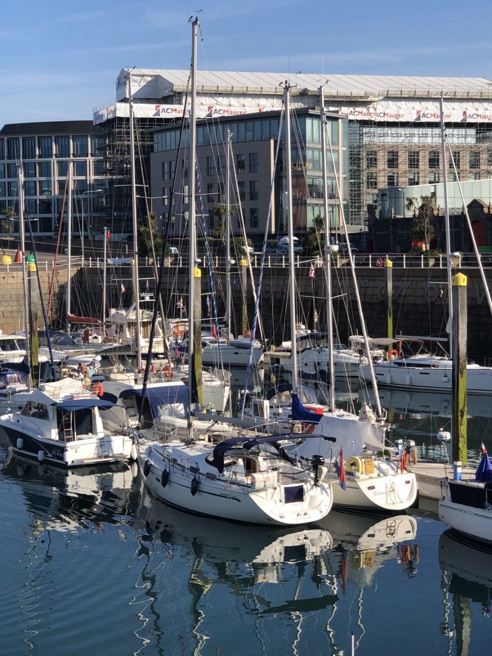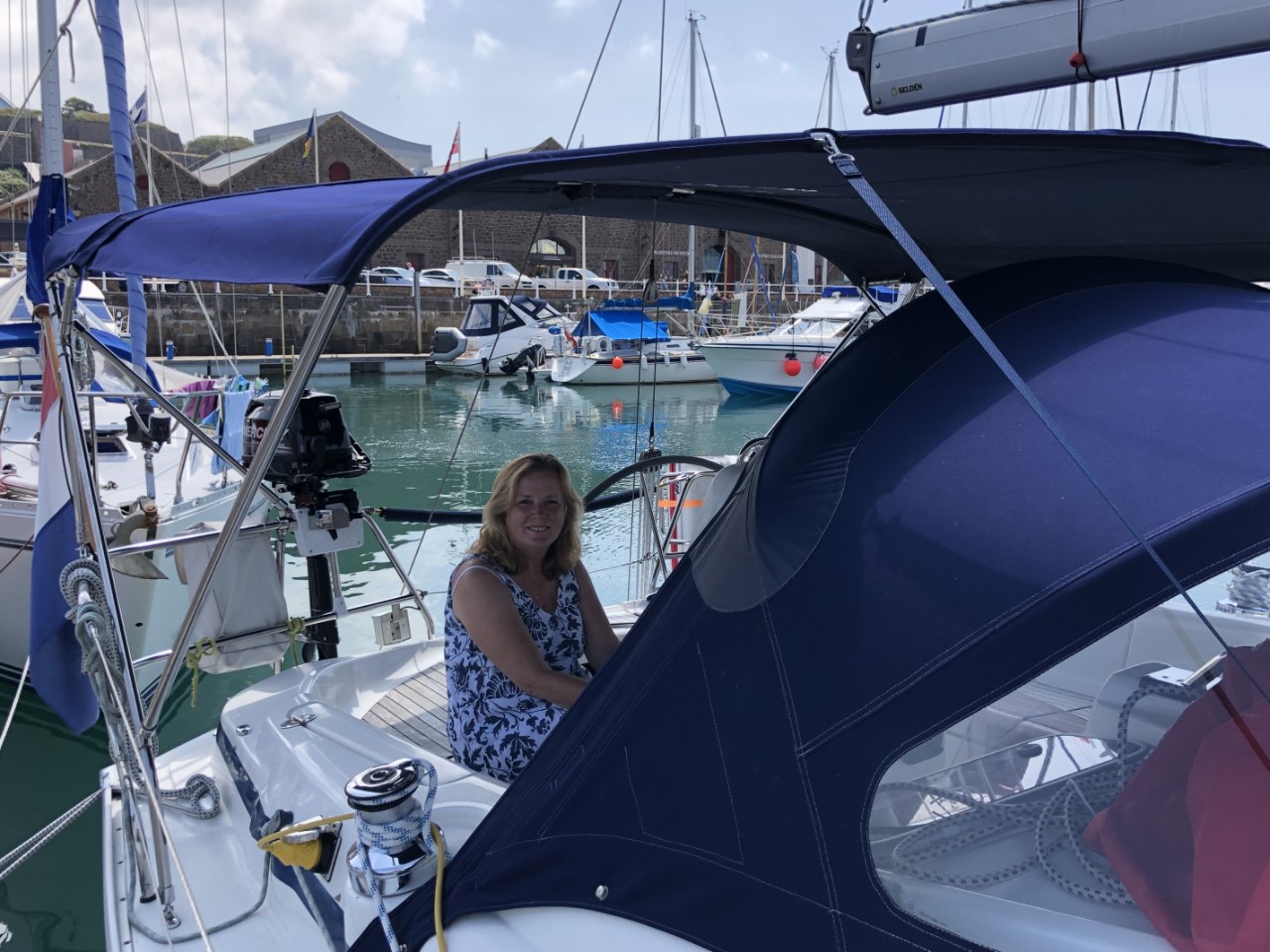 Lekker zo’n luie zondagochtend. We hadden geen plannen, behalve een beetje winkelen. Na ons uitgebreide ontbijtje hebben we de bimini tevoorschijn gehaald.Tot nu toe hadden we hem nog niet opgezet, maar het zonnetje doet vandaag zo z’n best, dat we wel wat bescherming kunnen gebruiken. Daarna zijn we het centrum ingedoken, voor weer wat boodschappen en wat te shoppen. Marianne kwam weer goed aan haar trekken, met 2 tassen kleding kwamen we aan op de Just. Tijd om te relaxen. We zaten te dubben om vanavond bij de Fridays te gaan eten, maar we hadden alle spullen al aan boord voor ons prakje voor vanavond. Dus dat gaat het worden. Maar we misten nog wat boodschappen voor morgenavond, dus ik werd er op uit gestuurd om die te gaan halen. En ja hoor, ik was nog niet terug of ik werd er weer op uit gestuurd “suiker was op”. Vandaag al 4x naar een supermarkt geweest. Maar het kwam ook wel goed uit, ik heb gelijk al mijn Engelse ponden uitgegeven. In de namiddag hebben we heerlijk onder de bimini gezeten in het kuipje en ons supermarktmaaltje gegeten. Na al dat hangen en zitten hebben we nog een avondwandeling gemaakt langs de St. Aubin’s Baai van St. Helier, een mooie afsluiting van onze 6 weken Engeland. Morgen gaan we naar Frankrijk.