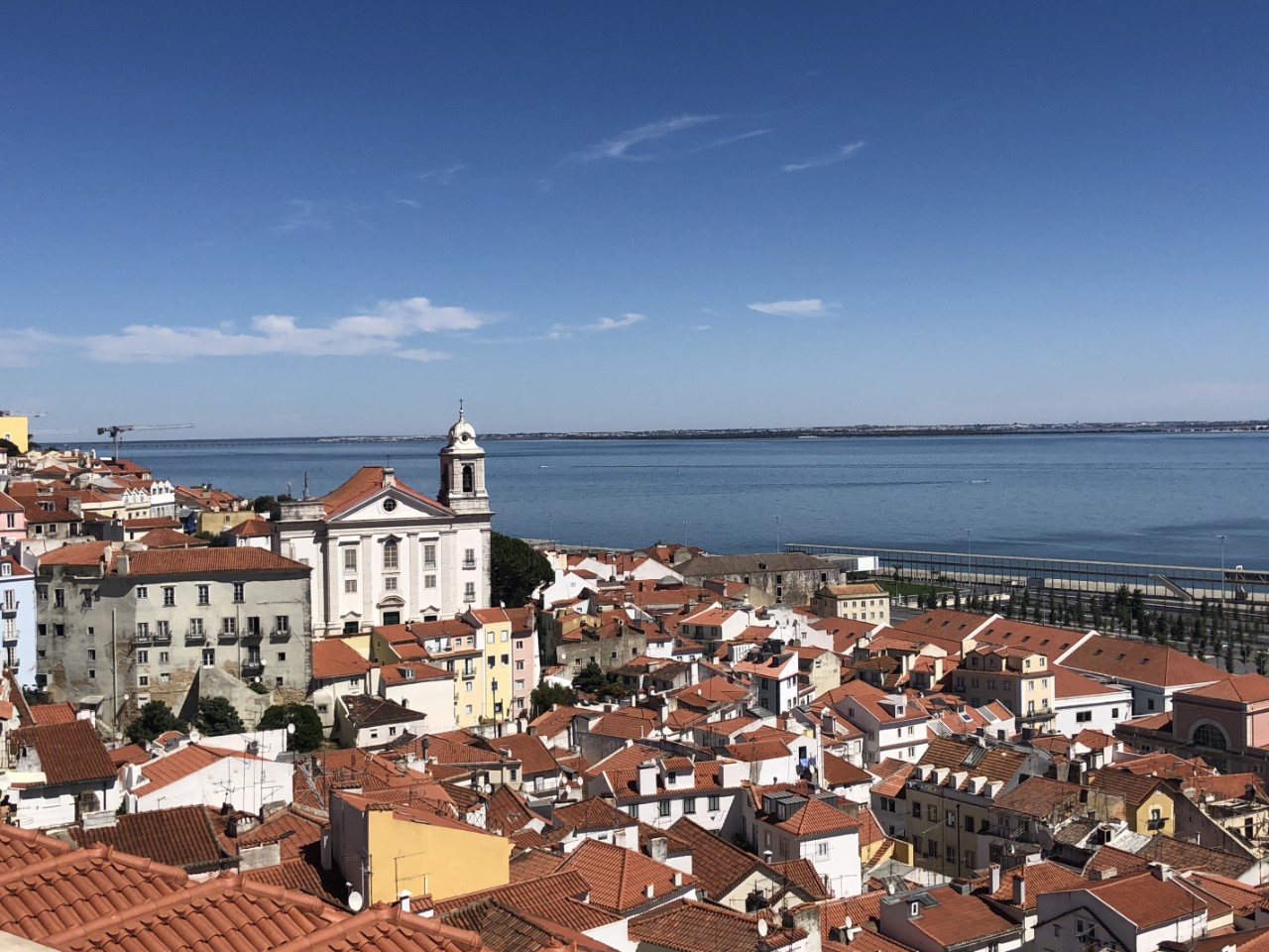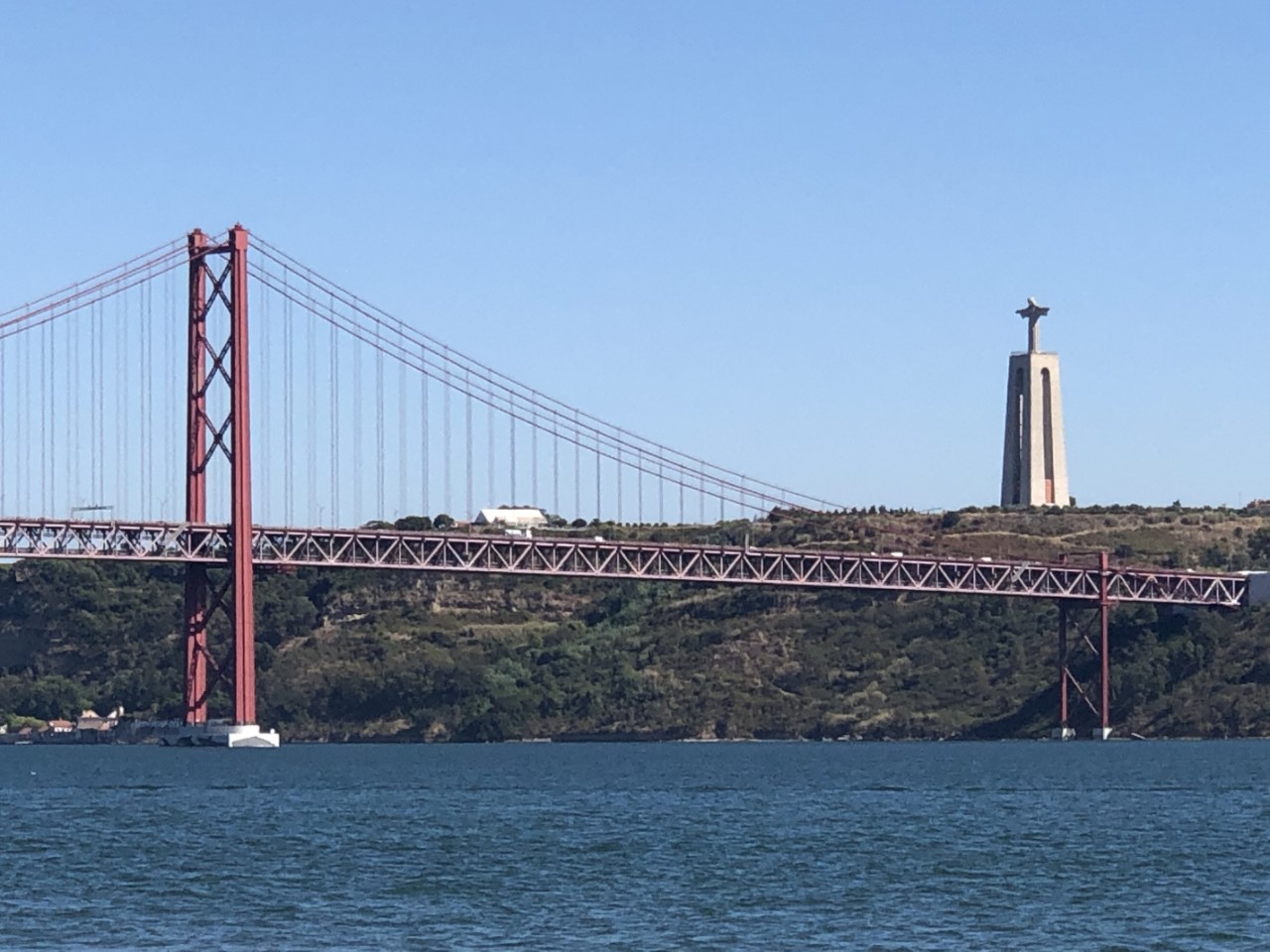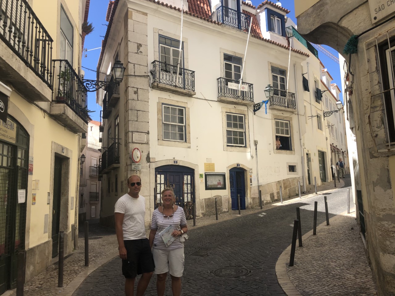In ieder geval willen we met de gele tram mee naar beneden door een heel steil smal straatje. Eenmaal beneden waren we vlak bij het treinstation. We zijn toen een stuk langs de Taag gelopen en met bewondering gekeken naar de zeilbootjes, die tegen de sterke stroming in probeerden te varen. We gingen deels met tram 28 richting Kasteel, Castelo de São Jorge, wat hoog op een berg gelegen was, daar hadden we een paar mooie uitzichtpunten. Door de oude Fadowijk hebben we wat rondgezworven en daar kwamen langs de beste Pastéis de Nata bekroond met de Prémio 1 Award van 2019, die moesten natuurlijk ook geprobeerd worden, samen met een pastéis de bacalhao en een lekker glas versgeperst sinaasappelsap.