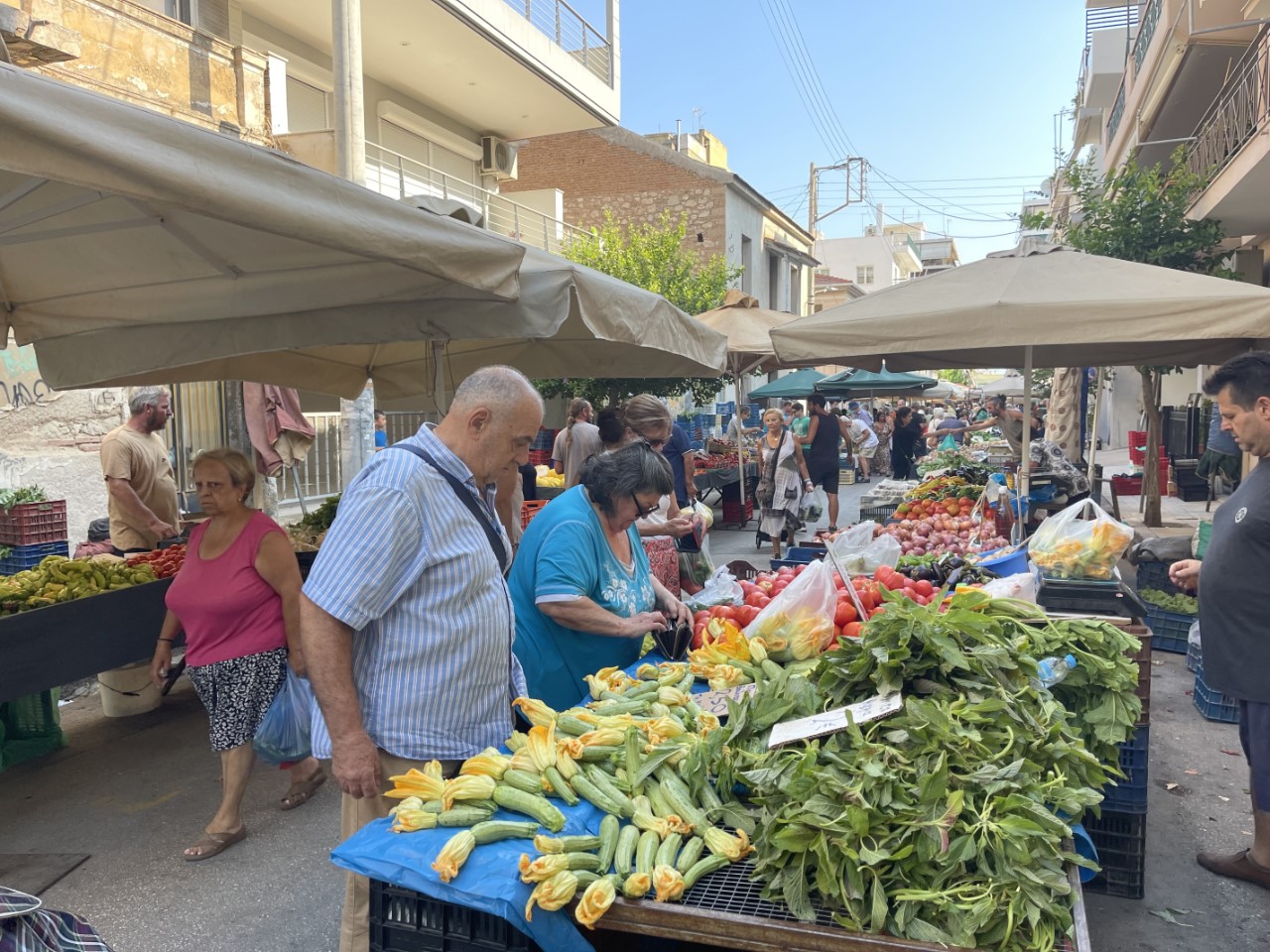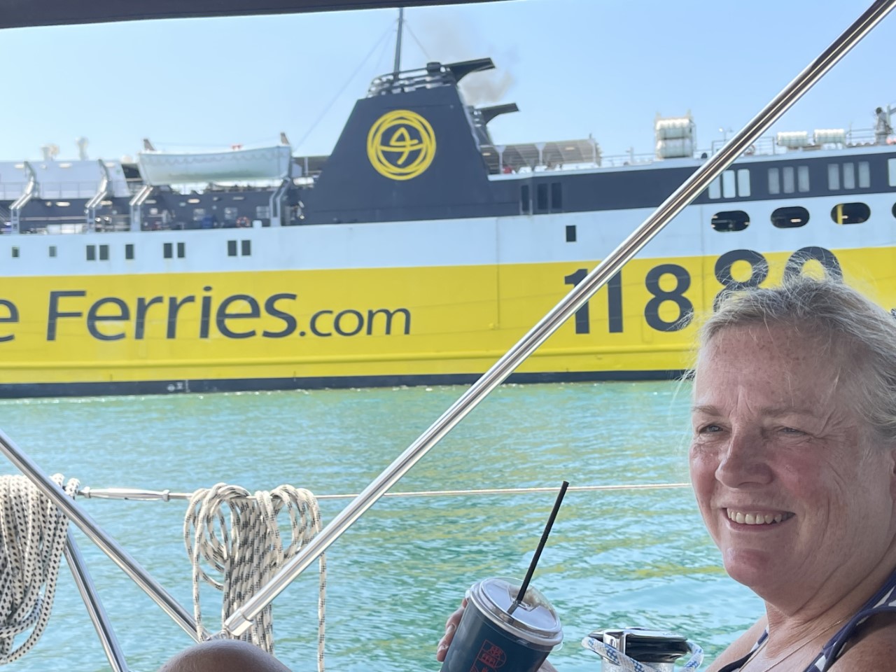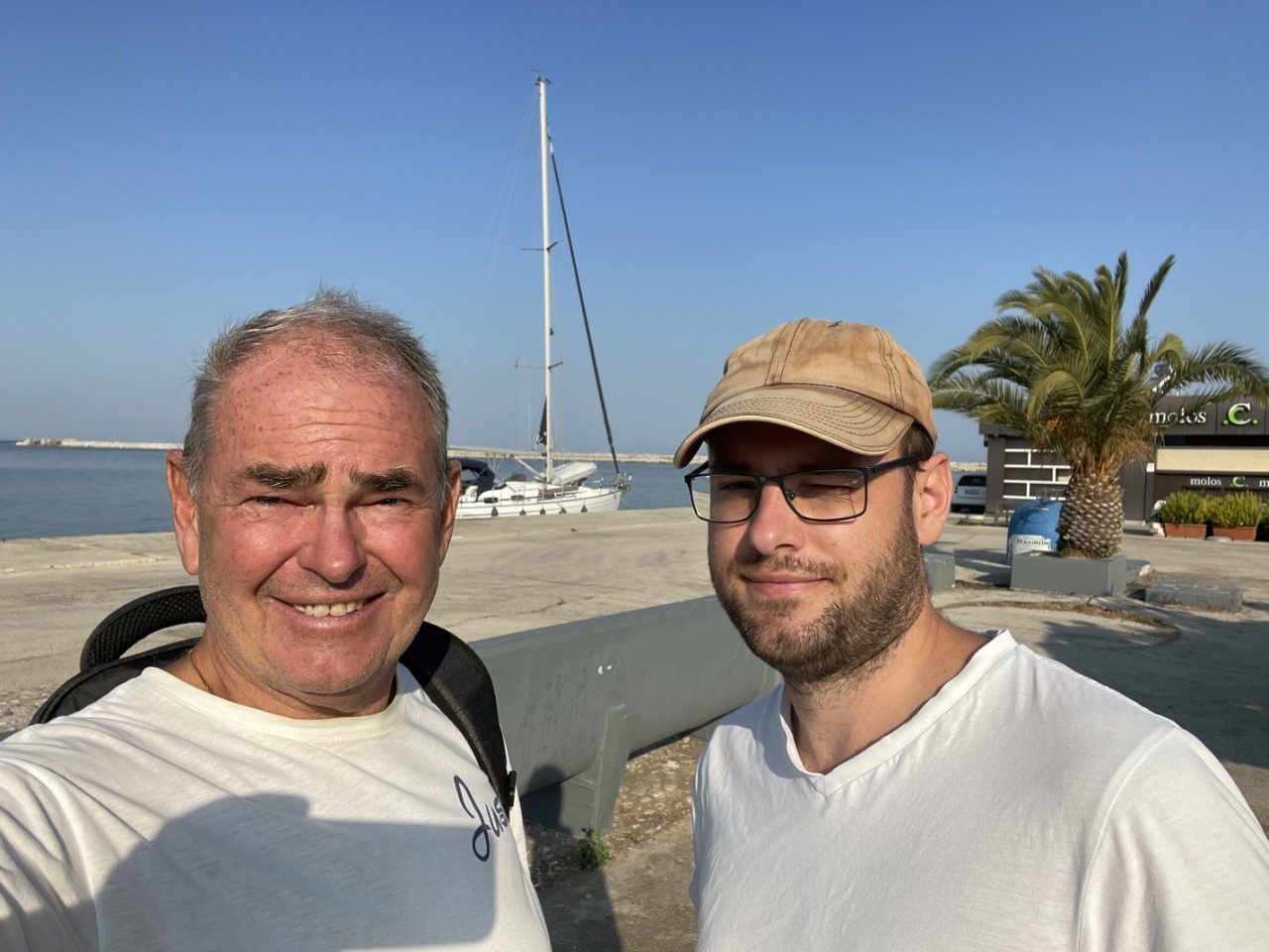 Als eerste ben ik met Daniel gaan wandelen naar de Lidl om de verse bootvoorraad aan te vullen. Onderweg komen we een grote markt tegen met bij bijna alle kramen dezelfde producten: tomaten, komkommers, meloenen, perziken, pruimen en druiven. We lopen toch door naar de Lidl en daar blijkt dan alles net iets goedkoper dan op de markt. Met twee volle tassen en een rugtas komen we terug op de Just. We missen nog twee producten en die heb ik bij een dichterbij gelegen supermarkt gehaald. Bij een koffietentje vlakbij de haven neem ik gelijk nog twee frappé cappuccino’s mee.