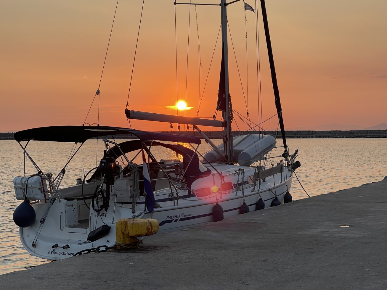 Terug op de Just zijn we net op tijd om naar de zonsondergang te kijken. Morgen gaan we naar het eiland Trizonia voor één of twee dagen.