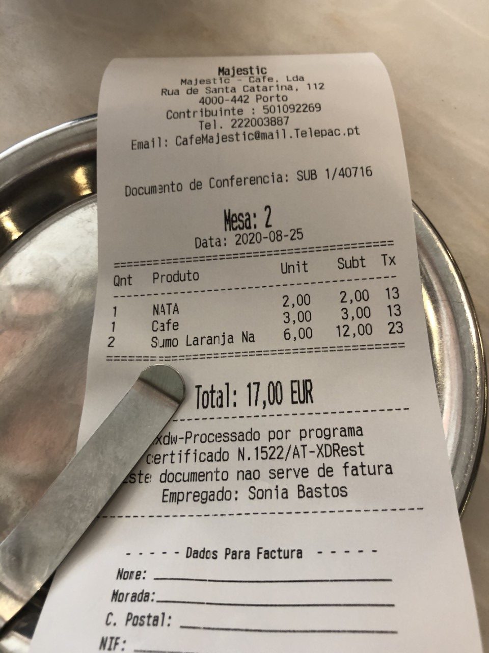 We hadden genoeg van Porto gezien en zijn via de luxe winkelboulevards langzaam richting metro gewandeld, echter Marianne had nog een wens, koffie drinken bij “Majestic”, de mooiste koffietent in Porto, wat de naam al deed vermoeden. Er had bij ons een lampje moeten gaan branden, de prijzen waren hier eerder Keizerlijk. Alles ging hier driemaal over de kop, maar het is een chique interieur. Van armoe ben ik een halte eerder uitgestapt om boodschappen te halen bij de Lidl.