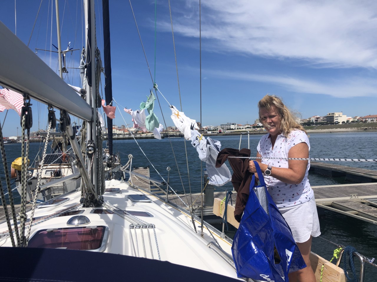Het is vandaag geen Porto geworden. Marianne houdt vandaag een oude traditie in stand “maandag wasdag”. Niet dat we daar veel van aantrekken, maar het staat wel leuk in het verhaaltje. We vonden dinsdag een betere dag om naar Porto te gaan. Heel de morgen hebben we besteed aan schoonmaak, wassen en boodschappen halen. Er was gelukkig nog tijd genoeg om in de middag naar het strand te gaan.