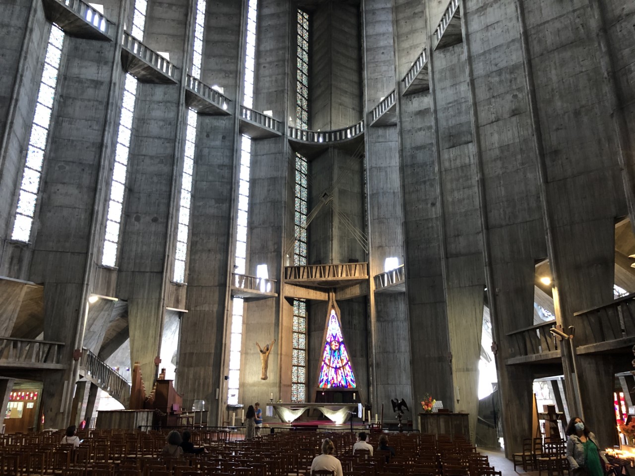 Een heel erg rustig ochtend in Royan. De crew mocht uitslapen. Ik zorgde voor de stokbroodjes. Na een heel laat ontbijt ben ik wat boodschappen gaan halen. Marianne dook intussen in de computer voor wat bezienswaardigheden in Royan. Toen ik terug kwam konden we gelijk weer door, want er was markt tot 13:00 uur. De Marché Central is in een rond gebouw met een bijzonder koepeldak. Het was inmiddels al 12:00 uur, dus snel de schoenen aan en de mondkapjes mee. Het was niet ver vanaf de Just, dus we hebben er uitgebreid rondgelopen en naar de ruim gesorteerde viskramen gekeken met veels te dure vis. We hebben ook nog de kerk van Royan bezocht. Deze heeft een aparte naoorlogse bouwstijl. Het was heel hoog en opgetrokken van beton met mooi glas-in-lood. Royan is gebombardeerd in de 2e WO en alles doet hier modern aan. Het is hier groen met veel bloemen. Via wat winkeltjes die alweer sluiten ’s middags, zijn we weer op de Just beland. We hebben inmiddels besloten om morgenmiddag rond 15:00 uur te vertrekken voor een hele lange zeiltocht ruim 125 mijl, dat is voor ons bijna een etmaal. Maar de windrichting is goed en alles wijst erop dat het een zonnig tochtje gaat worden met een volle maan. Oh, ik krijg net door van Marianne dat het een bewolkte nacht wordt en bij aankomst kans op een buitje. Samen met Daniel heb ik in de middag naar de kwalificatie gekeken van de formule 1. We zijn allemaal in de relax mode voor morgen, als we van de namiddag, avond, nacht, tot de ochtend en middag moeten overbruggen met nu en dan een slaapje.