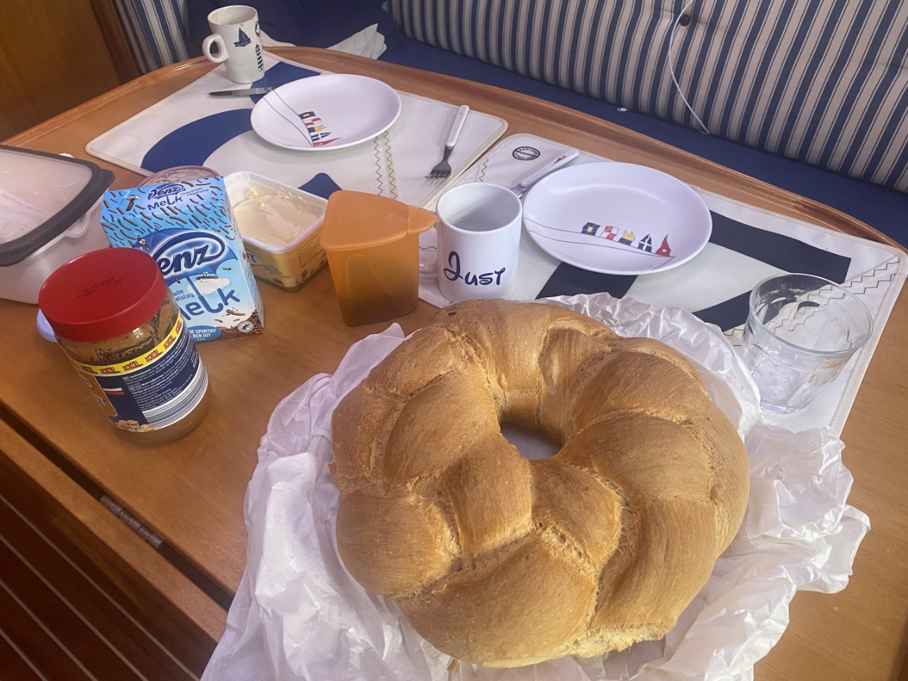 Weer regen tijdens het wakker worden. We hebben het idee of we in Nederland zijn in plaats van in Griekenland. Gelukkig worden de voorspellingen heel langzaam beter. Vanmorgen heb ik bij ons vaste bakkertje een prachtig mooi enorm Paasbrood gekocht, dat net uit de oven kwam. Verser kan je het niet hebben.