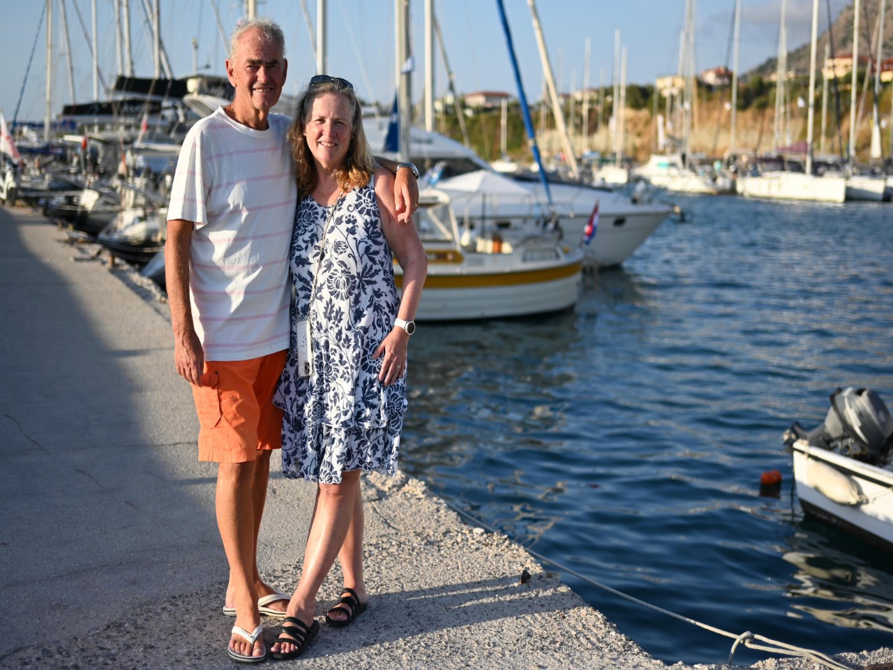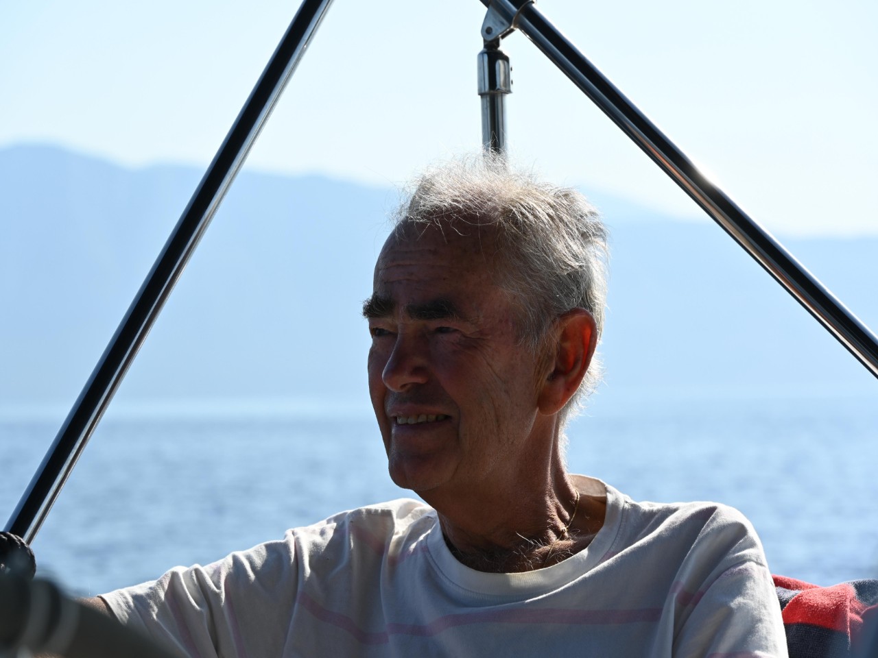 Probleem! Marianne vraagt zich af of de watertank leeg is. Ik zeg onmogelijk, dus we gaan op onderzoek uit. Hebben we spanning op de waterpomp? Ja. Wat dan? We hebben heel de waterpomp gedemonteerd en uiteindelijk is het de druksensor, die problemen geeft. Volgens YouTube moet je die flink inspuiten met WD40. Dat doen we dan ook maar. We hebben weer alles gemonteerd en getest. Ja hoor, de waterpomp werkt weer. Bezweet maar voldaan komen we de achterkajuit uit. Marianne heeft heel het stuk gezeild van Baloubay Easy tot bijna in de haven van Palairos.