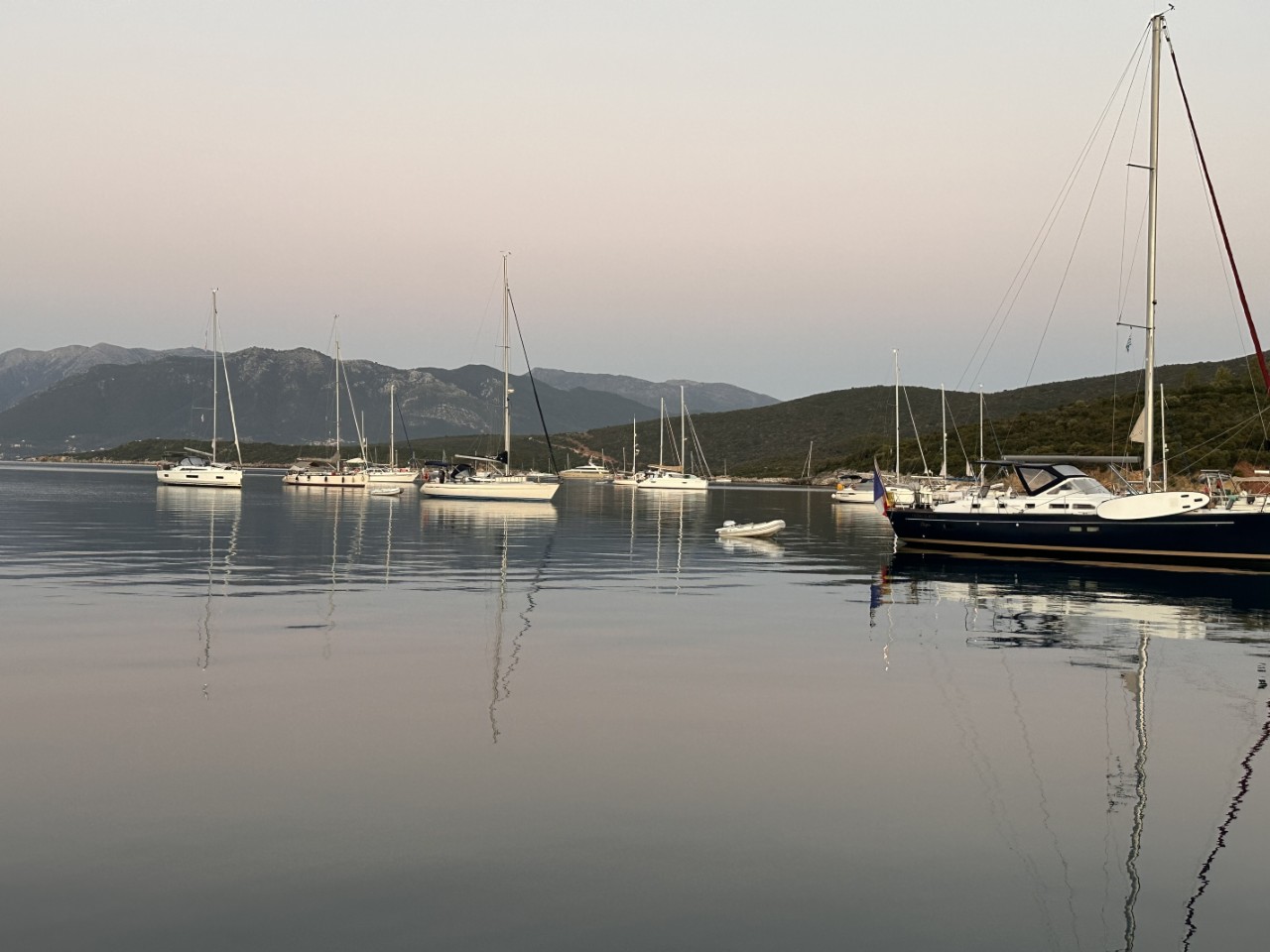 Na ons zondagse ontbijtje varen we stilletjes uit. De ankerbaai verkeert nog in diepe rust. We gaan vandaag naar Palairos voor een tochtje van maar 4,4 mijl. Maar Mark heeft andere ideeën. We varen eerst naar het eiland Skorpidi, waar we ons anker laten zakken voor een snorkel-expeditie. We zien veel verschillende scholen met visjes van klein naar groot in verschillende kleuren.