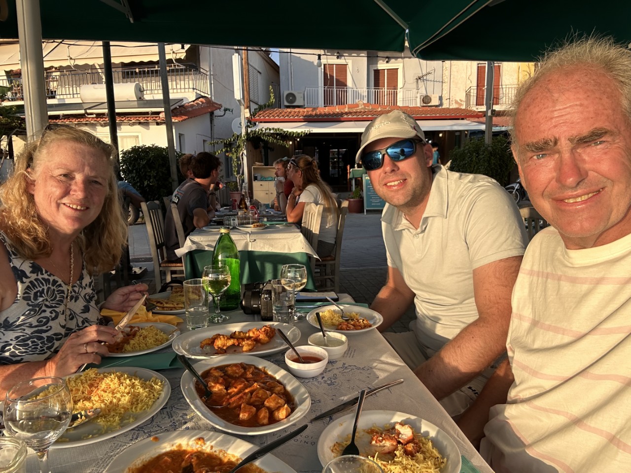 We vinden snel een plekje aan de kade en nemen een verfrissende douche op het achterdekje. We hebben een prima eilandhop dagje gehad en dat afgesloten bij ons favoriete restaurantje Panorama voor een lekkere Indiase currymaaltijd.