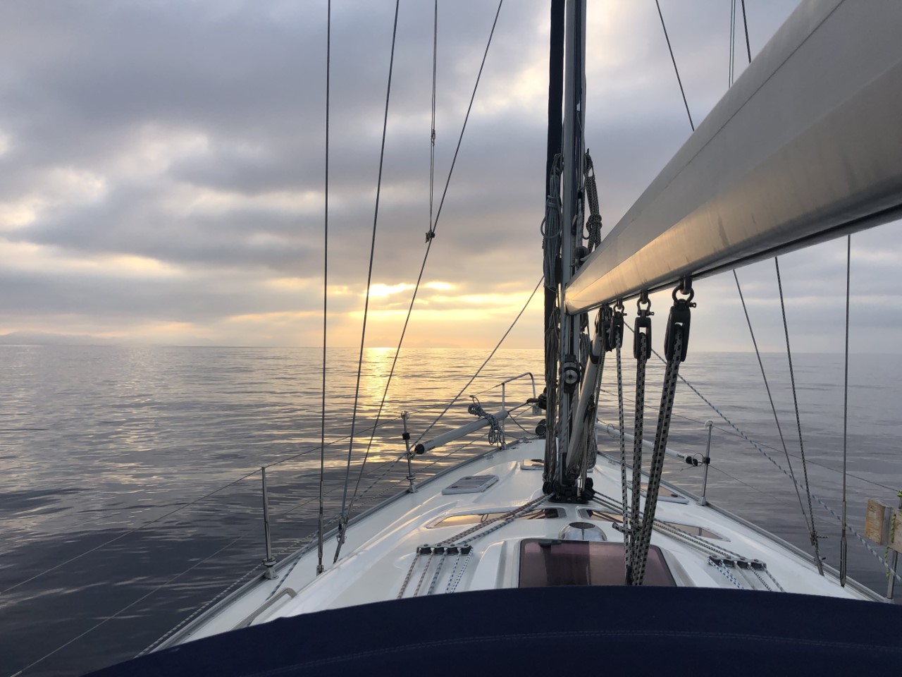 Wat een nacht, zo mooi als die gisteren was, zo slecht is die vannacht. De Just rolde alle kanten op, de swell was veel meer geworden dan we hadden verwacht. We zijn daarom vroeg opgestaan, snel ontbijten, het anker ophalen en vertrekken. We verwachten dat de kustlijn uit veel zandstrand zal bestaan, die zien we ook wel maar toch ook veel hoge bergen aan de kustlijn. Het tochtje is over een gladde zee met weinig tot geen wind. Tot tweemaal toe rollen we het grootzeil uit, maar dat bleek meer voor de sier.