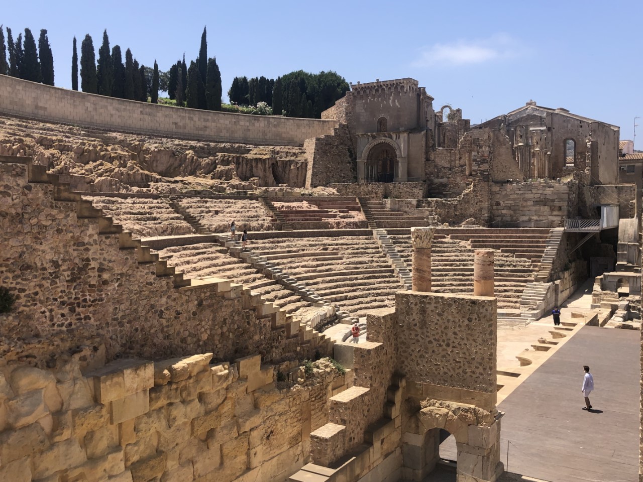 Gisteren hadden we al contact gehad met de haven van Cartagena en we moesten vandaag nogmaals bellen voor een plekje. Voor de marineros is het no problema en we zijn welkom. We krijgen een mooie ligplaats aan het einde van de steiger met een mooi uitzicht op de stad. We zijn bijna gelijk het stadje gaan bezoeken. We lopen rondom een groot Romeins amfitheater door verlaten straatjes met veel leegstand of alleen een voorgevel in de steigers. Maar lieverlee kwamen we in de bewoonde wereld met een luxe winkelstraat. Daar vinden we ook een leuk restaurantje met een “Menu del Dia” voor maar € 10,00 en dan krijg je een lekker voorgerecht, hoofdgerecht, een salade en brood, nagerecht en een drankje. De kwaliteit is erg goed en vers gemaakt. We slenteren weer door de stad verder en verbazen ons over de rijk versierde gevels. De siësta is al begonnen en enkele winkels zijn nog open.