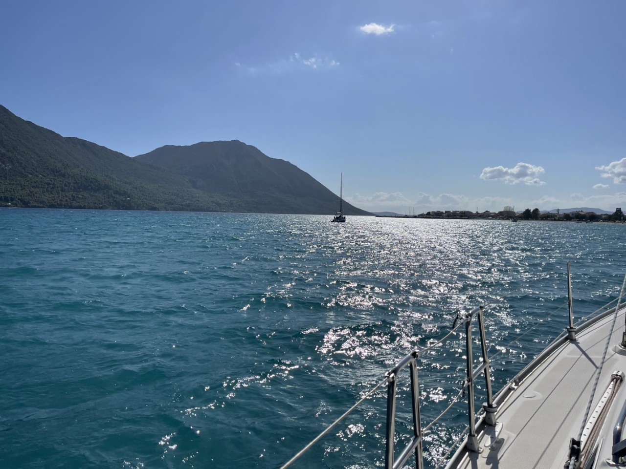 Morgenochtend nog even het dorpje in om de super-de-luxe supermarkt te bezoeken en dan zetten we koers naar Goat Bay of naar Kalamos.