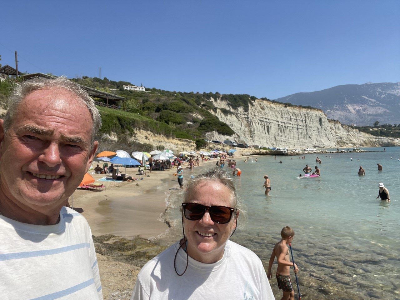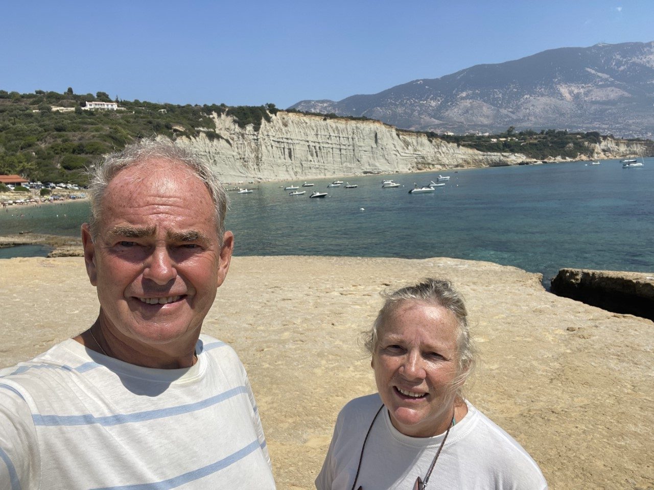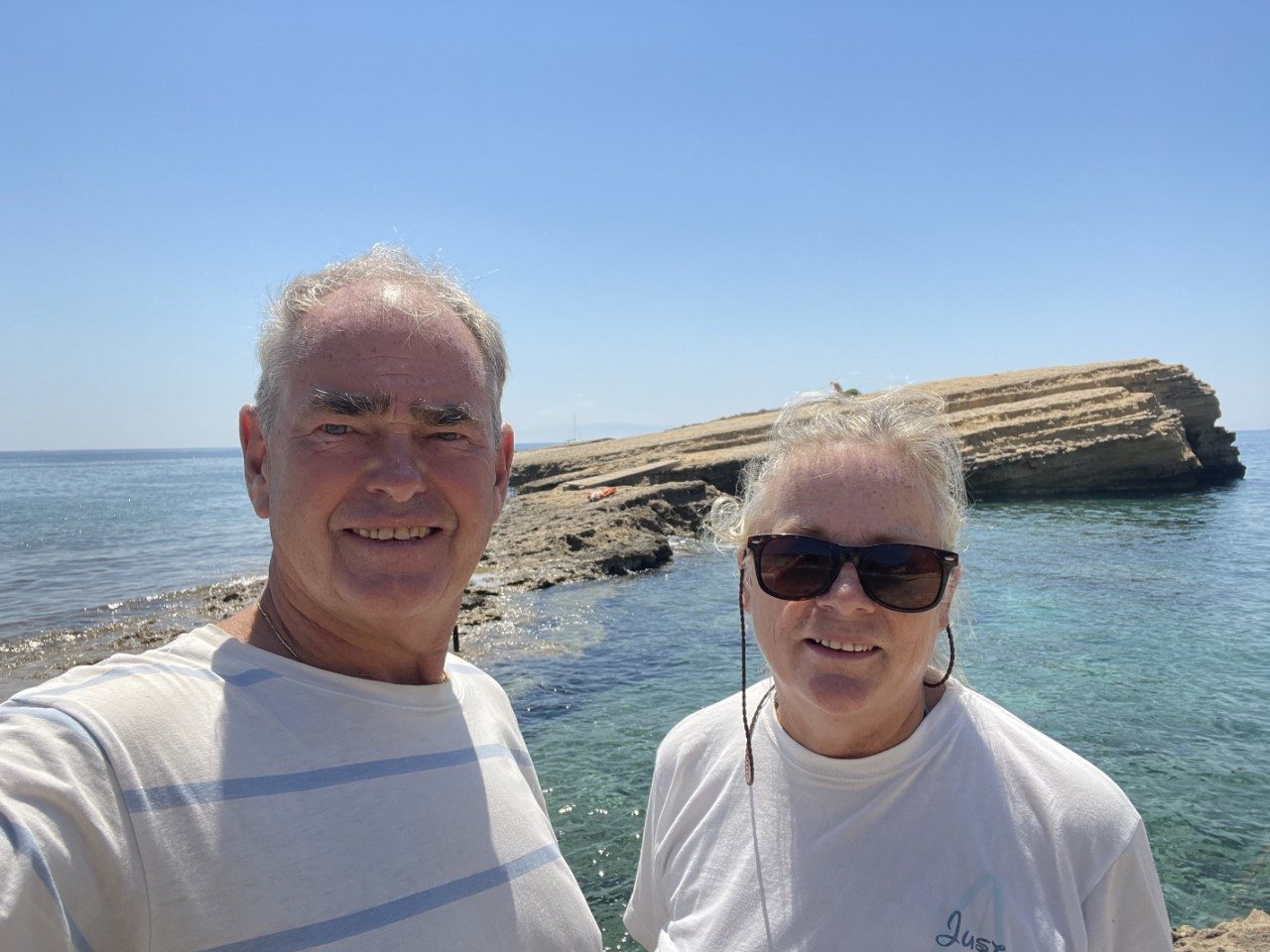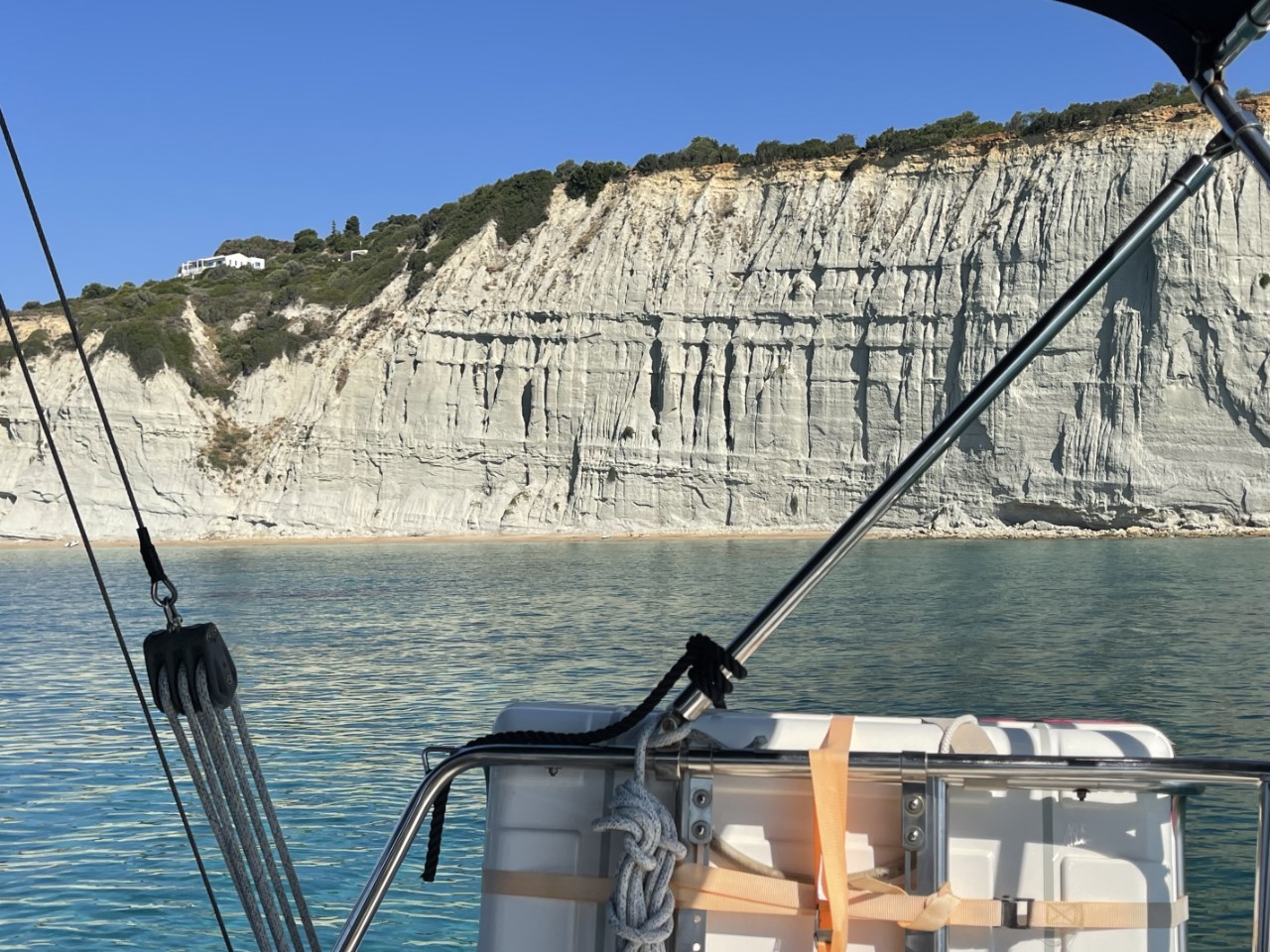 We plannen een rustdag in. Niet dat we het heel erg druk hebben, maar de windverwachting voor de middag is hier stukken lager, dan de verwachting bij Zakynthos. We zwemmen regelmatig en ik maak de waterlijn schoon.