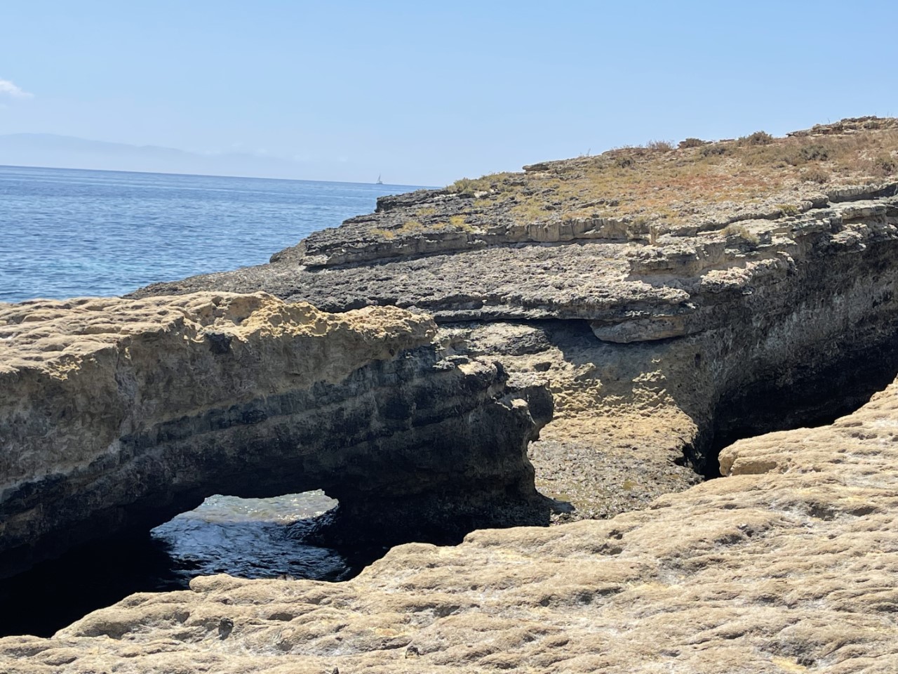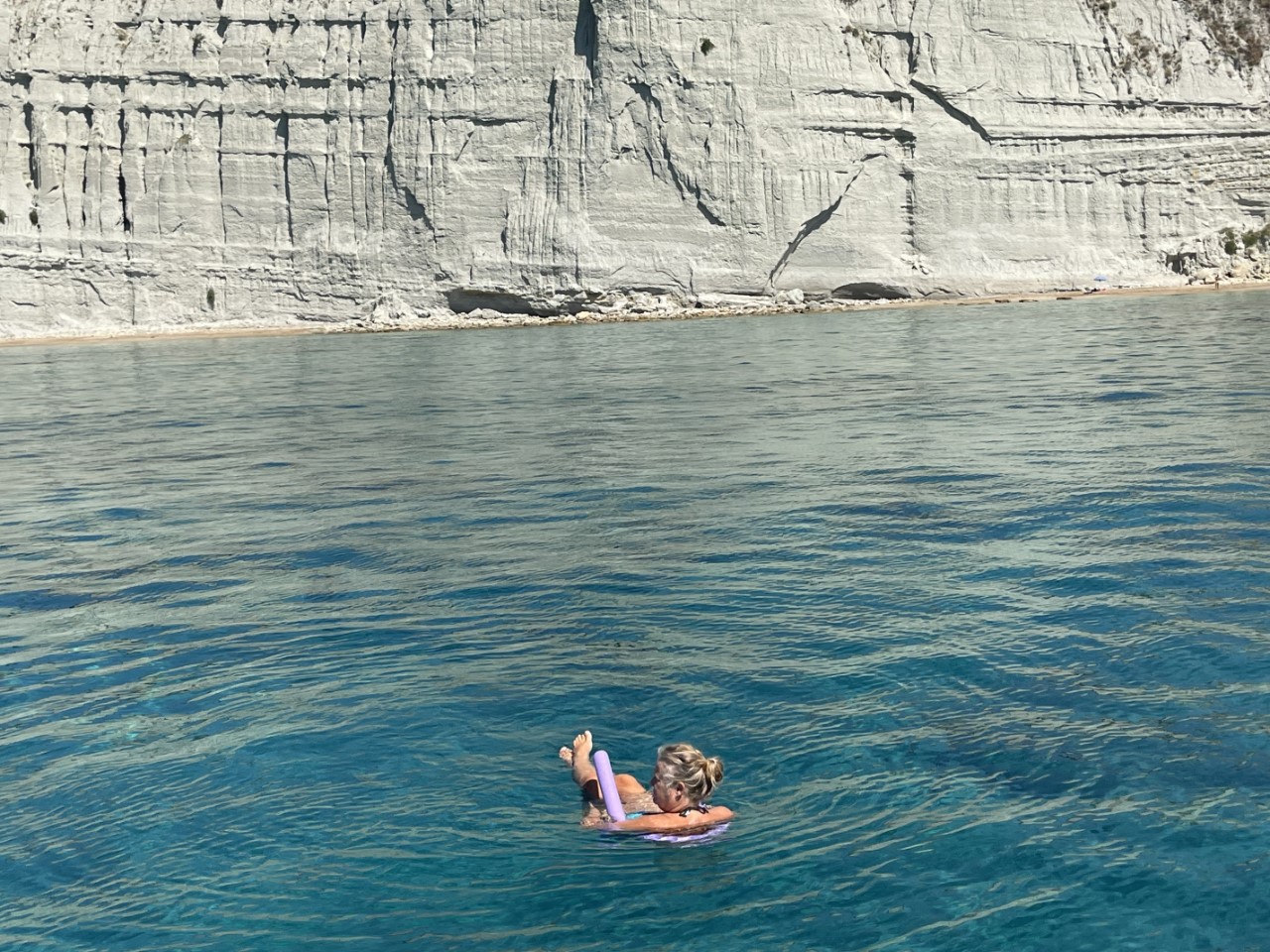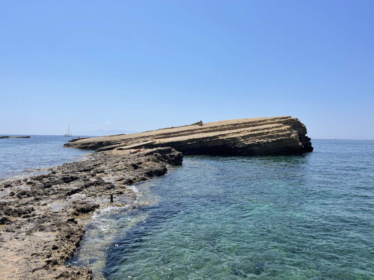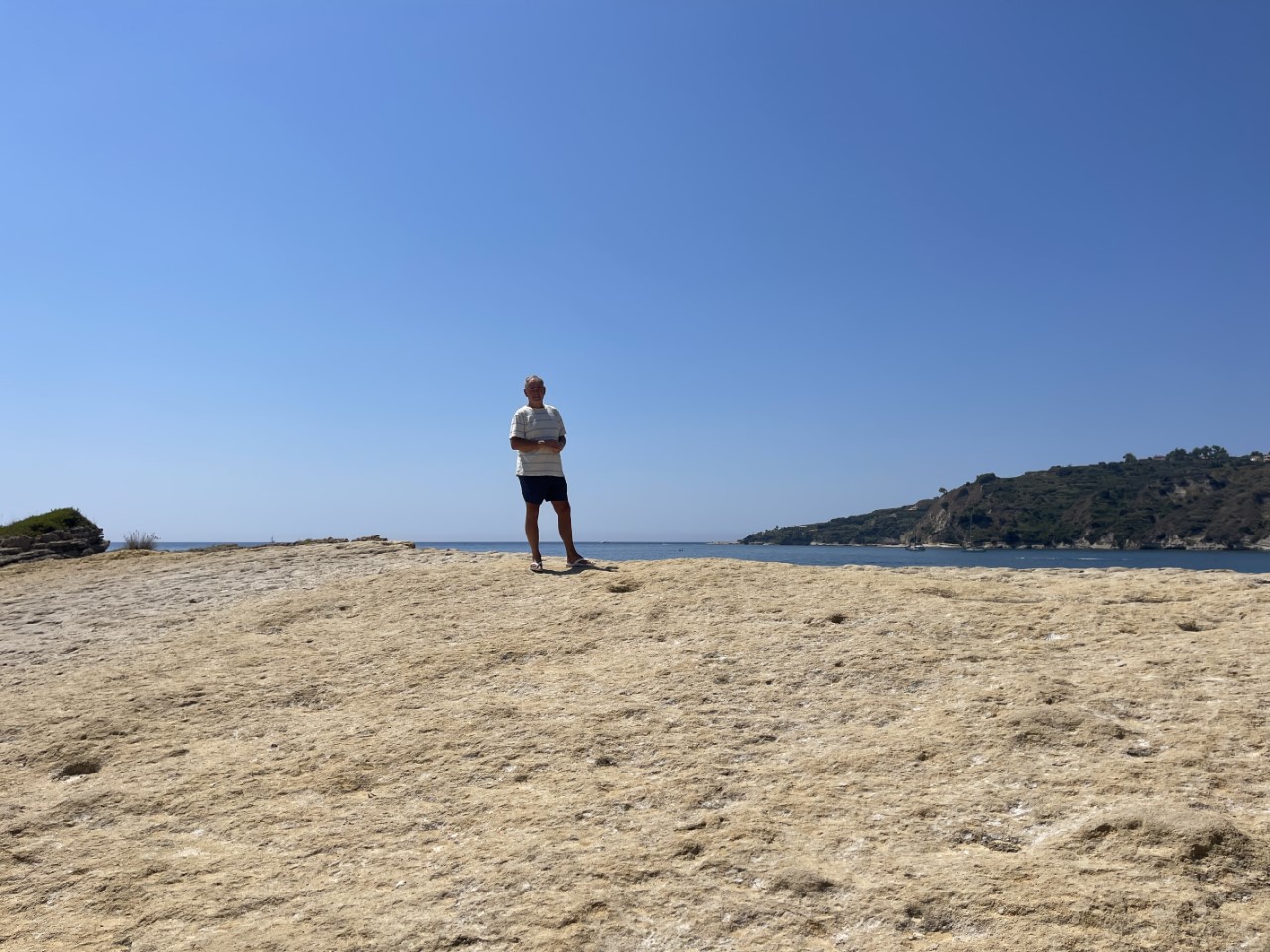 Rond het middaguur maken we een excursie naar het vasteland, met het bijbootje. Via een smal strandje komen we op een aparte schuine rots, die meters boven zeeniveau vol ligt met ingekapselde grote schelpen. Wat er volgens ons op duidt, dat die rots ooit onder de zeespiegel kan hebben gelegen. Dit roept de vraag op, wat je altijd hoort van de milieu-wappies en de wetenschap, of de zeespiegel stijgt. Het zou interessant zijn erachter te komen, wanneer en hoe die schelpen er terecht zijn gekomen en of de niveau-verschillen vaker voorkomen.