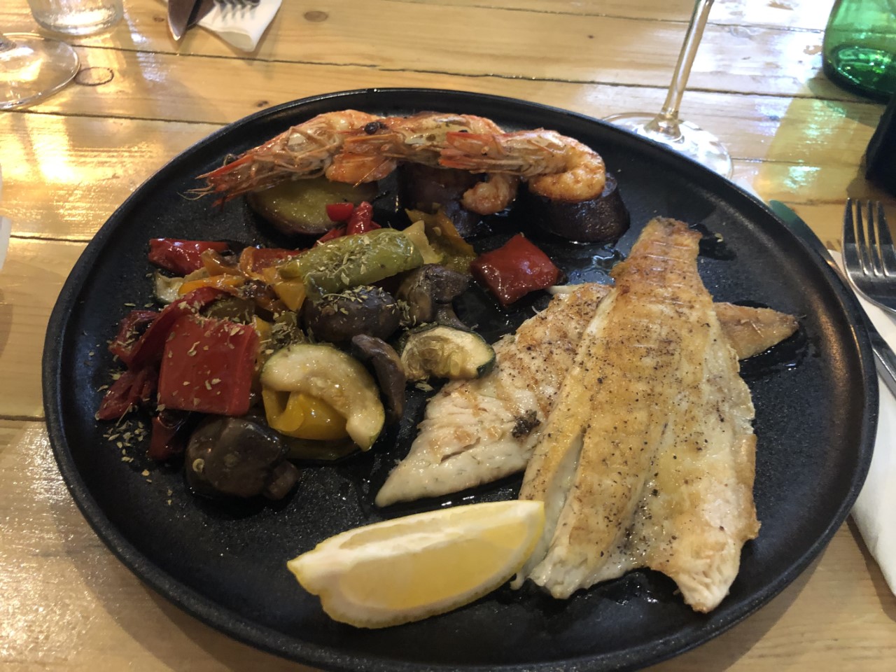 Tegen de avond ben ik met een beeldschone Marianne opstap gegaan, letterlijk. Het busje wat we op het oog hadden reed vol door langs de halte, dus we gingen stappen naar het restaurantje. We kwamen aan in een nog leeg restaurant, waar het ook niet veel drukker werd voor de avond. Wij kregen lekkere voorgerechtjes, hoofdgerechten en toetje voorgeschoteld, vergezeld met een lekker flesje wijn. De terugweg hadden we weer een probleem met de bus. We wisten niet waar de halte was, maar we zagen hem wel leeg langsrijden toen wij weer aan het stappen waren. Hoewel het is wel goed om wat extra calorieën op deze manier te verbranden.