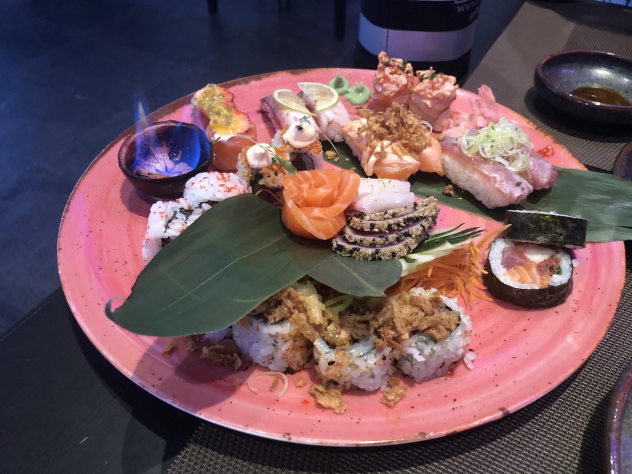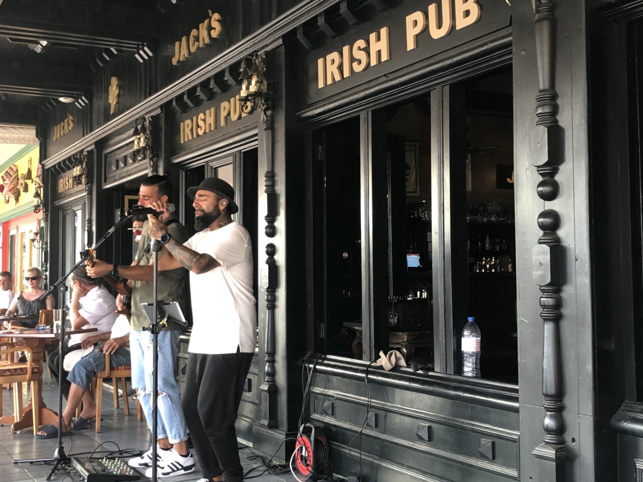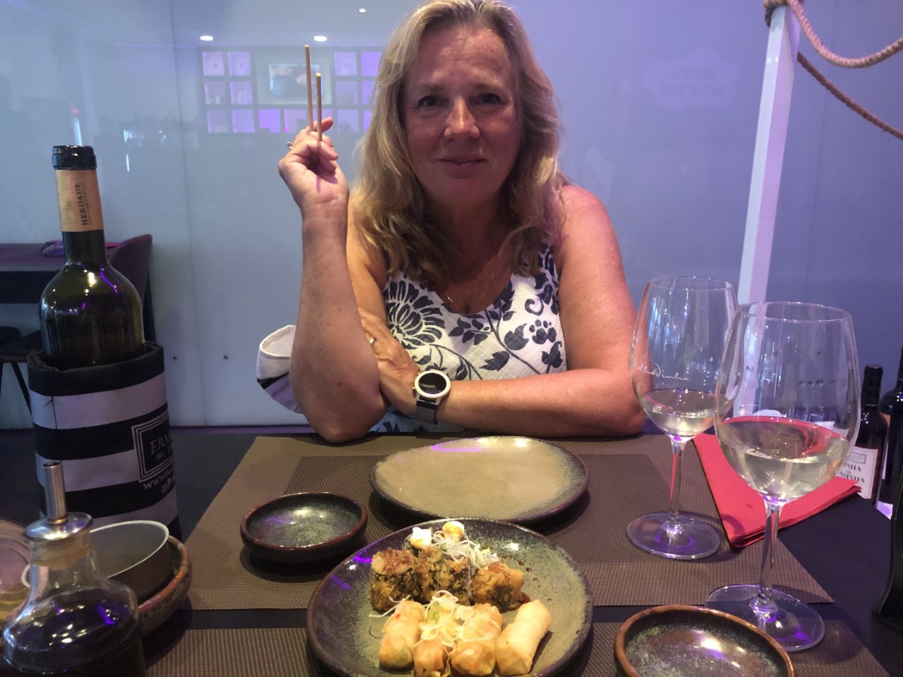 Op de terugweg zijn we bij een grote supermarkt gestopt om de drankvoorraad op peil te houden. We zijn toch bijna vier uur onderweg geweest en hebben lekker zitten uitrusten in het kuipje. We werden door Wim en Ria uitgenodigd om te gaan borrelen bij de Irish Pub, daar was de gehele Nederlandse vertegenwoordiging van de F-steiger al aanwezig. En met een goede zanger was het erg gezellig. Een vriend van Benno en Yvonne bleek zijn verjaardag te vieren en daar waren we een beetje brutaal bij aangeschoven. Wij bleven niet te lang, want we hadden een tafeltje gereserveerd bij Wine and Sushi, waar we heerlijk hebben gedineerd.