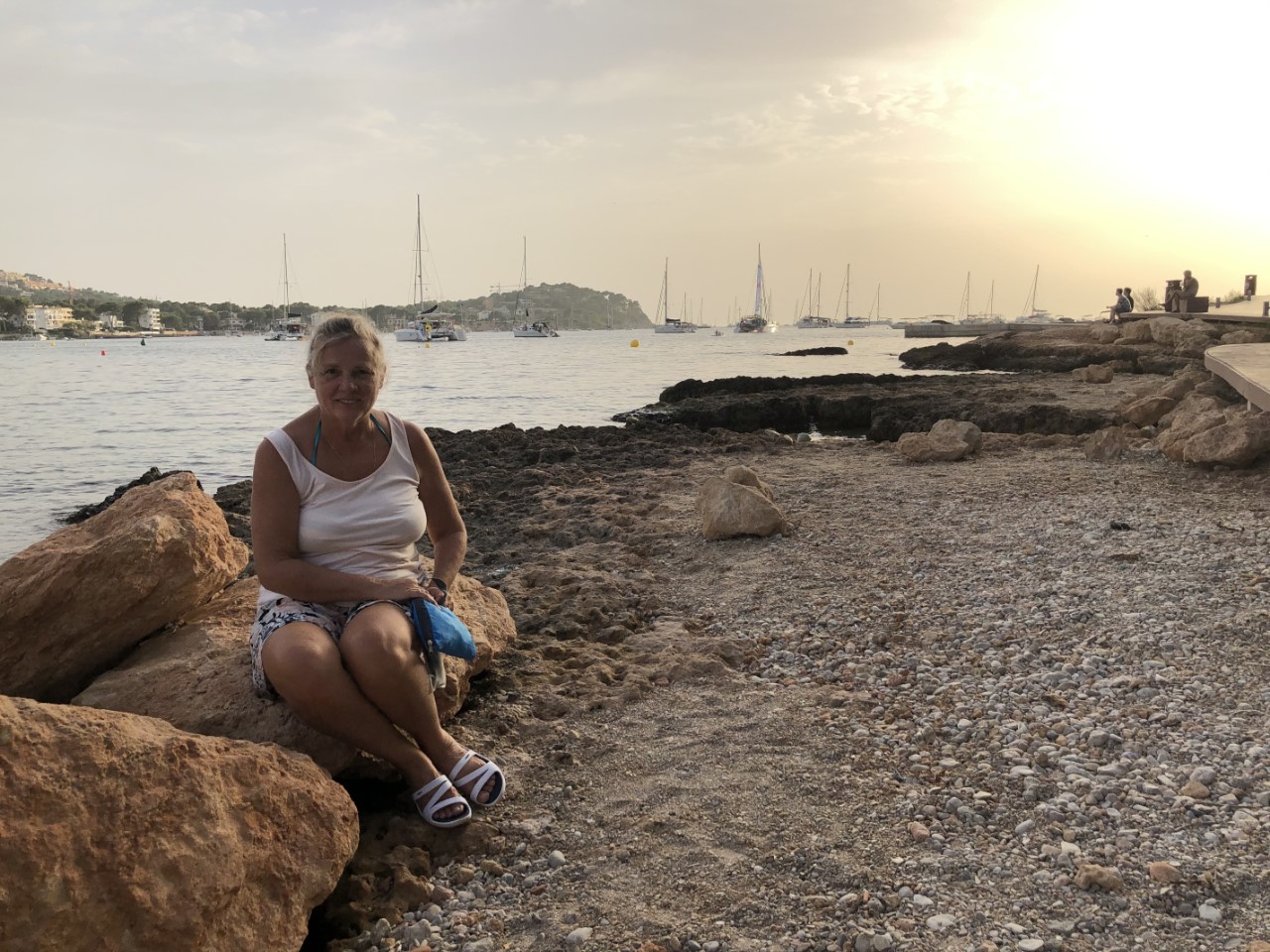De bedoeling was om vandaag verder te varen, maar we vinden het hier een prettige baai en we hebben tijd zat om de 56 mijl te overbruggen naar Porto Cristo. We gaan daar voor twee dagen de haven in. Het is dan voor ons al meer dan een maand geleden om aan een steigertje vast te liggen. Marianne en Daniel zijn daarvoor een hele planning aan het maken, waar we de komende dagen zijn op Mallorca. De rest van de dag hebben we wat gezwommen, wat gelezen, wat geluierd, gewoon genieten van het niks doen.