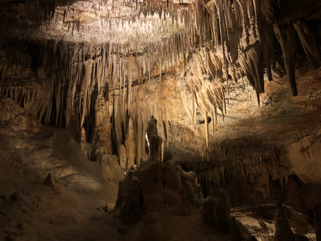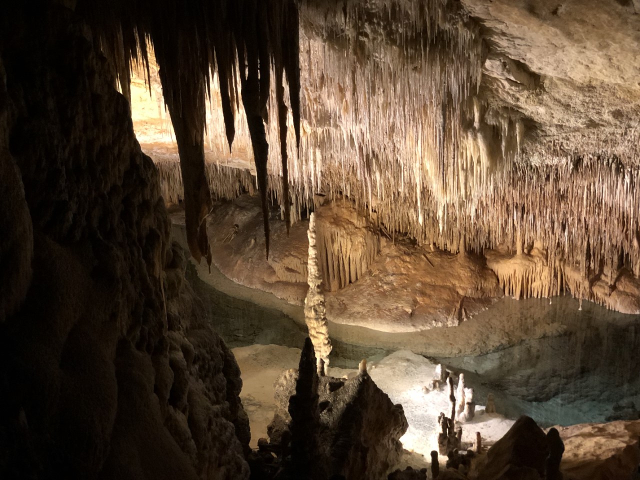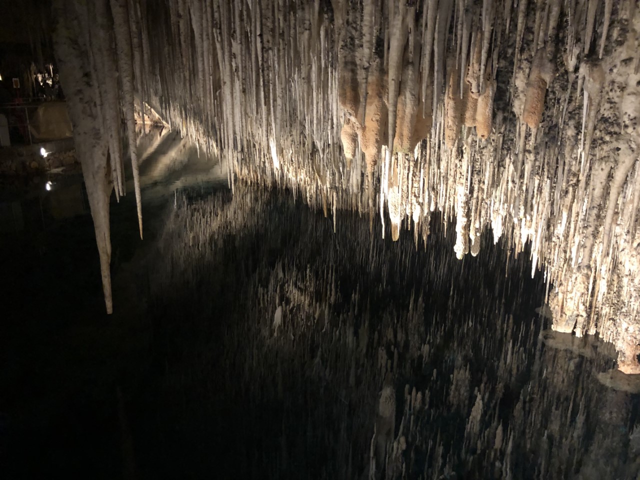 De grootste en enige attractie in Porto Cristo zijn de Cuevas Drach, de grotten van Drach, een ondergronds grottenstelsel met druipsteen, waar je doorheen kan wandelen. Er is ook in de grot een hele onderwaterrivier, waar je voor coronatijd met een bootje doorheen kon varen. Nu vaart er een bootje met muzikanten, die een klassiek miniconcert geven. Wat die twee andere bootjes erbij deden, is voor ons een raadsel of het moet het synchrone roeien zijn.