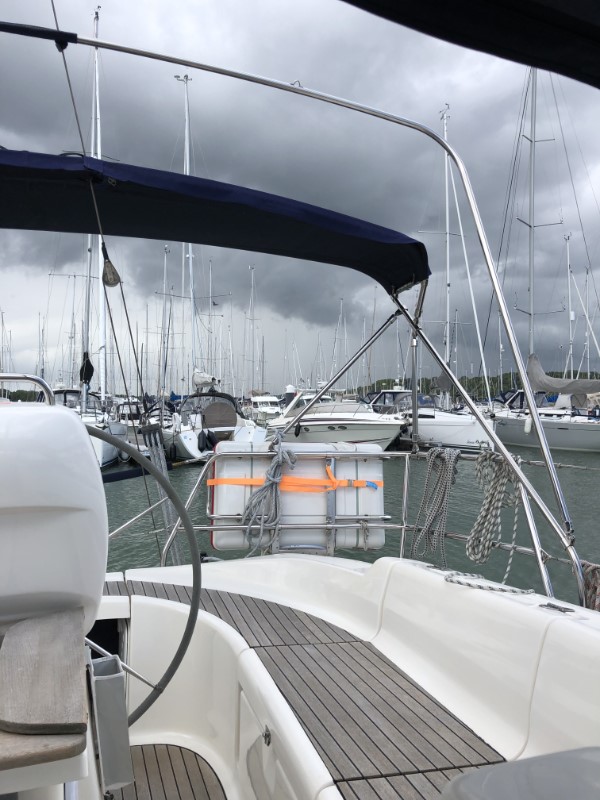 Wat een regen en storm vannacht, het is hier niet beter dan in Nederland. In de ochtend klaarde het wat op en gingen we op zoek naar de High Street. Er waren wat rommelige koffietentjes en restaurantjes en een super kleine supermarkt. De paden waren er zo smal, dat ze eenrichtingsverkeer hadden ingesteld en de winkelwagentjes achterwege hadden gelaten. Er was natuurlijk een kerkje, die er al staat sinds 1109. We hebben vervolgens geprobeerd om te reserveren voor de lunch voor morgenmiddag bij de Yachtclub van de Royal Air Force, maar die waren nog aan het vliegen. Vanmiddag nog maar een keertje proberen. Bij de Force 4 chandlery ging ik op zoek naar wat hebbedingetjes, wat uiteindelijk een slangetje van nog geen halve meter werd. Marianne kwam een Fluffy Gill vest tegen, dat ze niet kon laten hangen. De volgende keer ga ik maar alleen. In de middag toen het na weer veel regen droog was, zijn ze we gaan kijken of de leden van de RAF Yachtclub inmiddels geland waren. We hebben denken wij gereserveerd. We moesten ons inschrijven in een visitor’s book en daar moet vervolgens nog een soort toestemmingskrabbel van een member komen, die ons introduceert ofzo. We gaan het morgenmiddag meemaken, anders wordt het een boterhammetje. Geheel tegen mijn gewenning in hadden we, in plaats van brood met iets lekkers (zoals altijd op zaterdag), een pastagerecht met bavette steak. Het smaakte heerlijk, maar het moet geen gewoonte worden op zaterdag. Het was een Lazy Saturday.