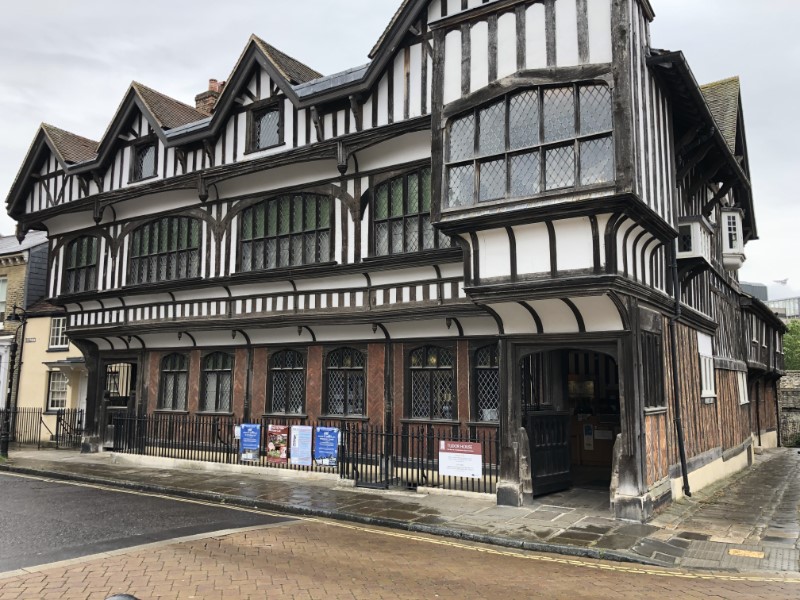 Vanmorgen vroeg op en op zoek gegaan naar een bakker of supermarkt. Na ruim een uur was ik terug op de Just. Zonder brood, dat is me nog nooit overkomen! Marianne had wel haar kwark met muesli en ik moest op een houtje bijten. Dan maar wandelen naar het centrum, een wandeling net als vanmorgen door het industrieterrein. Dichterbij het centrum kregen we wat herkenning en liepen we naar ons eerste doel, het Tudor House. Een gebouw uit 1180, wat eerst een soort kasteeltje was en in de 14e eeuw zijn huidige vorm kreeg. Je kon er zien hoe de bewoners van het huis in de Tudorperiode van 1480 tot 1603 het huis hadden bewoond. Op naar de moderne wereld West Quay, een grote Shopping Mall. We zijn er snel door heen gelopen. Op weg naar het theater kwamen we eindelijk een ASDA supermarkt tegen voor de bootvoorraad en brood voor morgenochtend. Maar eerst naar het theater om de vanmorgen gereserveerde kaartjes voor morgenavond op te halen voor de musical Mathilda van Roald Dahl, in het mooie Mayflower theater. Na de boodschappen hadden we weer een fikse wandeling naar de haven. Marianne ging in de relaxstand en ik zorgde voor een Mexicaanse Nacho schotel op aanwijzingen van Marianne. Het is sinds we aan boord zijn nog niet gestopt met regenen, dus vervangen we de romantische wandeling voor een romantische filmavond.