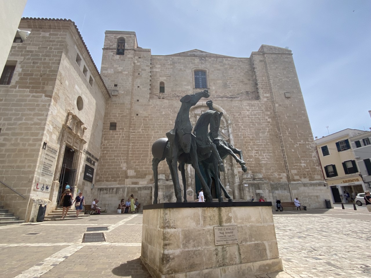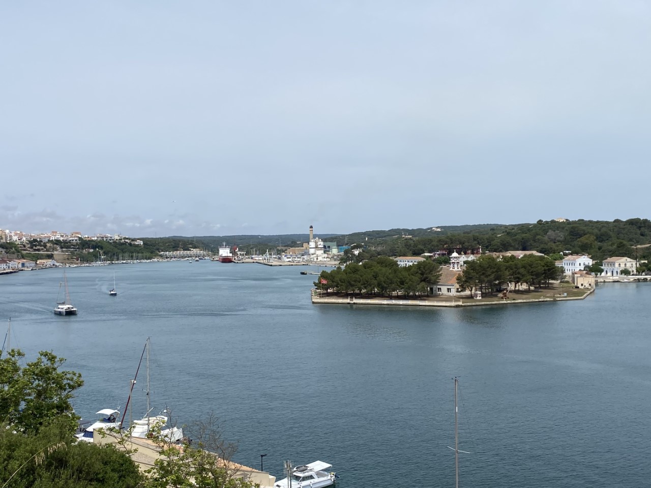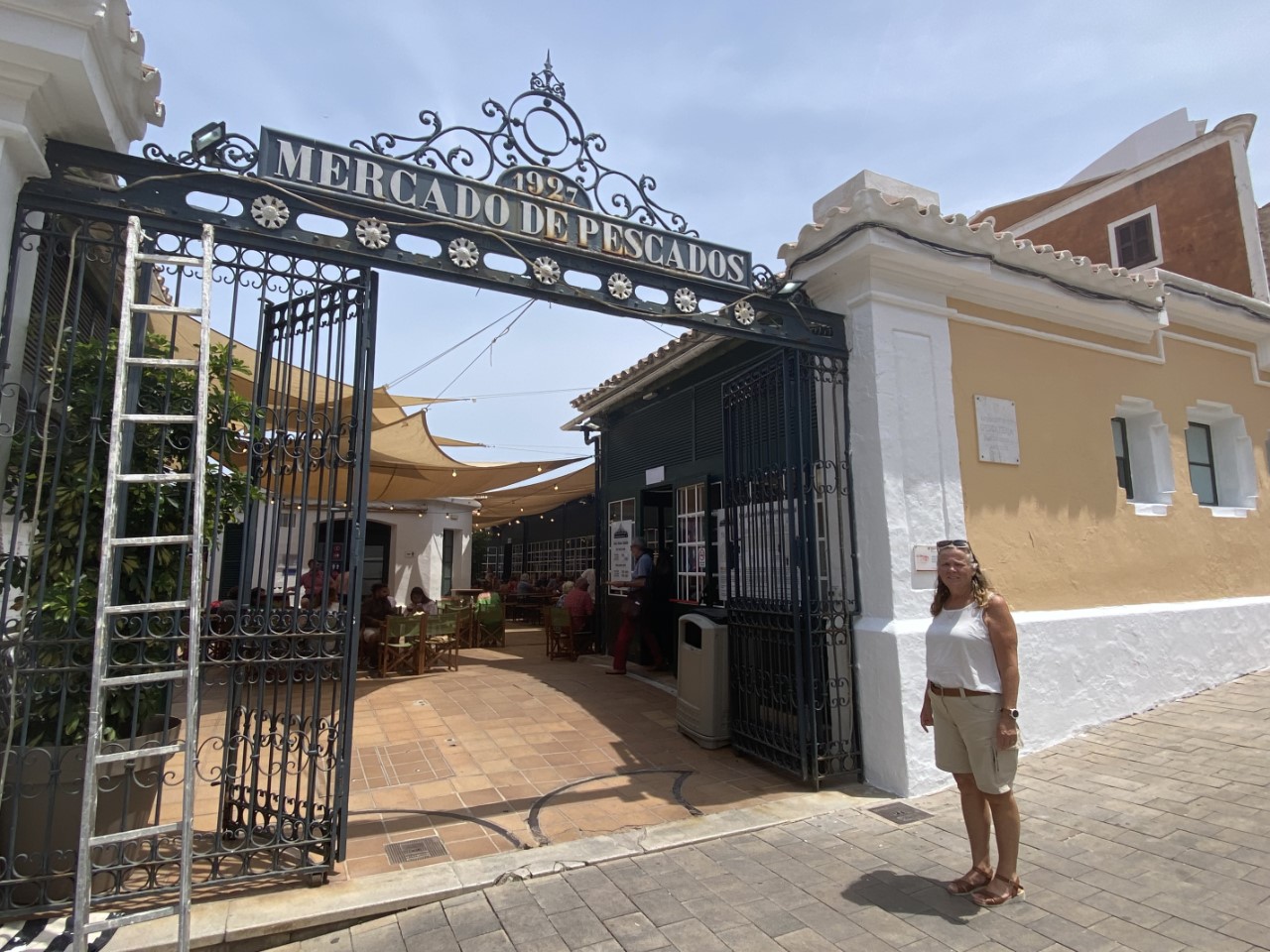Eenmaal boven hebben we alle hoogtepunten van Mahon bekeken. We wandelden langs het oude klooster, waar nu een markt in is gevestigd met een gezellig koffietentje, het plein España, de hele oude vismarkt, die voor de ene helft een lang gestrekte bar heeft met wel 100 verschillende soorten Pinchos. Dit was heel aantrekkelijk, maar het was nog vroeg. De andere helft besloeg de daadwerkelijke vismarkt. Verder zien we wat kerkjes en slenteren we gewoon wat door de gezellige straatjes. Voor het museum van Mahon zijn we te laat, die gaat bijna sluiten voor de siësta.