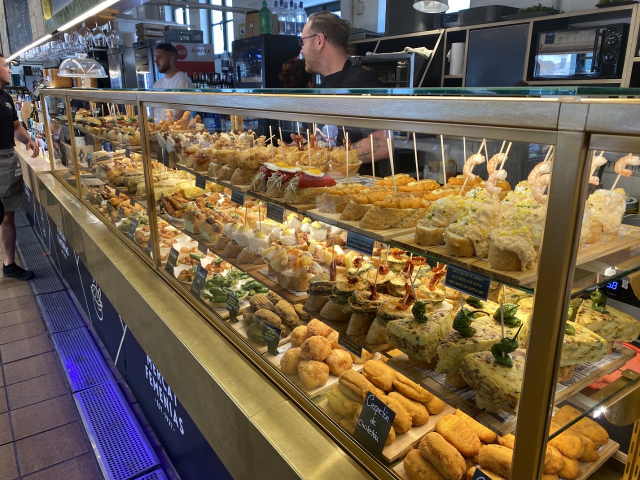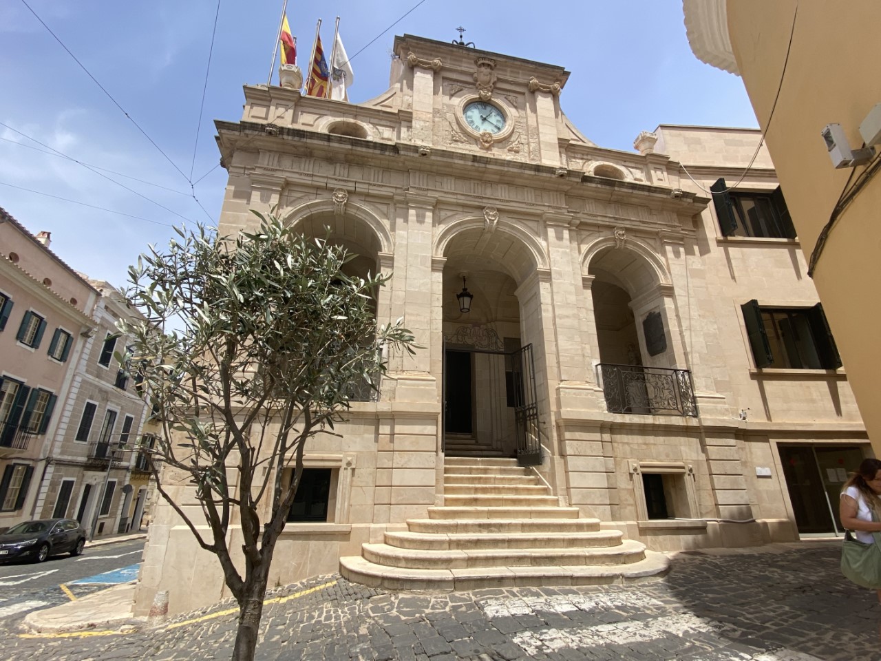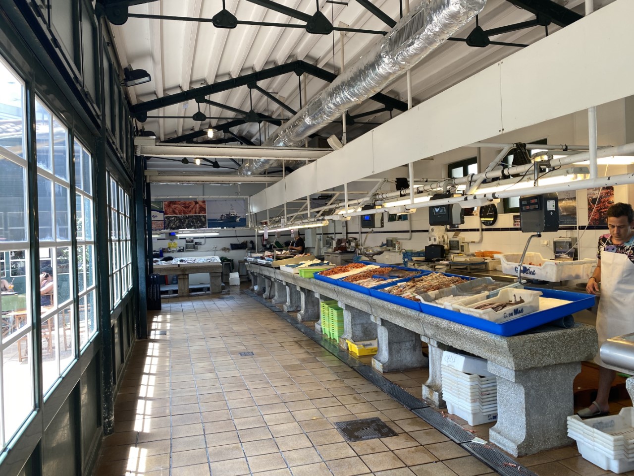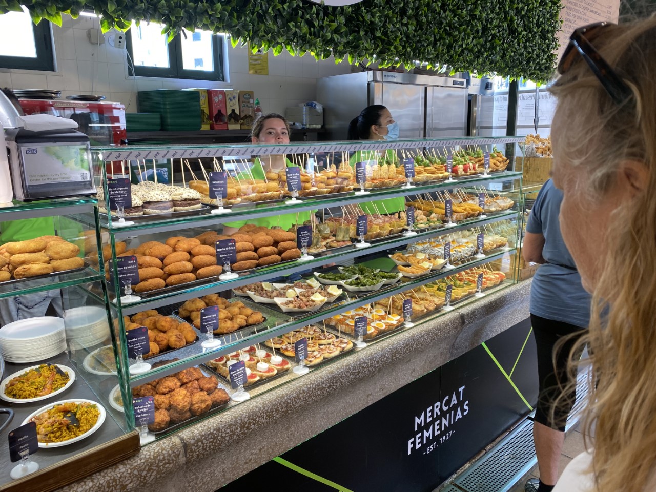 Eenmaal boven hebben we alle hoogtepunten van Mahon bekeken. We wandelden langs het oude klooster, waar nu een markt in is gevestigd met een gezellig koffietentje, het plein España, de hele oude vismarkt, die voor de ene helft een lang gestrekte bar heeft met wel 100 verschillende soorten Pinchos. Dit was heel aantrekkelijk, maar het was nog vroeg. De andere helft besloeg de daadwerkelijke vismarkt. Verder zien we wat kerkjes en slenteren we gewoon wat door de gezellige straatjes. Voor het museum van Mahon zijn we te laat, die gaat bijna sluiten voor de siësta.