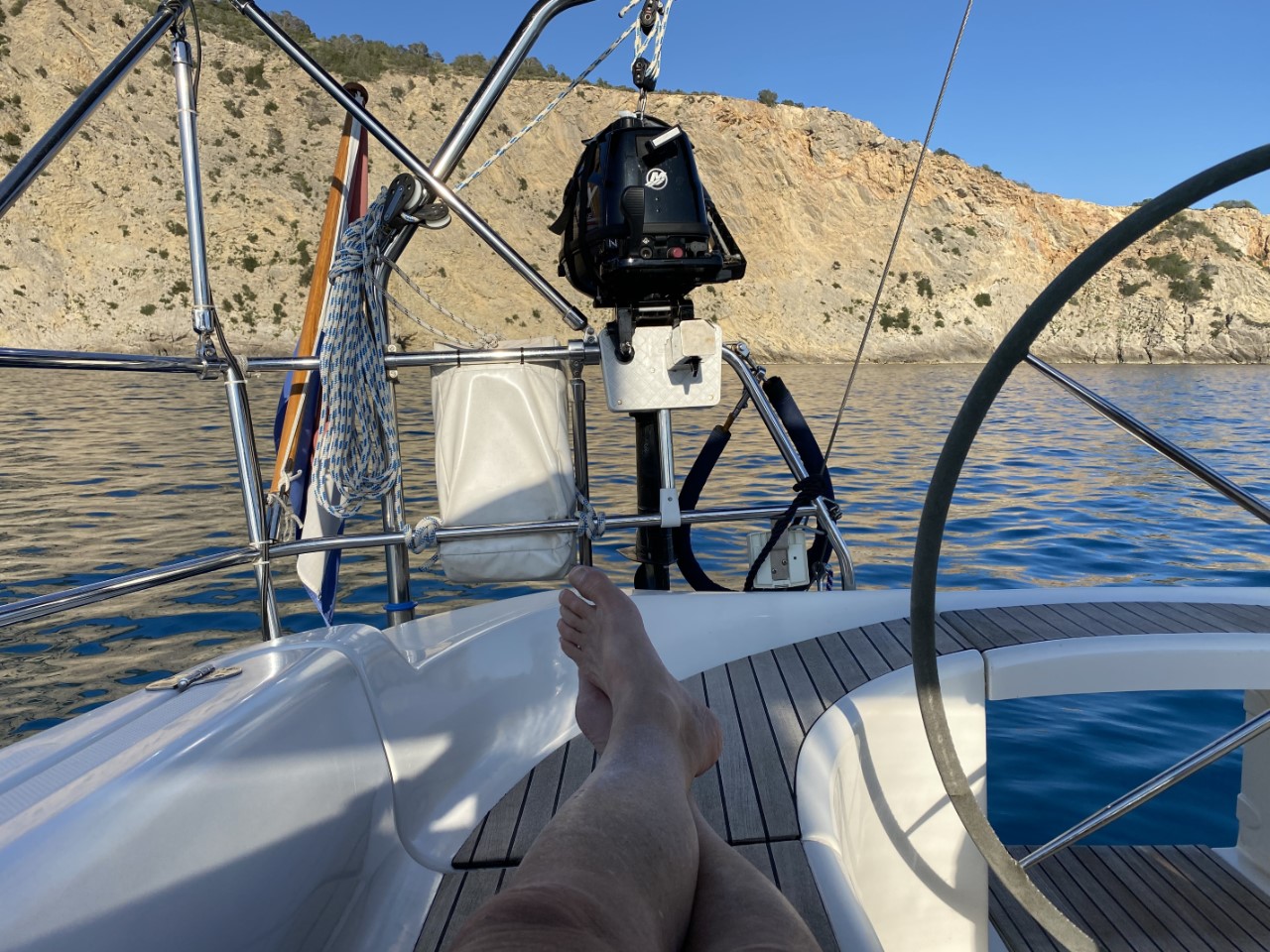 De rest van de middag zitten we lekker lui in het kuipje, een beetje voorbakken en vooral genieten. We hebben nu een beetje het gevoel dat we onderweg zijn. Morgen gaan we naar een voor ons nog onbekende Cala.