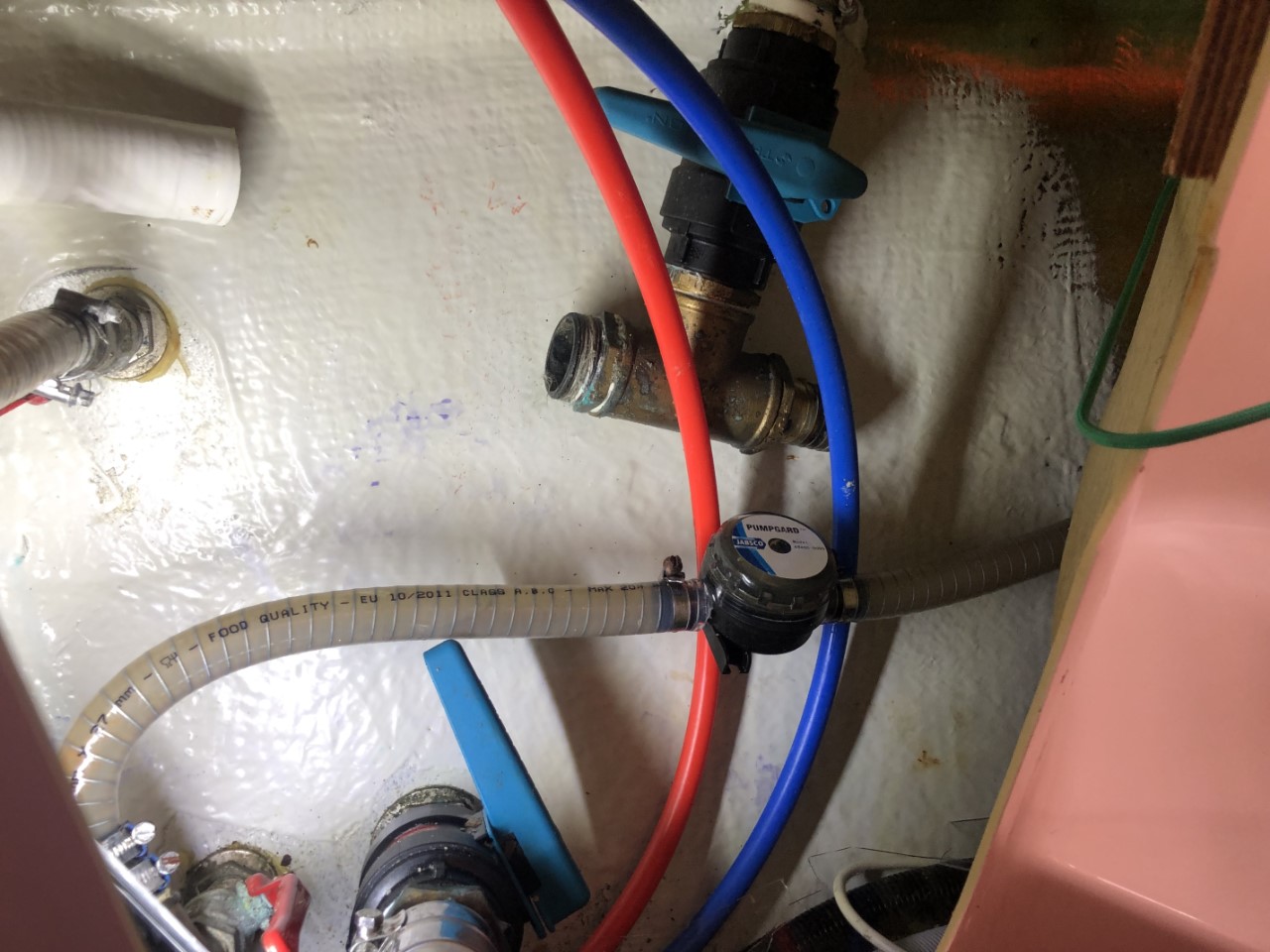 Vannacht kreeg ik een melding van Marianne dat het toilet niet goed pompte. Half slapend reageerde ik een klus voor morgen. Vol frisse moed begin ik aan de klus. Van het toilet heb ik alle onderdelen vervangen voor nieuw. En dan denk ik klaar te zijn. Nee dus. Dan maar een vroege duik om te kijken of er een eventuele verstopping vanaf buiten door te prikken is. En daarna vanuit binnen met behulp van een hogedrukpompje. Er bubbelt iets onder de Just, dus we denken dat we de verstopping verholpen hebben. Voor de zekerheid heb ik een half liter azijn in de buizen gepompt.