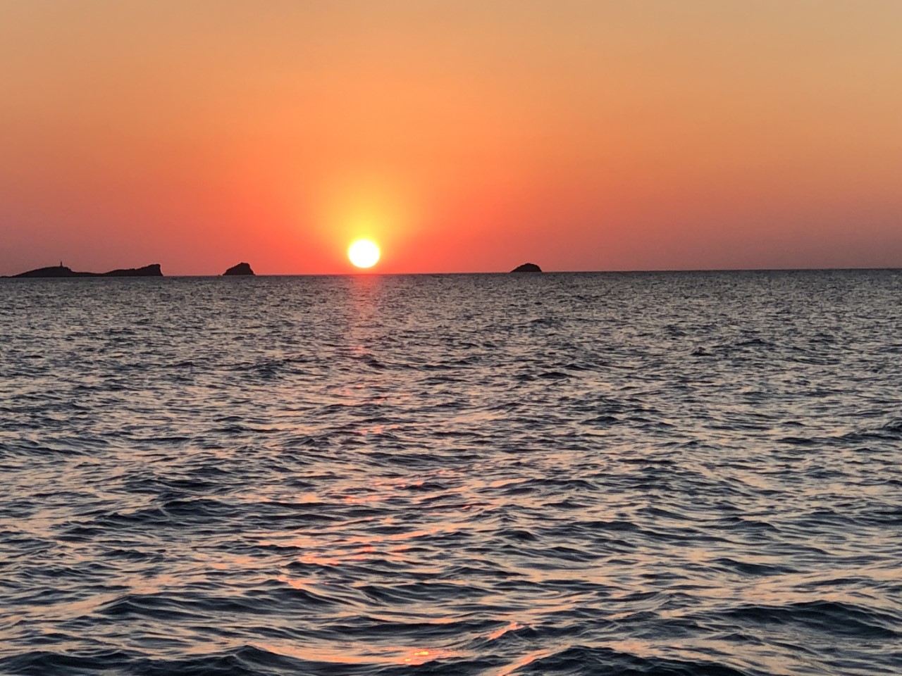 We zitten vandaag helemaal eerste klas voor de “sunset”, met maar twee andere zeilboten liggen we in de baai. Op de kade is het iets drukker en na het tromgeroffel en applaus zijn we naar binnen verhuist om de muggen te ontlopen. Morgen een baaitje verder.