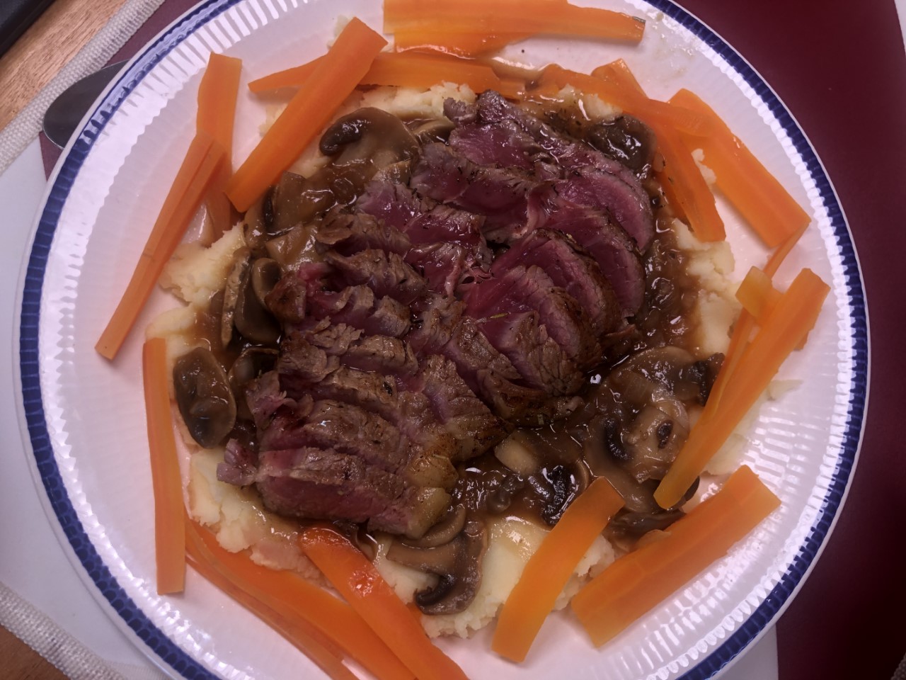 In de namiddag, na de gebruikelijke siësta, zijn we verder gegaan met kokkerellen. We hadden een paar flinke entrecotes gehaald. Met een lekkere champignonsaus, een lekker groentetje en puree, hebben we een luxe maaltijd in elkaar gedraaid. Marion heeft voor Mark een sloepje op de Kaag geregeld, waarmee ze naar Kaagsociëteit varen voor zijn verjaardagsetentje. Zowel tijdens het varen en het etentje hebben we via facetime contact om er toch een beetje bij te zijn.