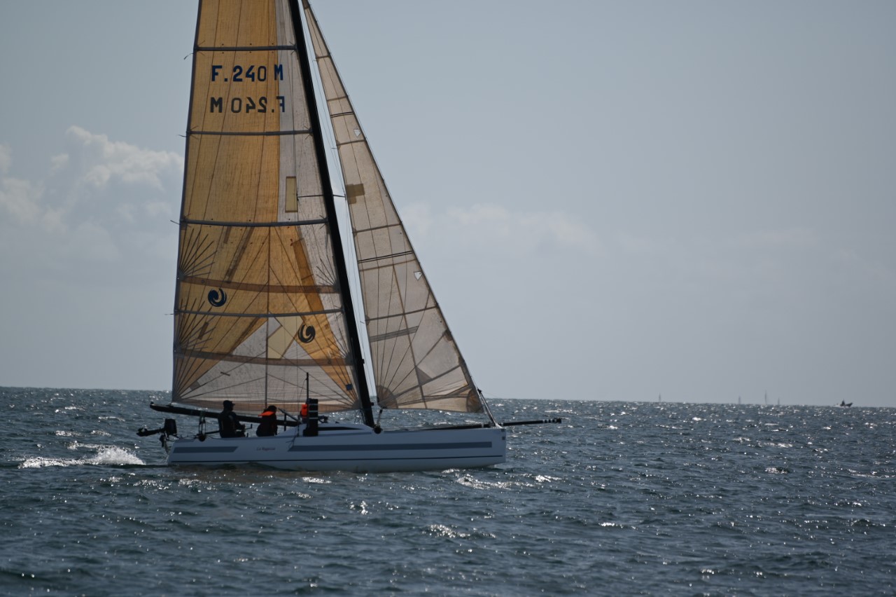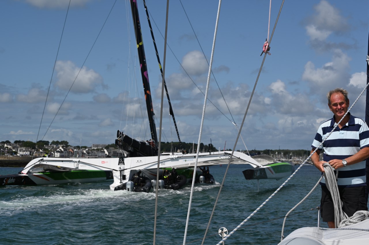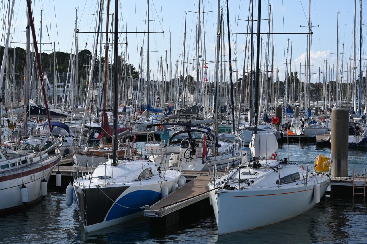 We hebben nu 3 extra crewleden, nou ja bijna. Dit betekent dat we voordat we vertrekken boodschappen moeten halen. Marianne blijft aan boord en wij met z’n vieren gingen naar de Intermarché. Op de havenboulevard was er ook nog een drukke Franse markt opgesteld, waar we ons met volle tassen doorheen geworsteld hebben. We zetten gelijk de zeilen, zodra we de havenmond uit zijn. Voor ons vaarde ook een Bavaria 37, die eerst iets uitliep op ons. Maar met wat trimmen van onze zeilen haalden we hem snel in. Wij verleggen daarna onze koers naar stuurboord en waren snel in het 2 mijl lange riviertje naar de haven. We hadden wat geklooi voor ons van een grote trimaran, die door 3 grote rubberboten geduwd werd naar de haven. Na het aanmeren zijn we gelijk het stadje gaan bekijken. Als eerste gingen we even langs de 3 grote trimarans, die de komende jaren solo rond de wereld gaan zeilen. Het stadje hadden we snel bekeken en aan boord hebben we lekker in het kuipje gezeten. Na ons Spaanse paella maaltje met fruit de mer zijn Mark en ik naar Carnac gefietst. Mark om foto’s te maken van die stenen en ik keek of er een paar verplaatst waren. Marianne en Marion hebben de route van morgen uitgezet en dat wordt vroeg vertrekken.