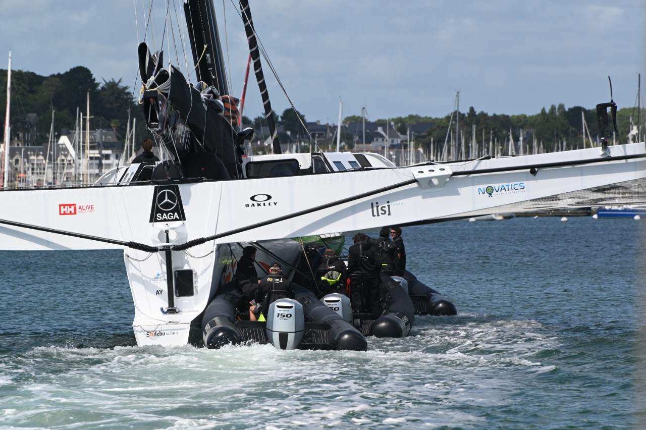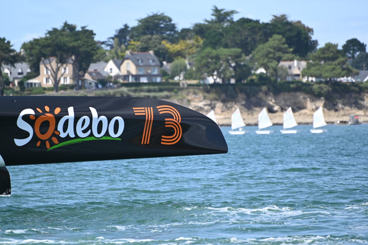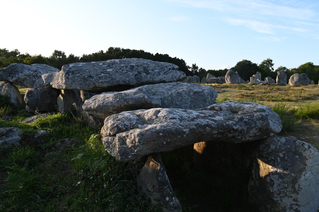 We hebben nu 3 extra crewleden, nou ja bijna. Dit betekent dat we voordat we vertrekken boodschappen moeten halen. Marianne blijft aan boord en wij met z’n vieren gingen naar de Intermarché. Op de havenboulevard was er ook nog een drukke Franse markt opgesteld, waar we ons met volle tassen doorheen geworsteld hebben. We zetten gelijk de zeilen, zodra we de havenmond uit zijn. Voor ons vaarde ook een Bavaria 37, die eerst iets uitliep op ons. Maar met wat trimmen van onze zeilen haalden we hem snel in. Wij verleggen daarna onze koers naar stuurboord en waren snel in het 2 mijl lange riviertje naar de haven. We hadden wat geklooi voor ons van een grote trimaran, die door 3 grote rubberboten geduwd werd naar de haven. Na het aanmeren zijn we gelijk het stadje gaan bekijken. Als eerste gingen we even langs de 3 grote trimarans, die de komende jaren solo rond de wereld gaan zeilen. Het stadje hadden we snel bekeken en aan boord hebben we lekker in het kuipje gezeten. Na ons Spaanse paella maaltje met fruit de mer zijn Mark en ik naar Carnac gefietst. Mark om foto’s te maken van die stenen en ik keek of er een paar verplaatst waren. Marianne en Marion hebben de route van morgen uitgezet en dat wordt vroeg vertrekken.