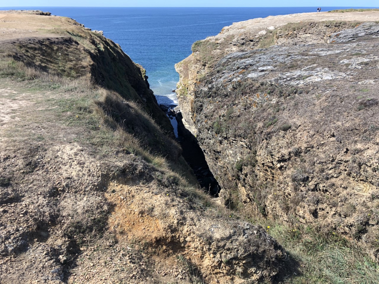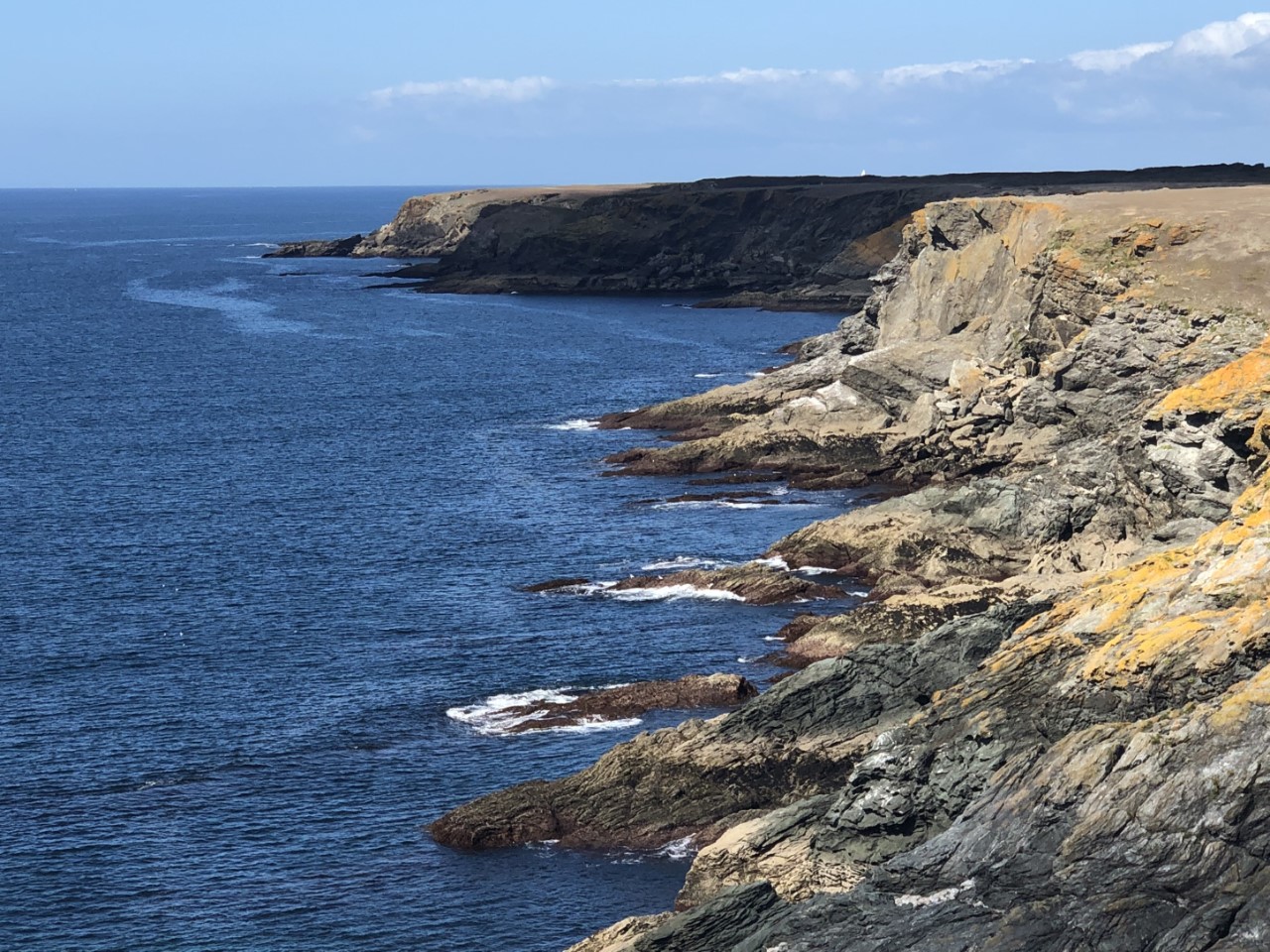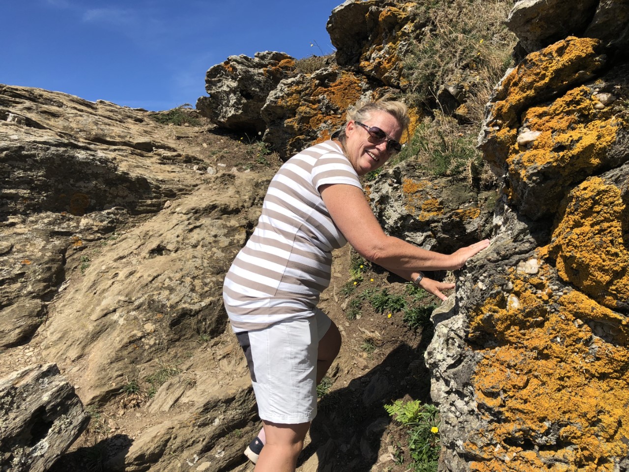 We kunnen toch nog geen afscheid nemen van de wateren bij Lorient/Ile De Groix. Dus tuffen we weer naar Ile De Groix toe. Het kwam ook een beetje door de weersvoorspellingen voor de komende week. Als het goed is vertrekken we morgen richting Baie De Quiberon. Wat het gaat worden is ook voor ons nog een vraagteken. We waren vroeg in Port Tudy en gingen gelijk naar het touristenburo voor een foldertje voor de bussen, want dat hadden we weggegooid. Maar gek genoeg, het buro is op maandag gesloten, onbegrijpelijk. Toen maar een fotootje gemaakt bij het busstation, want we hebben alleen het telefoonnummer nodig. De bussen rijden hier als er een veerboot aankomt en je moet bellen als je opgehaald wilt worden bij een halte ergens op het eiland. We hadden net een rugzakje ingepakt, toen we de scheepshoorn van de veerboot hoorden. Wij snel naar het busje. Er waren nog maar 4 plaatsen beschikbaar en de veerboot moest nog afmeren. De laatste 2 plaatsen waren ook snel gevuld en we waren op weg naar Quéhello. Vanaf daar namen we de Sentiers Côtiers, het pad langs de kust, beginnend bij Port Saint Nicolas. Maar eerst moesten we langs heel veel bramenstruiken vol met mooie paarse exemplaren, Marianne nam een vroege lunch en het vrijgekomen plasticzakje werd gevuld met bramen. We hadden even gekeken vanmorgen toen we naar Ile De Groix vaarden of we een mooi ankerplekje zouden nemen voor de nacht, maar de windrichting stond verkeerd en de haven was aantrekkelijker. Maar nu stonden we vlakbij een ankerplekje met laagwater en zagen toch veel gemene rotspuntjes. We liepen weer verder met af en toe een flinke klim en daalpartijen, dat alles met een mooi uitzicht. Op de terugweg hebben we het eiland doorkruist met als doel een paar boodschappen halen bij de Intermarché. Echter bij het invoeren van de route in Google Maps kregen we de melding “als u aankomt is de supermarkt gesloten”. Hebben ze daar ook al siesta? Ja dus, tussen 12:30-15:00 uur gooien ze de tent dicht. Raar volk, die Fransen. Het was nog maar een klein stukje naar de Just. We hebben met een drankje toen ook maar een siësta gehouden en zitten bijkomen van de wandeling. Morgen gaan we verder naar het zuiden.