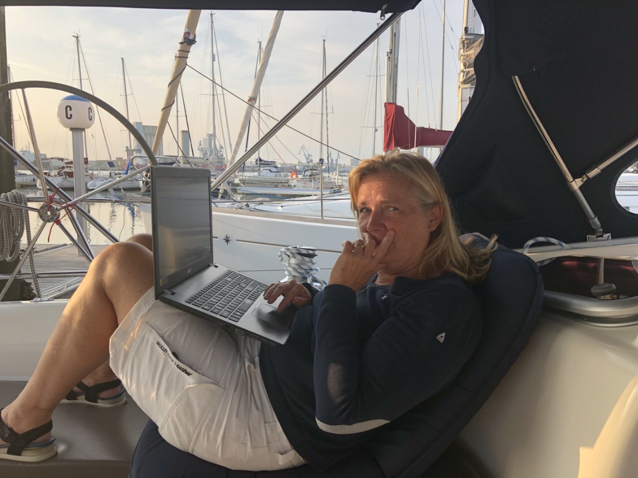 Vanmorgen kwam ik voor onze stokbroodjes in Port Louis bij een meesterbakker terecht. De pain chocolat zag er bijzonder goed uit en smaakte inderdaad zoals je van de maître mag verwachten. We zijn vervolgens een haventje opgeschoven. Een hele tocht van 1,1 mijl, maar we hebben een omweg genomen door eerst even diesel te tanken in Port Kernével. Dus de totale reis was 2,2 mijl en dat in 1 uurtje. Na aankomst zijn we bij het havenkantoor langs geweest. De havenmeester sprak goed Engels. Aan hem hebben we de vragen gesteld, die voor ons nog onduidelijk zijn over sommige havens, die aangesloten zijn bij Passeport Escales en met name hier in Morbihan. Het blijkt dat we in Morbihan onbeperkt voor 2 dagen een ligplaats hebben en dan niet met een beperking van 5 nachten per jaar. Wat een luxe, we kunnen de komende 7 weken bij alle leuke havens langs. Ik ging daarna door naar de Lidl voor wat proviand en Marianne ging alvast de boot deels schoonmaken. Toen ik terug kwam ging ik even snel met de stofzuiger aan de gang. En het laatste klusje is het dek afspoelen. Voor de rest hebben we geen ene klap meer gedaan, behalve een lekkere pasta met champignons gemaakt. Morgen gaan we kijken wat er hier te doen is.