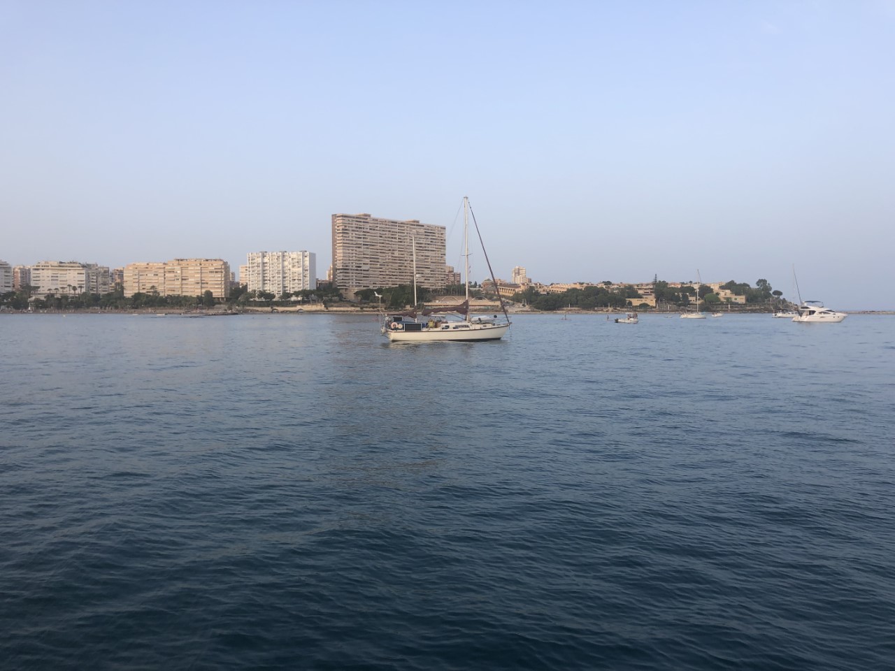 Dat is even wennen na 3 nachten in een haven en geen planning. Vanmorgen als eerst maar eens naar de weersberichten kijken, hoe staat de wind en hoeveel. Marianne geeft groen licht, dus de trossen kunnen om half acht los. We gingen als eerste de brug onderdoor en zetten koest richting Alicante. Zoals gebruikelijk hebben we weer eens wind tegen. Maar bij het eilandje Isla de Tabarca kan het grootzeil bij en dat scheelt toch weer een knoopje extra snelheid.