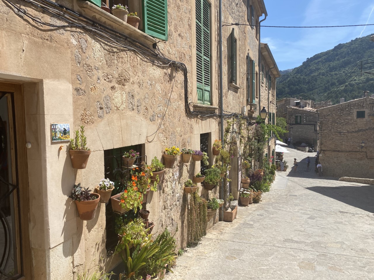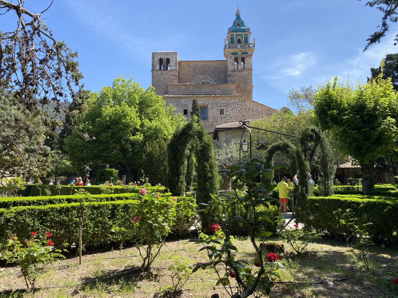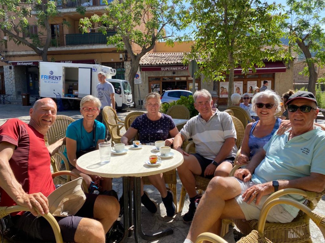 De rit naar Valldemossa is een spektakel, smalle wegen, haarspeldbochten en diepe dalen, waar de chauffeur als een coureur doorheen scheurt, zonder acht te slaan op tegenliggers, scooters en wielrenners. In Valldemossa worden we getrakteerd door de jarige Arno met een bakkie koffie.