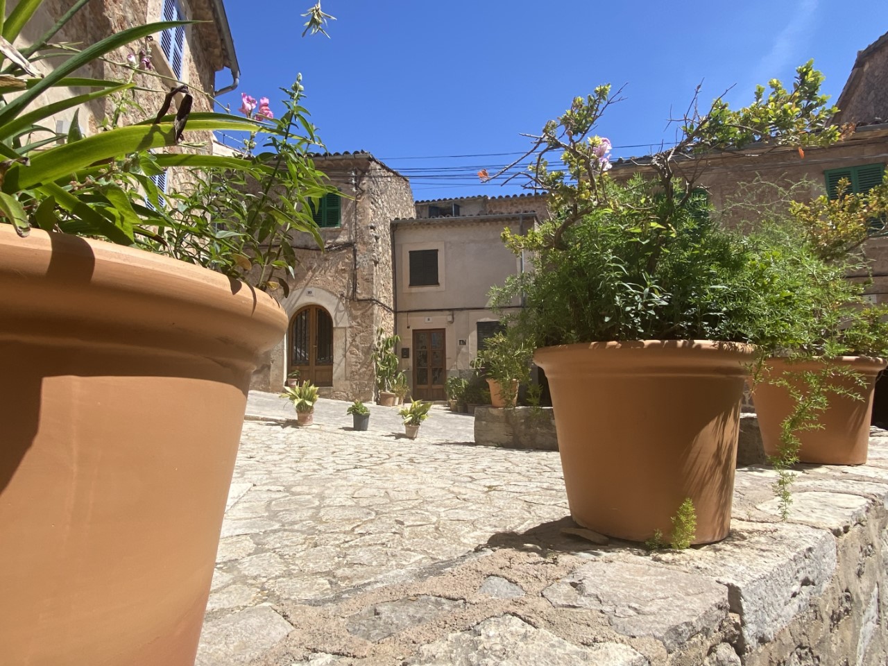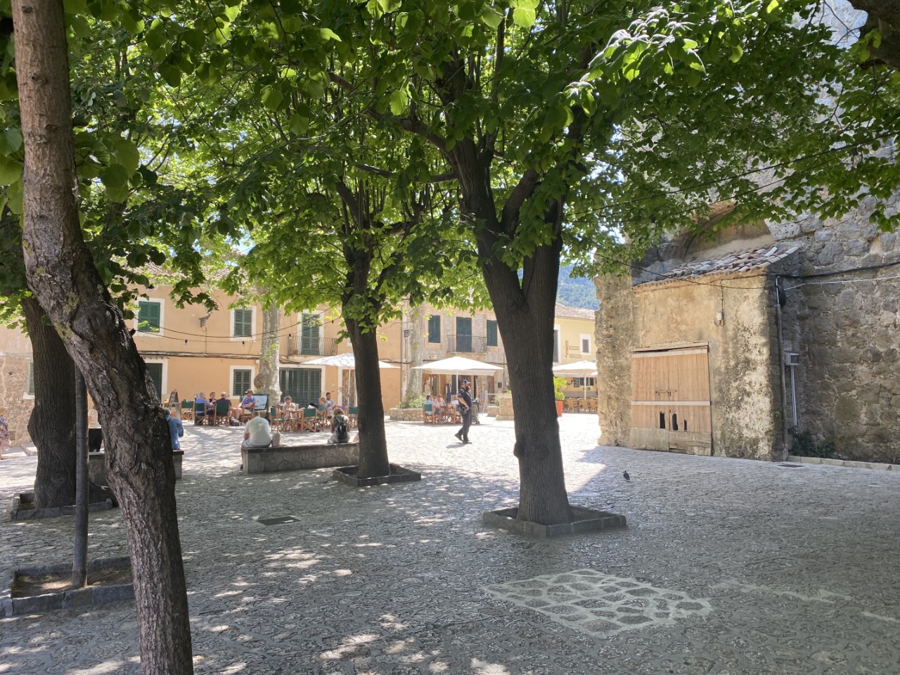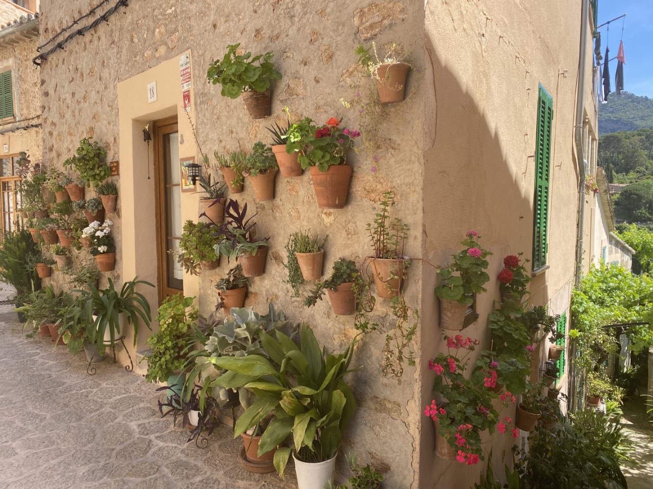 De rit naar Valldemossa is een spektakel, smalle wegen, haarspeldbochten en diepe dalen, waar de chauffeur als een coureur doorheen scheurt, zonder acht te slaan op tegenliggers, scooters en wielrenners. In Valldemossa worden we getrakteerd door de jarige Arno met een bakkie koffie.
