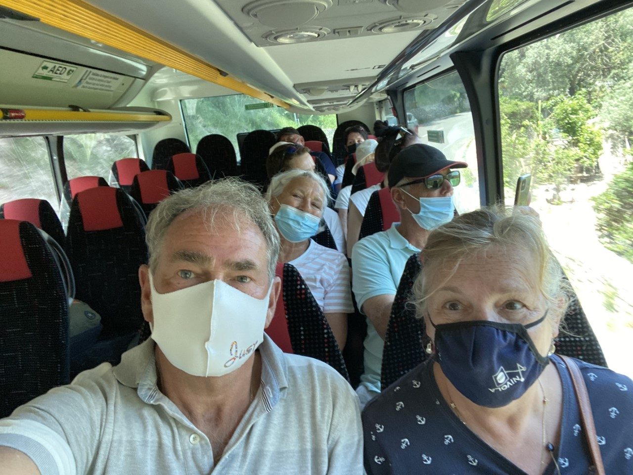 Even na 9:00 uur staan we al bij de drukke halte van bus 203. We zijn samen met Wim, Ria, Arno en Trudy. Het is zo druk, dat gelukkig Arno en Trudy nog net mee mogen met de bus en een heleboel anderen teleurgesteld worden en een uurtje moeten wachten op de volgende bus.