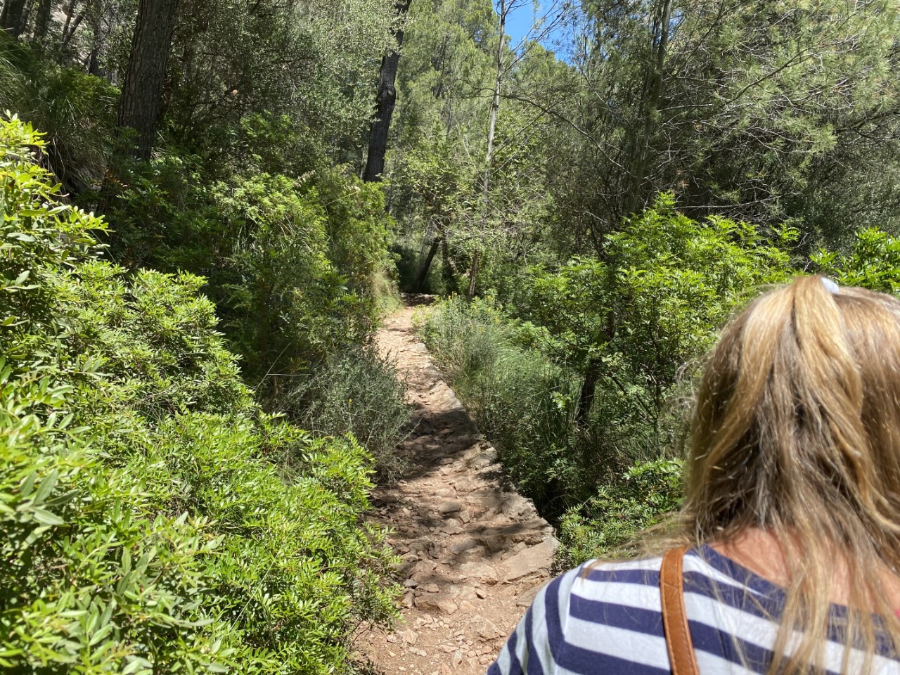 We denken in het begin, dat we voor de terugweg alles langs een semi-snelweg moeten wandelen, maar al snel komt er een y-splitsing en lopen we op een mooi wandelpad, dat iets stijl omhoog loopt. Links en rechts van ons staan mooie, landelijke huizen met allemaal hun eigen citroenboomgaard. De weg gaat wat later over in een smal, rotsig bergpad, met een flinke helling. Al snel hebben we een weids uitzicht op een diep dal waar Soller in ligt. Wij klimmen nog iets hoger. Het pad werd nog iets smaller en we zetten de daling in. Uiteindelijk bereiken we de bewoonde wereld en iets later staan we op de boulevard. Bij elkaar iets meer dan een uurtje. We vonden het een prachtige wandeling.