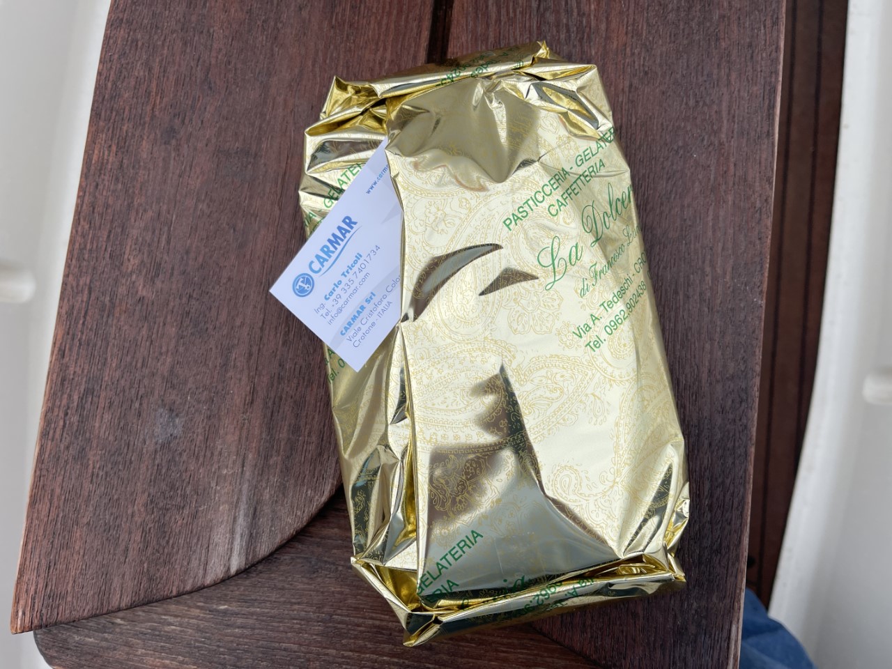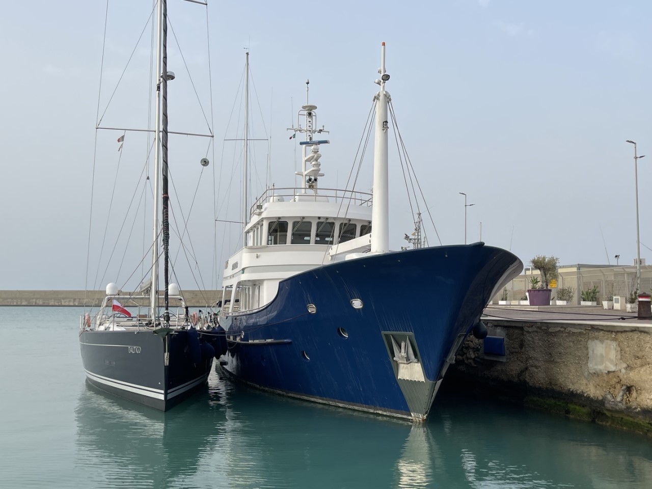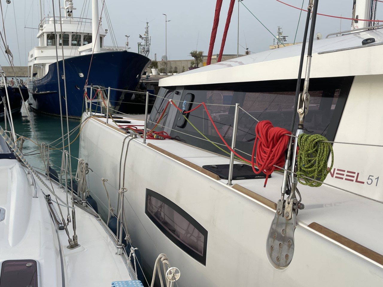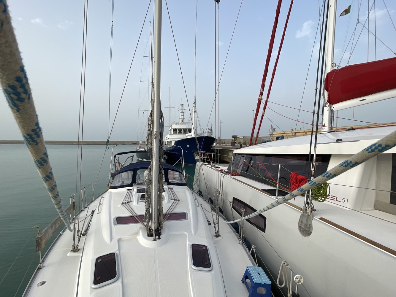Rond 08:00 uur liggen we langs de kade. Niet veel later krijgen we een goudkleurig pakketje met twee pistache-croissants voor ons ontbijt, wat een service! We liggen wel tussen de grote schepen met ons zeilbootje. Niet veel later krijgen we het verzoek om langszij af te meren bij een Neel 51 catamaran, omdat er laat in de middag nog een 26 meter jacht aankomt. Na de verplaatsing hebben we nog wat boodschappen gehaald. We twijfelen om Sushi te gaan eten, maar we denken niet dat Mi Sushi, Gohan in Ragusa kan overtreffen. We kiezen voor de veilige optie om aan boord te koken, wat altijd lekker is.