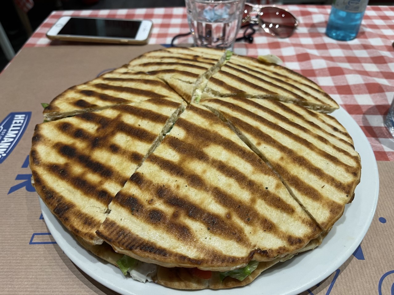 Tijdens het afrekenen van de vier bakkies koffie schrikken we van de absurde prijs van € 24,00 voor ons, nog niet eens lekkere, bakkie koffie. We voelen ons knap opgelicht. We wandelen nog even door en na een laatste foto gaan Bettina en Fred weer richting de terminal om op tijd te zijn voor hun vertrek.