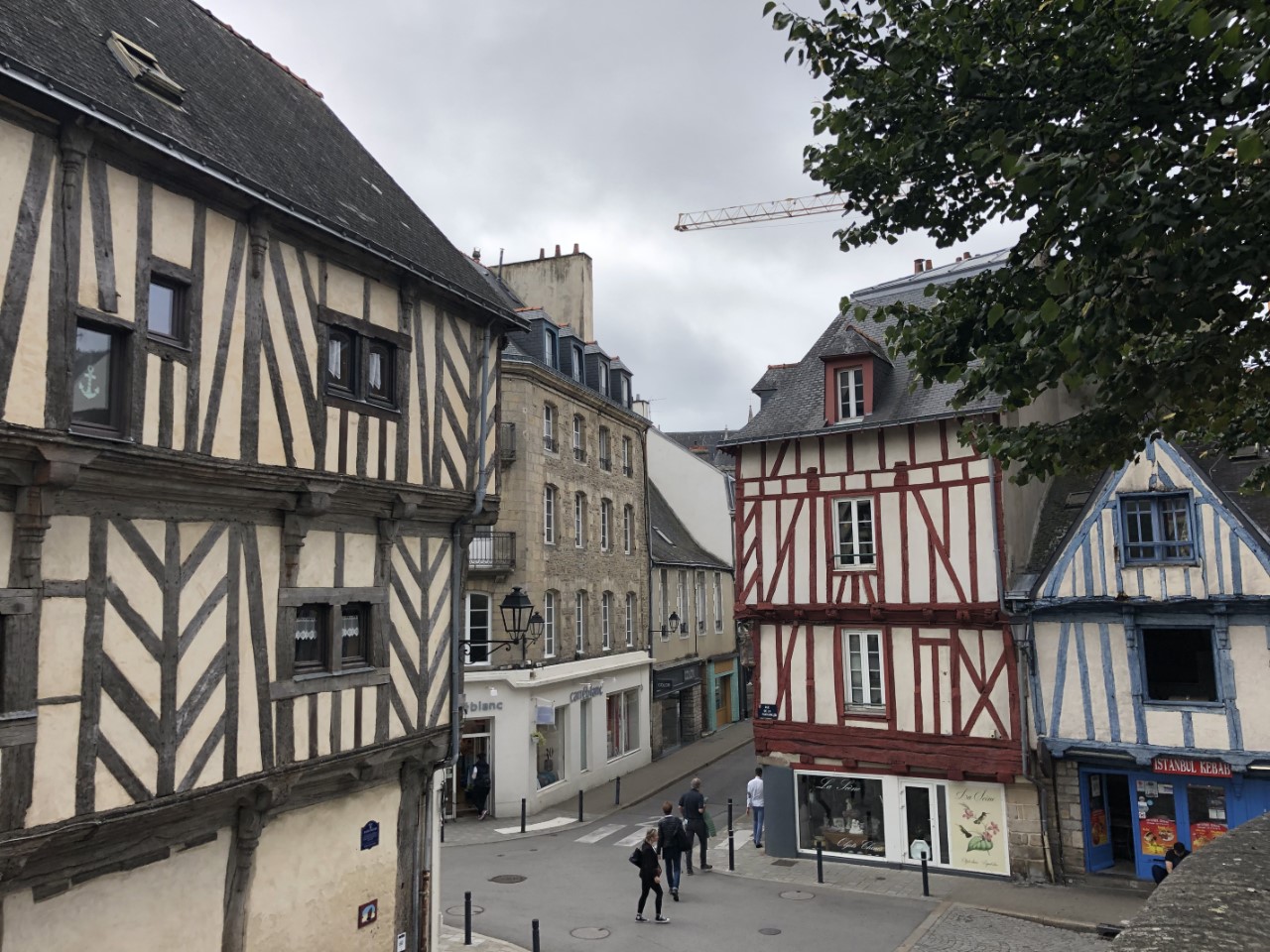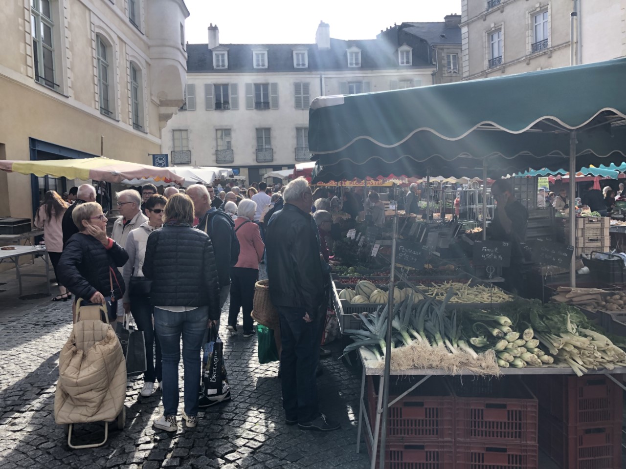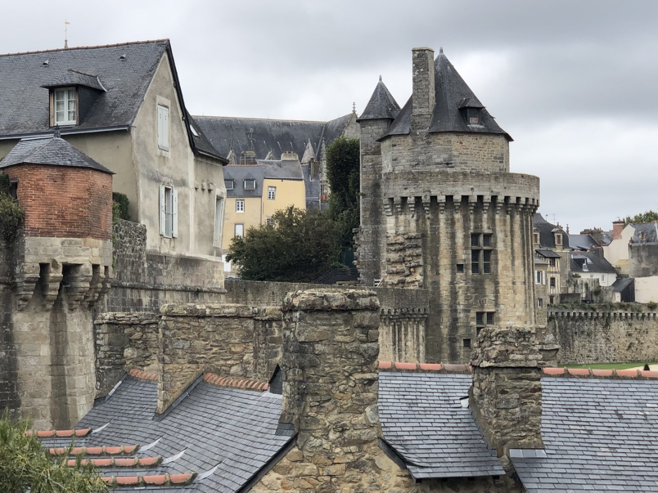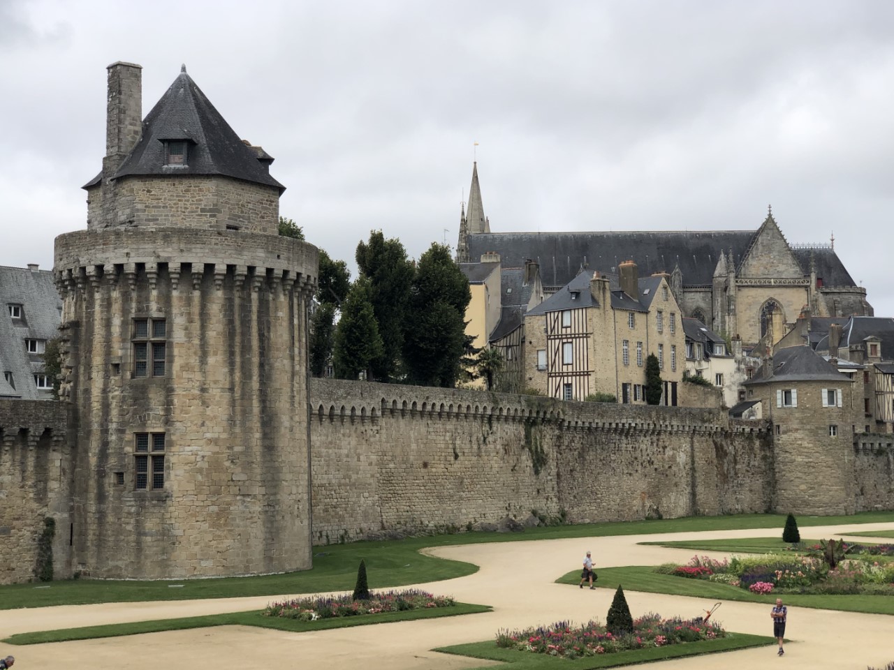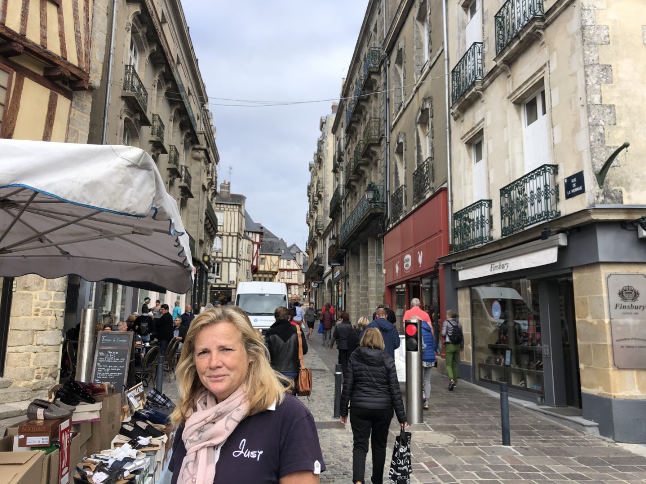 Het is marktdag in het oude centrum van Vannes. We hebben alle kramen langs gelopen en verbazen ons nog steeds om de hoge prijzen voor alles, vis, vlees, groente en fruit. Maar we kwamen wel terug op de Just met 4 meloenen, die waren bij één kraam in de aanbieding en waren 4 voor 5 euro. Mijn lunch voor vandaag bestond grotendeels uit meloen. Na een korte siësta zijn we met een combinatie van 3 stadsroutes Vannes gaan ontdekken en hebben alle hoogtepunten bekeken. Na ruim 2 uur en een hoop historie wijzer over de stadspoorten, de verschillende torens, de stadsmuur met een deel uit de derde eeuw gingen we terug aan boord. Op de Just hebben maar weer eens naar de planning en weersberichten gekeken, een terugkerend onderdeel van de reis. De bedoeling is/was om morgenochtend om 8:00 uur te vertrekken, maar er is tot 11:00 uur regen voorspeld. Pas daarna breekt het zonnetje door. We zijn morgen 36 jaar getrouwd en willen toch een klein feestje vieren in een goed restaurantje. We zijn er al snel uit, we gaan morgen lunchen in de nummer 2 volgens Tripadvisor in Vannes. Dan vertrekken we morgen na 17:00 uit Vannes. Maar voor vanavond wordt het iets uit de voorraadbank wat op moet. Een blik Babi Pangang met rijst en verse Thaise groenten.