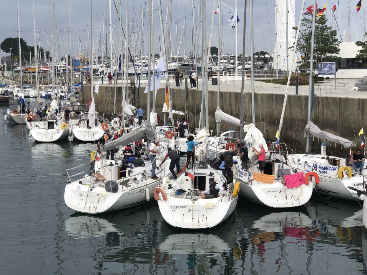 Weer veel wind, maar al de zeilboten, die hier liggen voor de wedstrijd, varen gewoon uit. Als deze wind tijdens de Grevelingen Cup voorspeld is, dan wordt de wedstrijd afgelast of misschien heeft het dan te maken dat het ook winter is en er een snerpende vrieswind bij komt kijken. Want hier is het weer een strak blauwe lucht en een zonnetje. Of dat heel de dag zo blijft? Wij gaan maar even boodschappen halen voordat de Intermarché weer in middagslaap gaat. We kwamen de Belgische buren tegen en hebben ze uitgenodigd om vanmiddag wat te drinken bij ons. Zo de boodschappen zijn binnen en verder zijn we lekker lui vandaag. Lekker in het kuipje naar alle bootjes kijken en een boekje lezen. Tegen 17:00 uur kwamen de buren voor een bakje thee en de door hun mee gebrachte Bretonse appelkoek. We hebben aandachtig geluisterd naar hun verhalen en de havens die wij nog moeten bezoeken. Zij zijn begin juni vertrokken en hebben alleen de Franse kust gedaan en zijn al een stuk zuidelijker geweest dan wij. Dat staat bij ons volgend jaar op de planning. Net als wij gaan zij ook de Vilaine rivier op om daar te overwinteren en volgend jaar richting Spanje. We blijven in ieder geval tot maandag, want ook morgen blijft die wind om ons heen cirkelen.