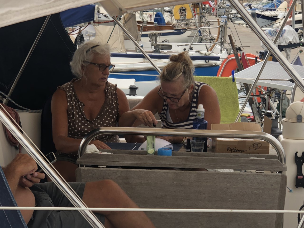 De middag was ik Spaans lui en Marianne had op de Primevere een nagelstudio geopend om de nagels van Ria ‘professioneel’ van een kleurtje te voorzien. Zo heb je nog plezier van de UV-lamp en alle toebehoren, die we in al die kastjes hebben gestouwd. We hebben veel overleg gehad met Ria en Wim over de komende dagen. Op Navily kwam er een reclame voorbij van Botafoc. Dit is een haven bij Ibiza-stad en er wordt geadverteerd met een meer dan redelijke prijs van € 26,00. Dat vinden we een leuke manier om nog een keer Ibiza-stad te bezoeken. Er is alleen één maar, we kunnen de haven niet reserveren met Navily. Dan maar bellen. De haven blijkt volgeboekt, maar we kunnen wel op een wachtlijst voor de vrijdag en zaterdag. We varen morgen in ieder geval weg om een Cala in te duiken en dan wachten we af of we bellen nog een keer of ze inmiddels een ligplaats hebben. En anders bezoeken we nog een paar Cala’s voor we richting Denia aan het vasteland van Spanje gaan.