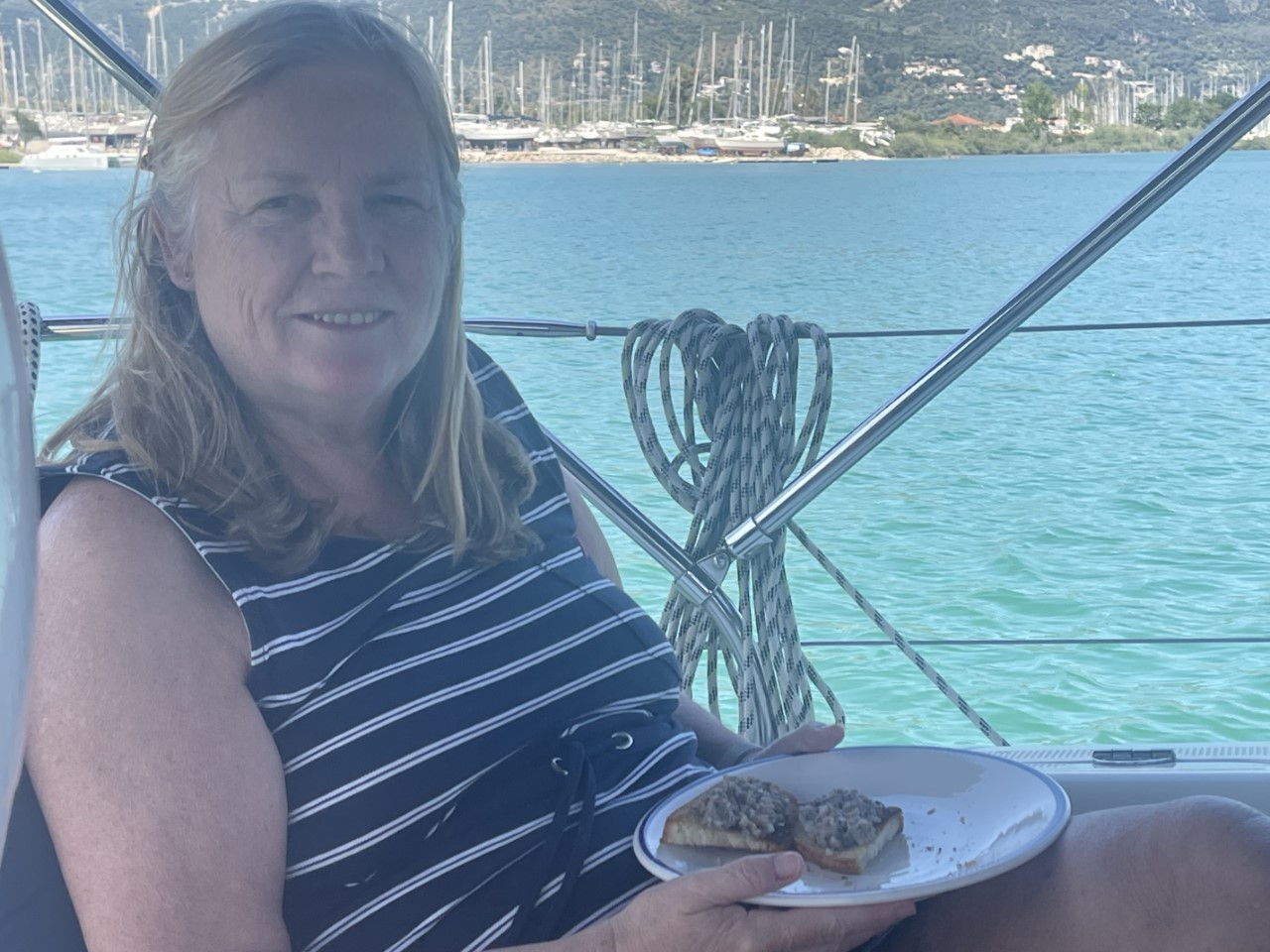 Na het paasontbijt ga ik aan de gang met de motor. Ik moet nog olie verversen en het oliefilter vervangen. De klusjes zijn dan gedaan en het genieten van het prachtige weer kan beginnen. Heel de dag horen we op de wal Grieks gezang. Gezellig op de achtergrond en veel beter dan discogedreun. Marianne zorgt voor een drankje en een lekkere sardienenbruschetta. Met de paasaanbieding van Cosmote kunnen we 7 dagen onbeperkt internetten, dus we zijn heel de middag zoet.