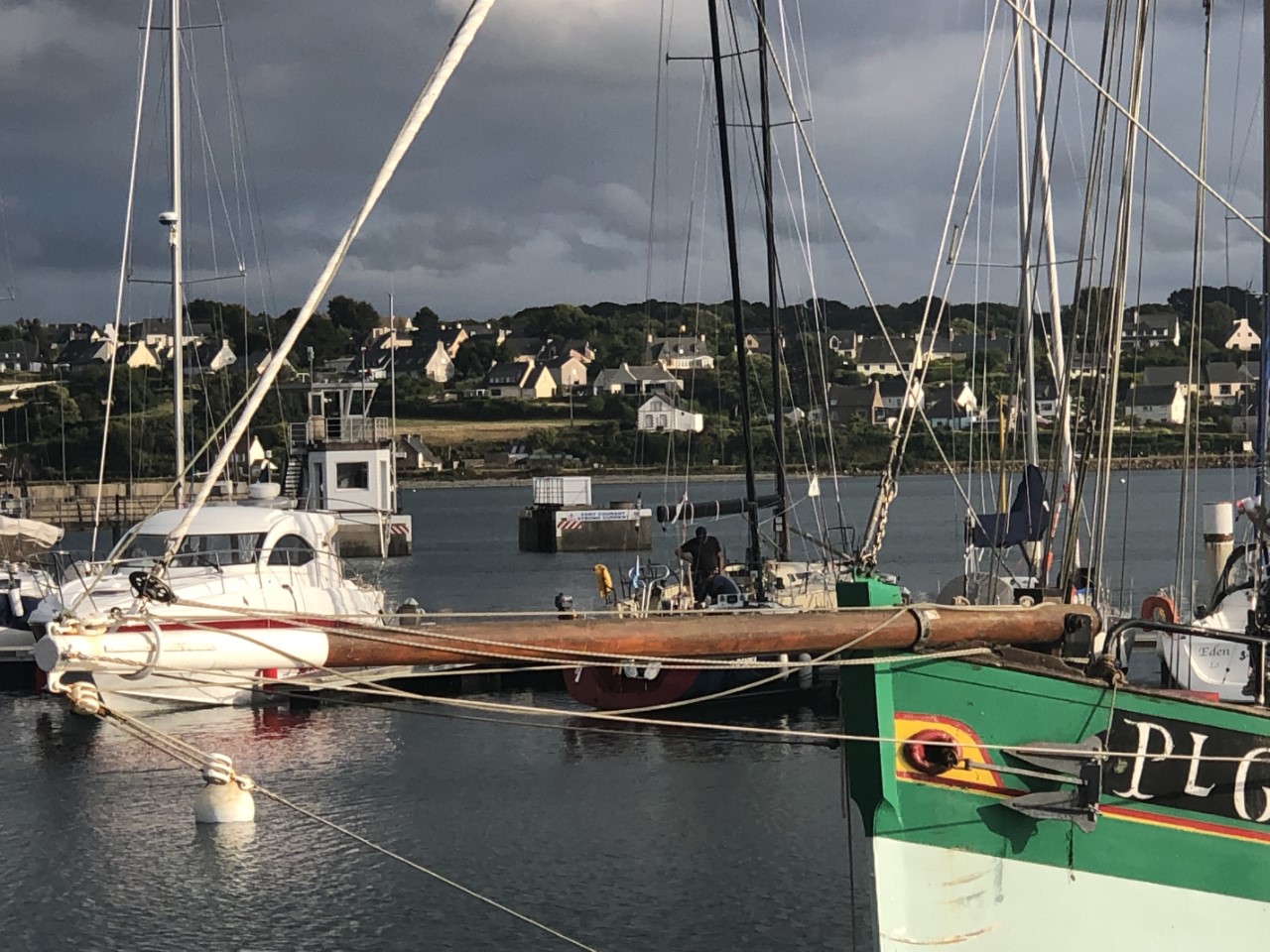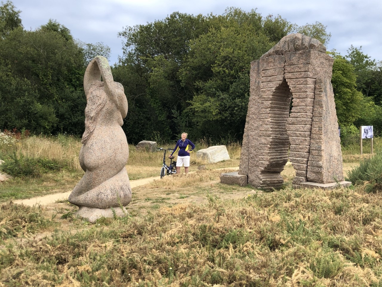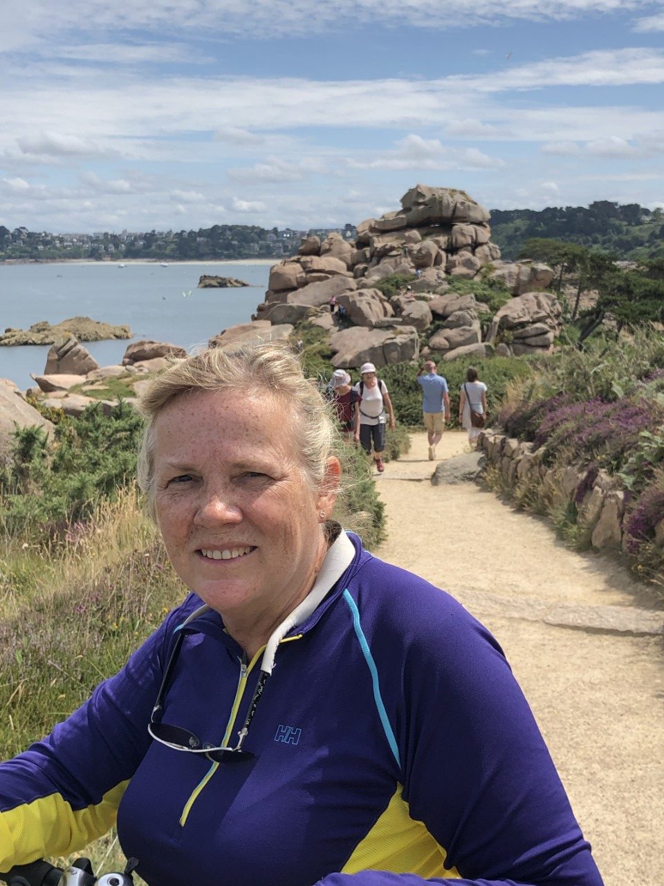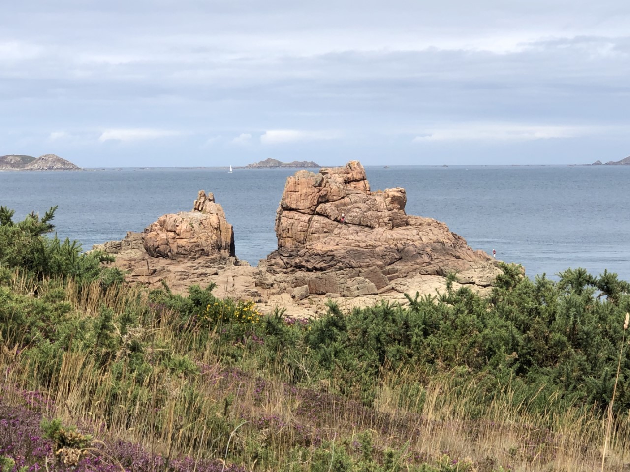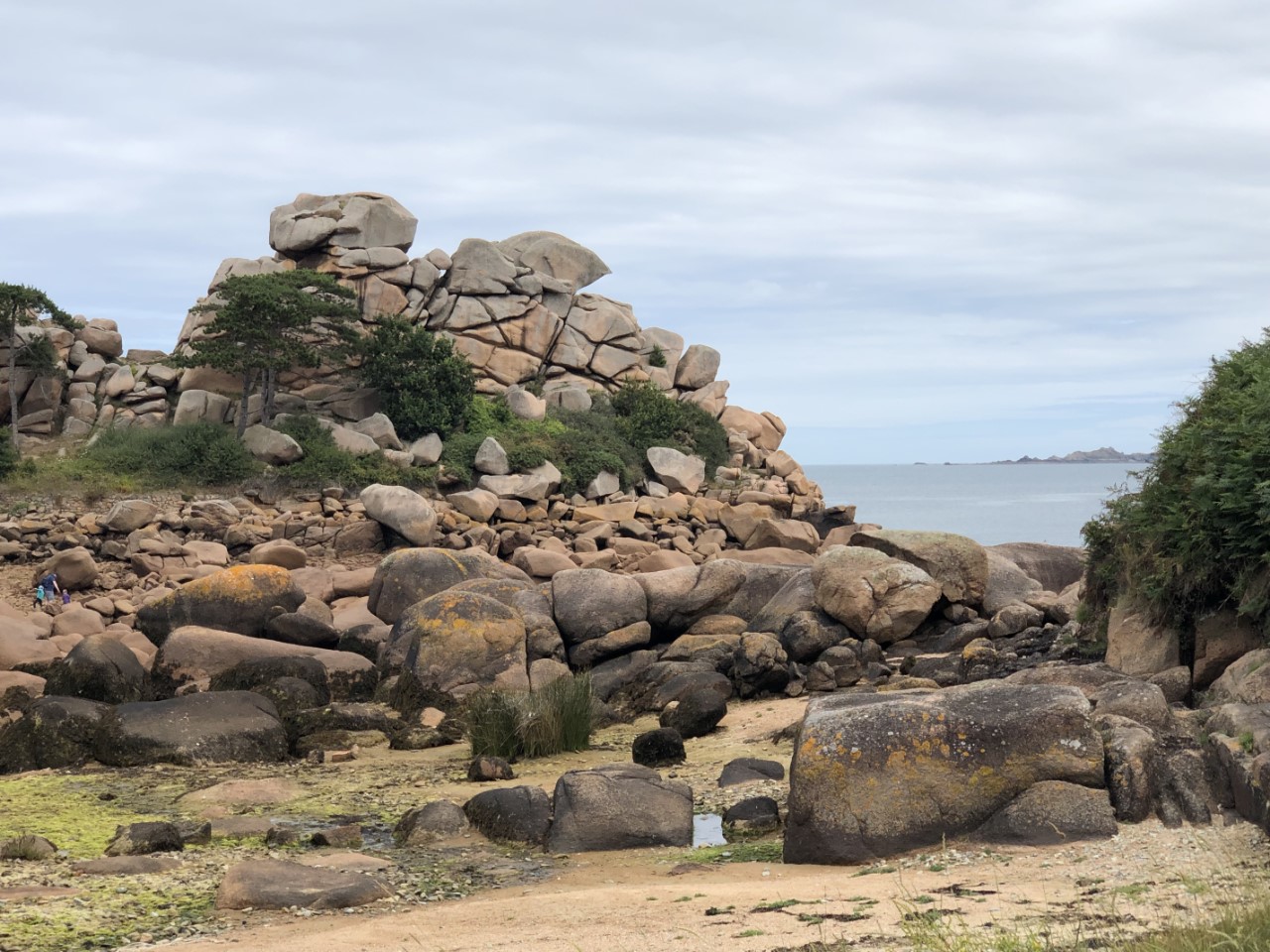 We hebben er een luie ochtend van gemaakt, alleen een pastasalade gemaakt voor vanavond. En een beetje kijken waar we vandaag heen gaan fietsen. We zijn er uit, die steen van Obelix komt nog wel. We gaan naar de indrukwekkende rotspartijen: Rochers de Ploumanac’h. We hadden een fietsroute van het toeristenbureau, alleen de schaal was niet op straatniveau. Google Maps stuurde ons over snelwegen en de bordjes, die een route moesten aangeven stonden overal en nergens. Maar na wat zoeken en puzzelen kwamen we bij een hele mooi baai en strandje met er om heen luxe huizen. Wij de fietsroute bordjes weer volgen en even later waren we weer vlak bij ons startpunt: de haven. Wij weer geprobeerd de fietsroute bordjes op te pakken en met behulp van de kaart en Google Maps kwamen in Ploumanac’h, waar we via een zooi gesteenhouwde beelden per toeval op het douanepad kwamen wat we zochten. Via het pad kwamen we langs de een na de andere kunstzinnig opgestapelde roze rotsen. Wij vroegen ons af met wat voor natuurgeweld zo iets moois heeft kunnen ontstaan. De rotspartijen in Dartmoor waren heel mooi, maar hier hebben we geen woorden voor. Op de terug weg hebben we even Ploumanac’h bezocht, waar ook een mooi strandje was. Na een ijsje hebben we bijna de zelfde weg terug genomen naar de haven. In de avond hebben we nog een wandelingetje gemaakt bergop naar een kerkje, waar allemaal wandtekening zouden staan van King Arthur, maar helaas we waren een uurtje te laat. Dan maar terug naar de Just en de route voor morgen in de plotter zetten. Het wekkertje gaat om 6:00 uur.
